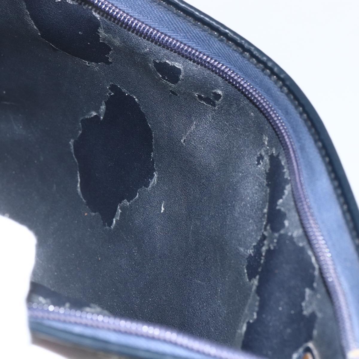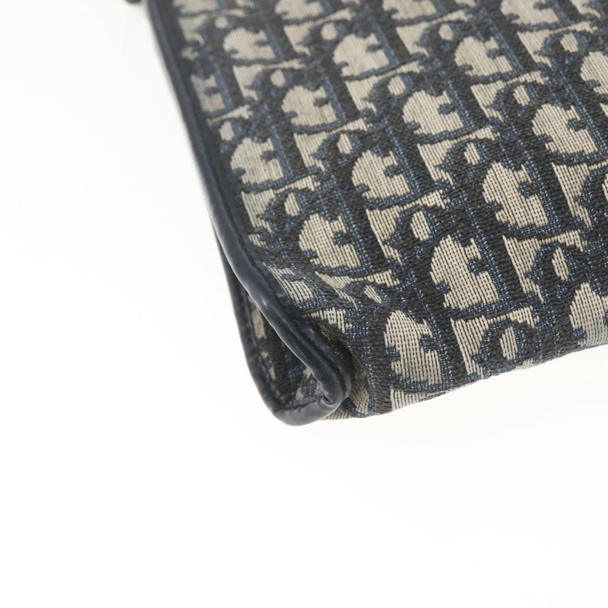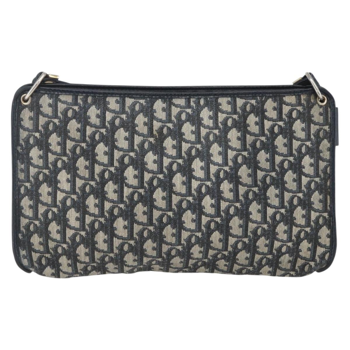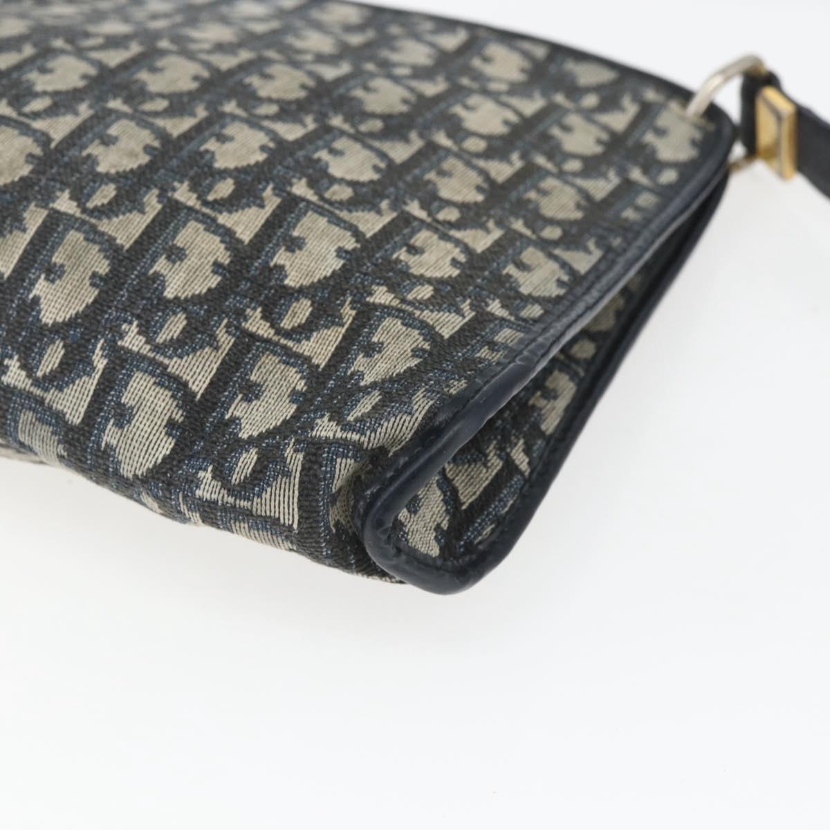 Christian Dior Trotter Canvas Shoulder Bag Beige Navy gold Auth 100669