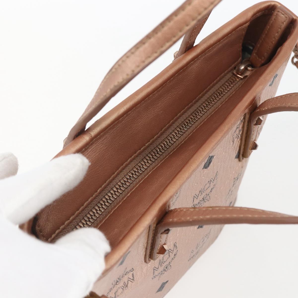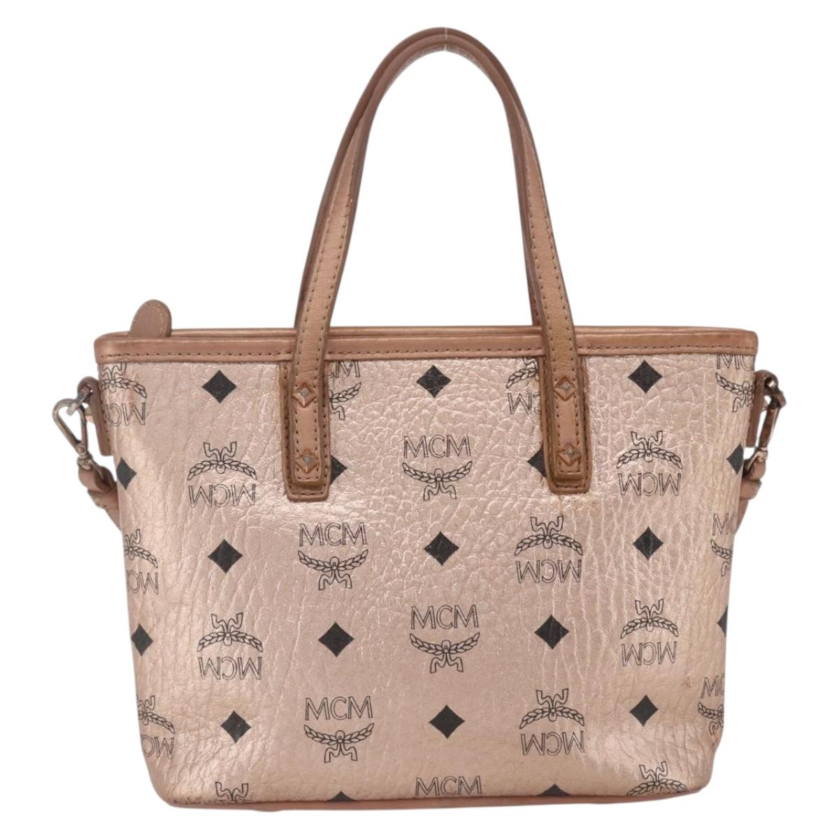 MCM Vicetos Logogram Anya Hand Bag PVC Leather 2way Pink Gold Auth mr1867