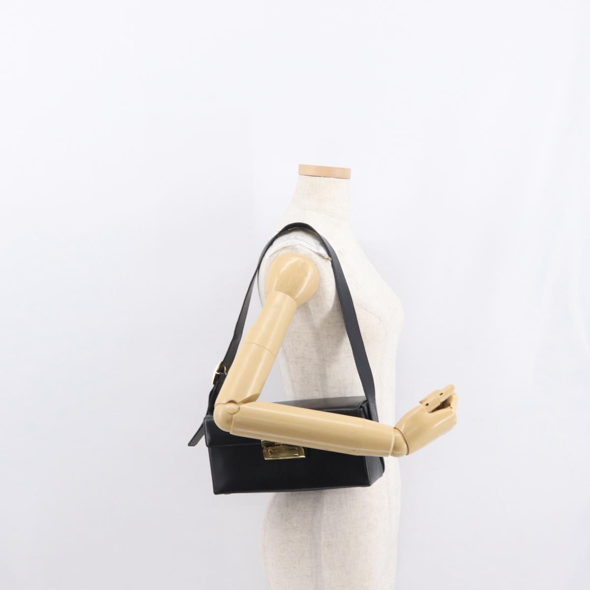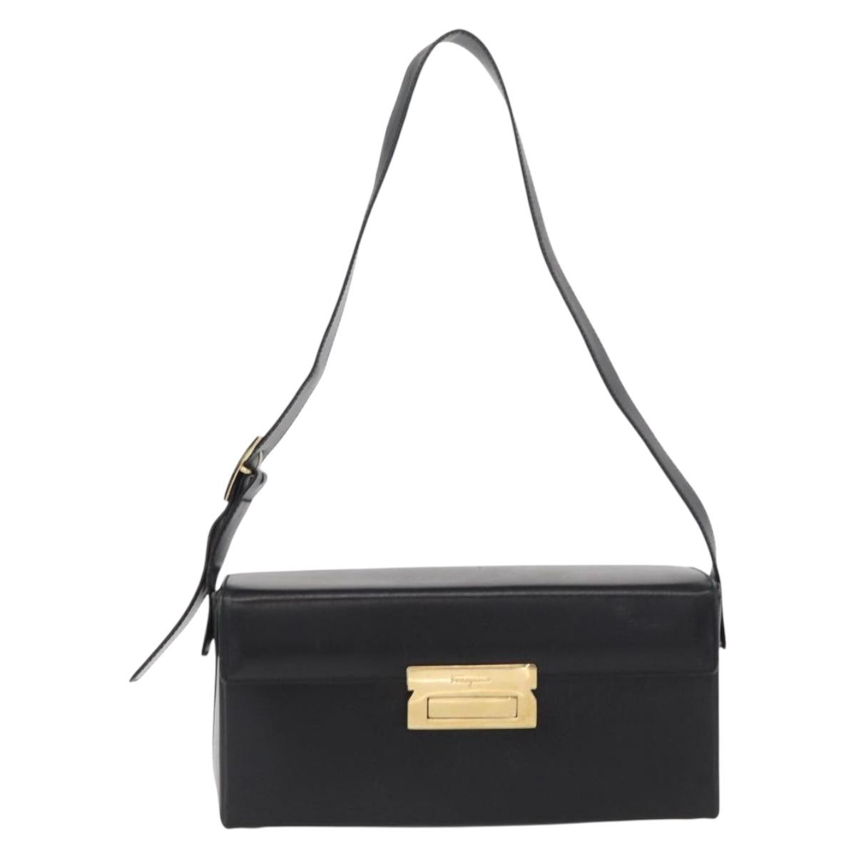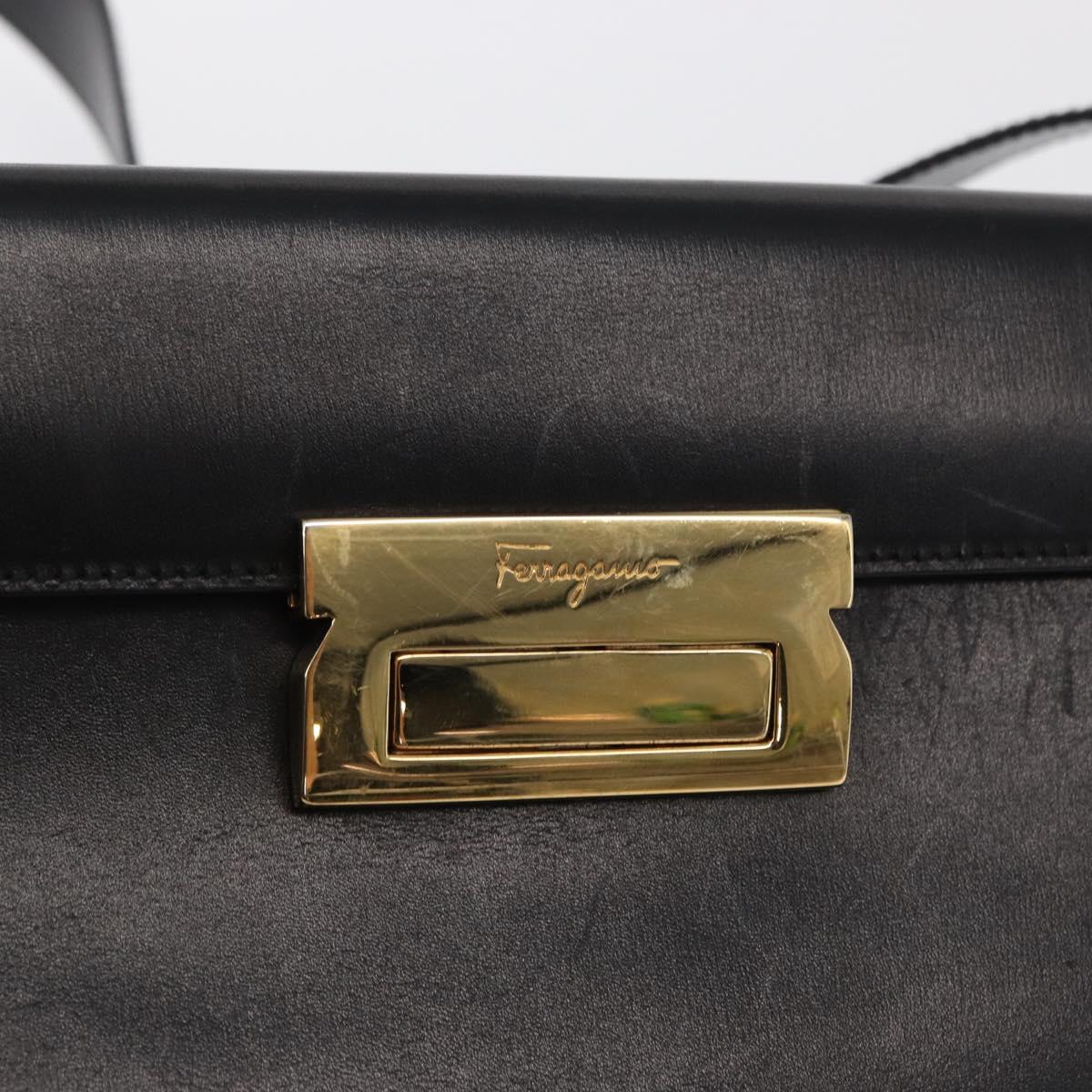 Salvatore Ferragamo Shoulder Bag Leather Black Gold Auth BA9836