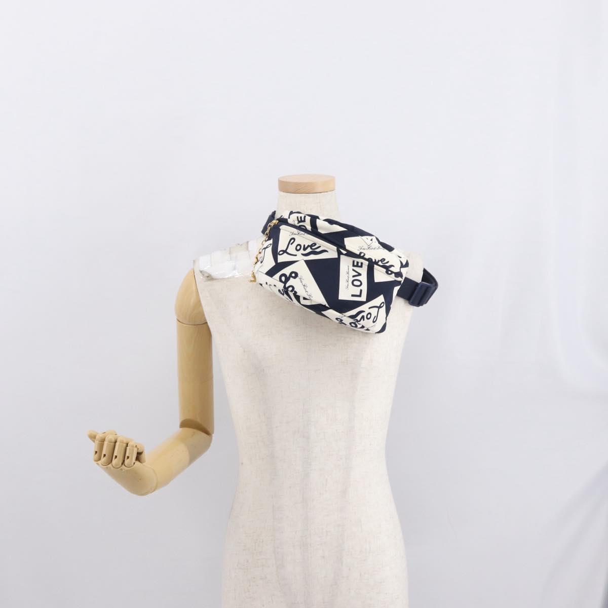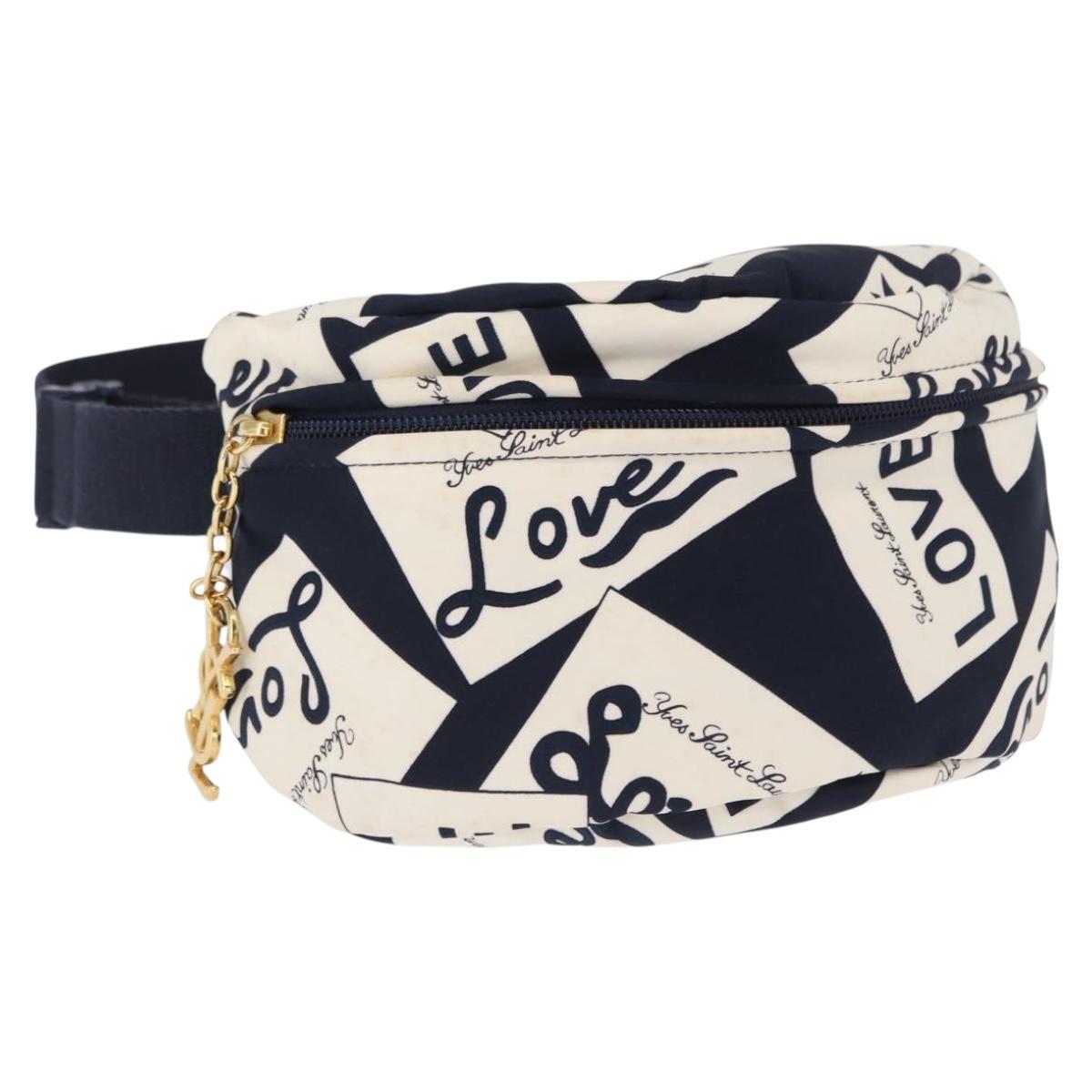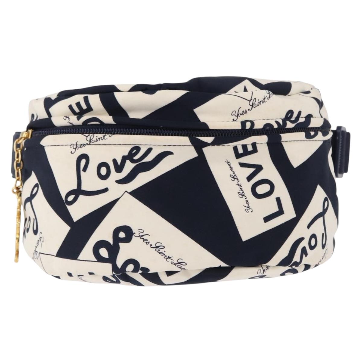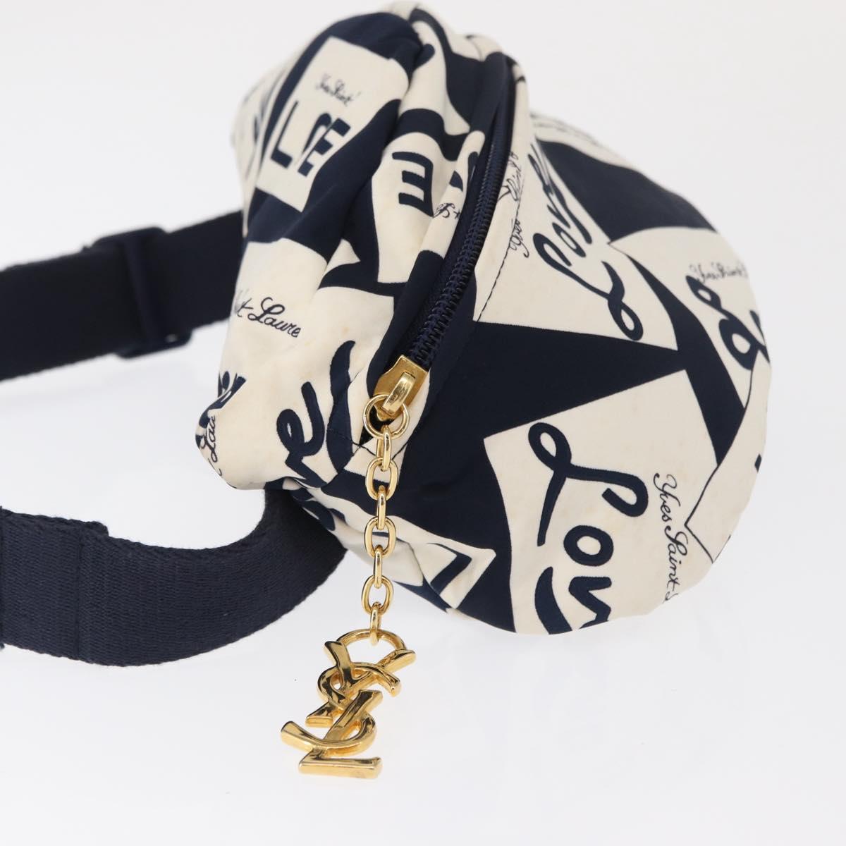 SAINT LAURENT Waist Bag Nylon Navy White gold Auth BA9870