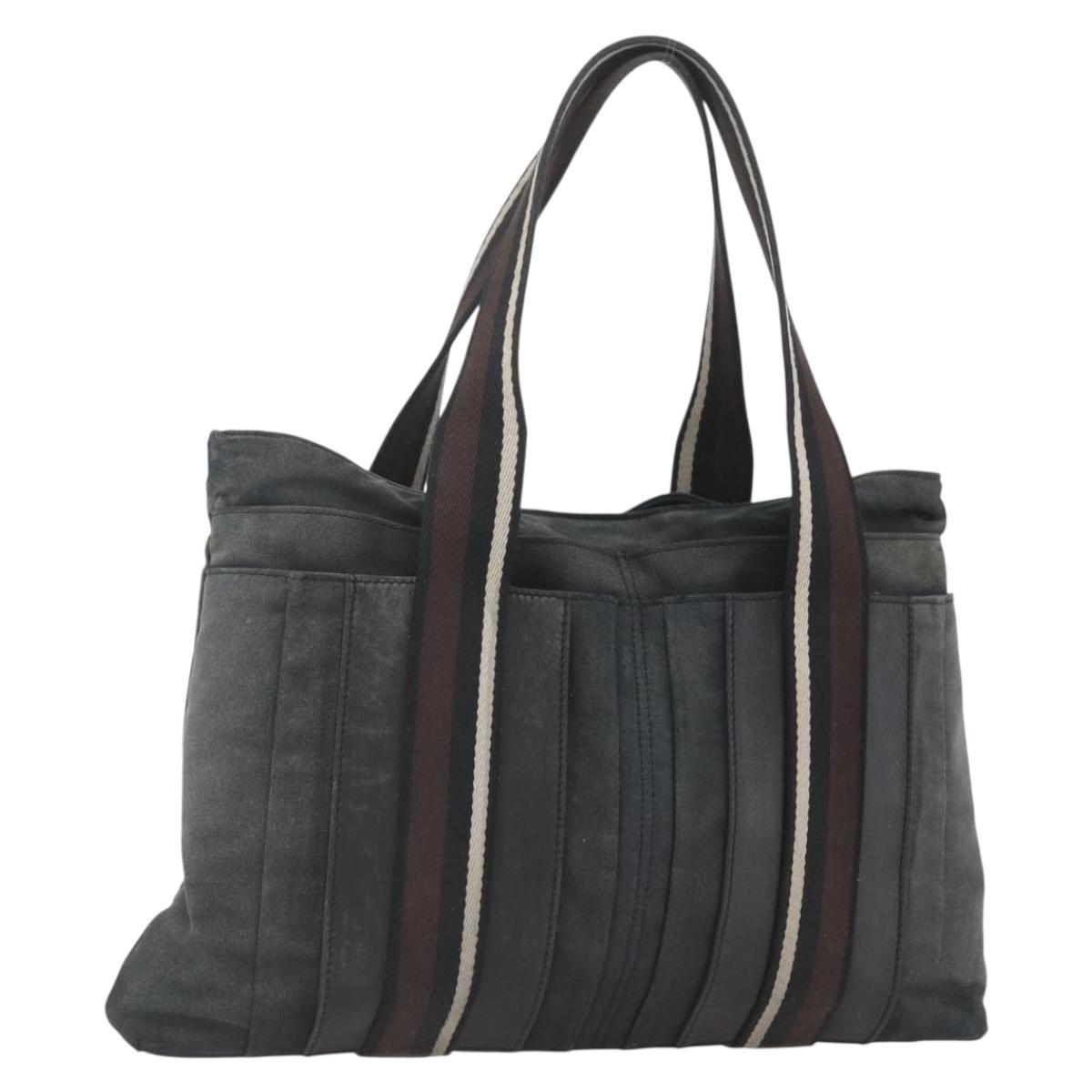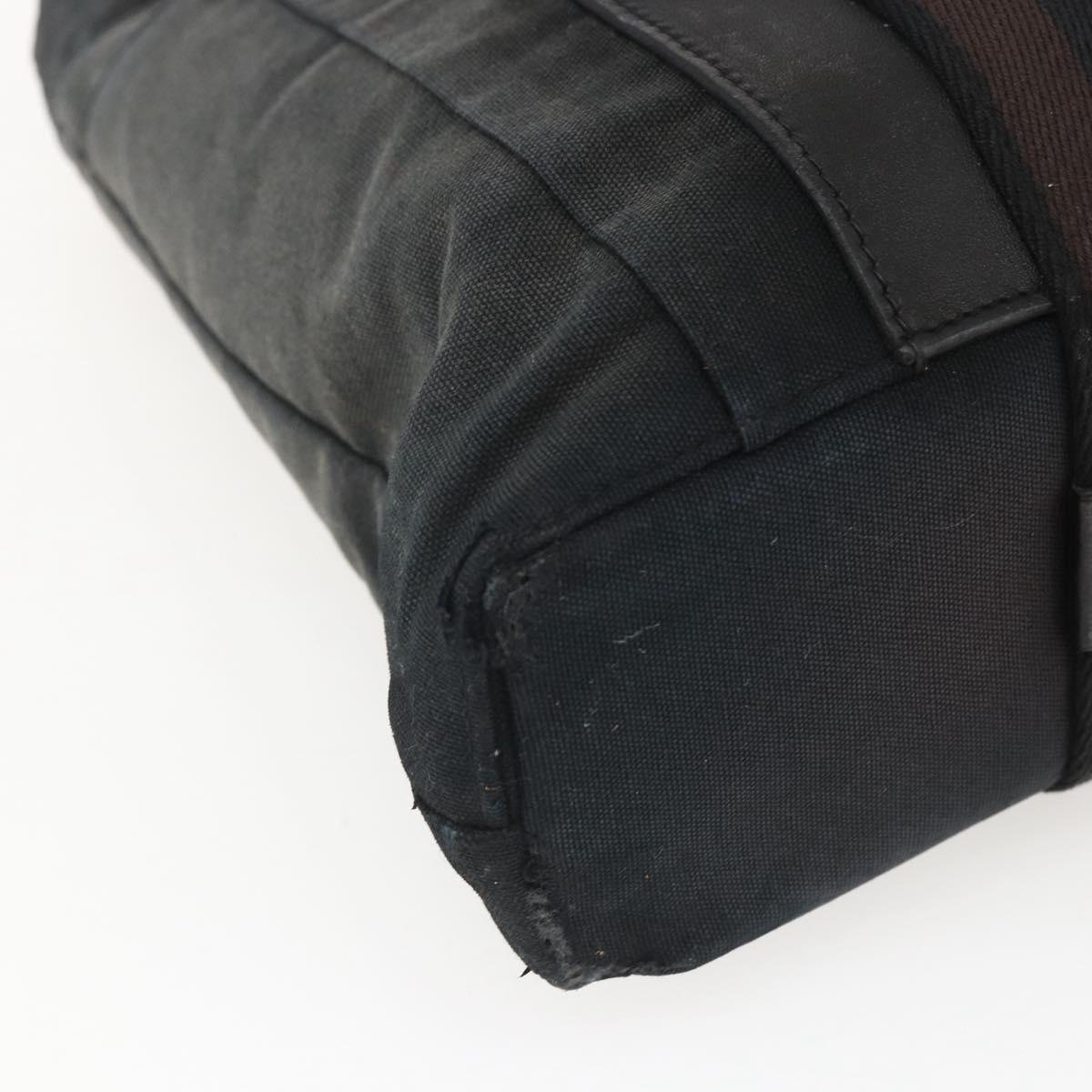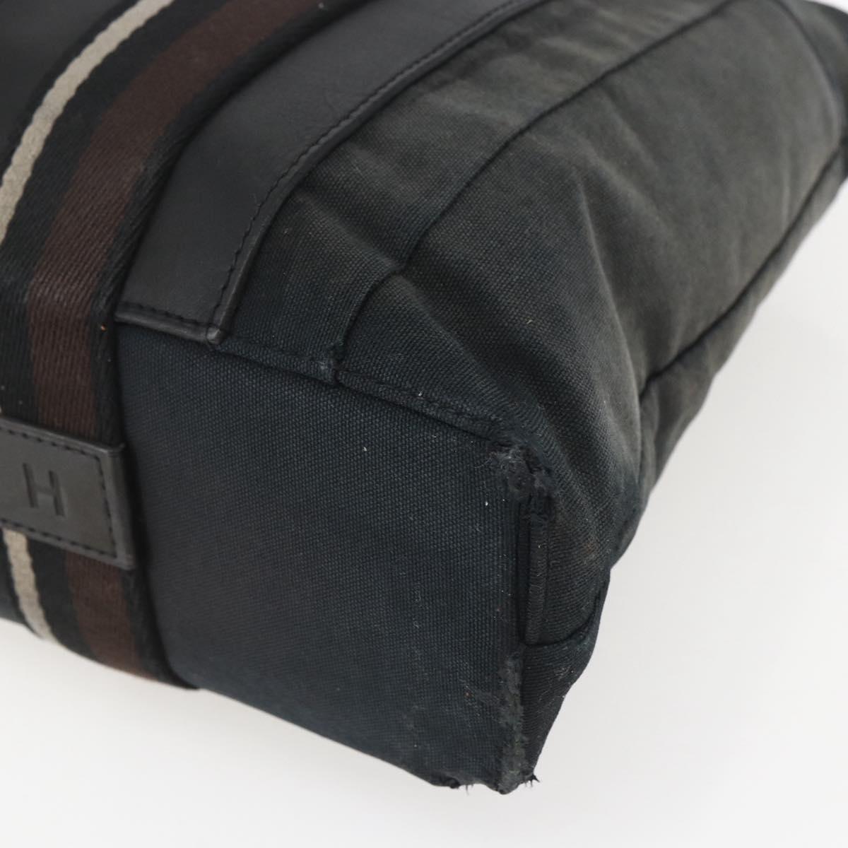 HERMES Toroca Horizontal MM Hand Bag Canvas Black Brown Auth bs32632