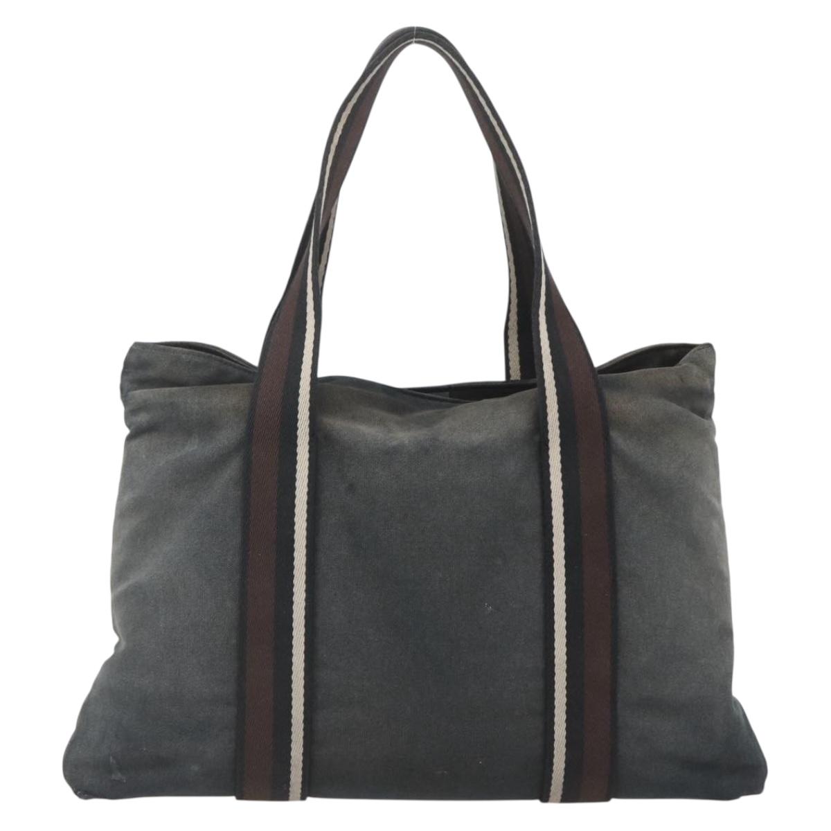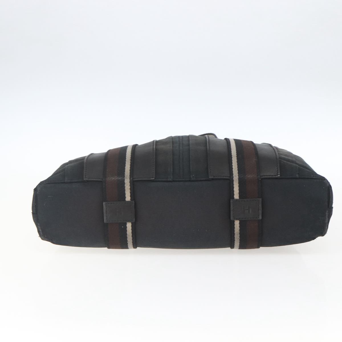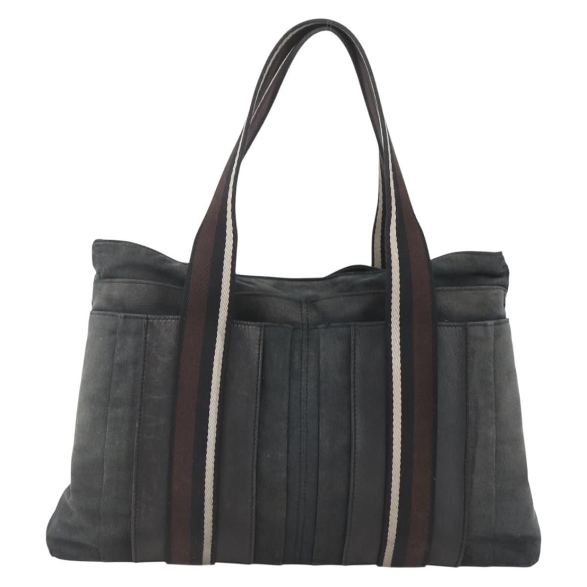 HERMES Toroca Horizontal MM Hand Bag Canvas Black Brown Auth bs32632