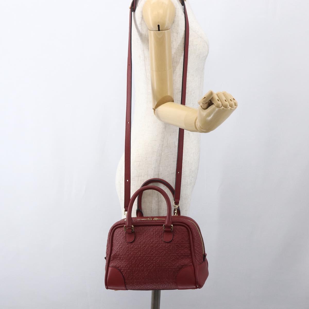 LOEWE Anagram Amazonas 23 Hand Bag Leather 2way Red Gold Auth ka1676SAM