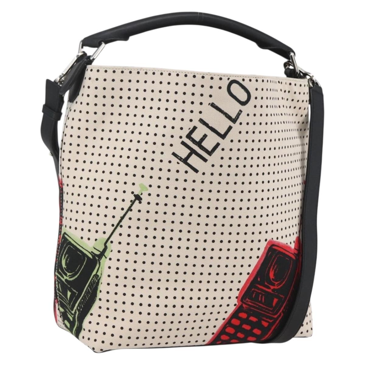 LOEWE Shoulder Bag Canvas 2way White Silver Auth ka1801M