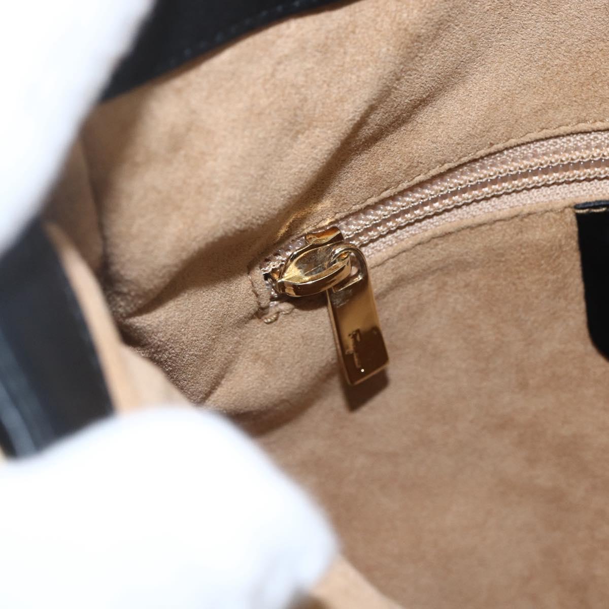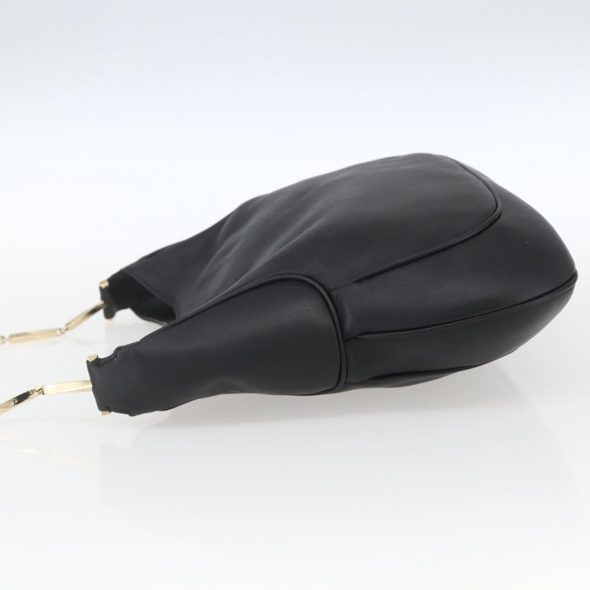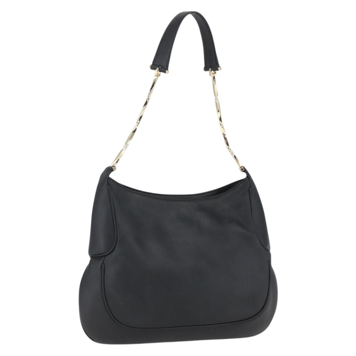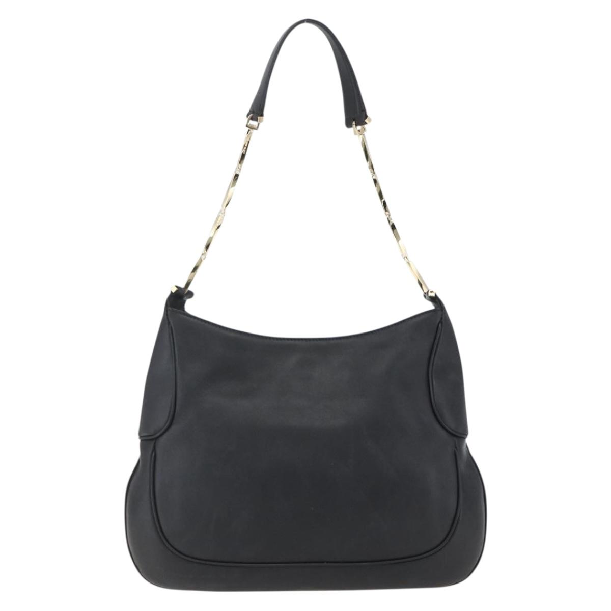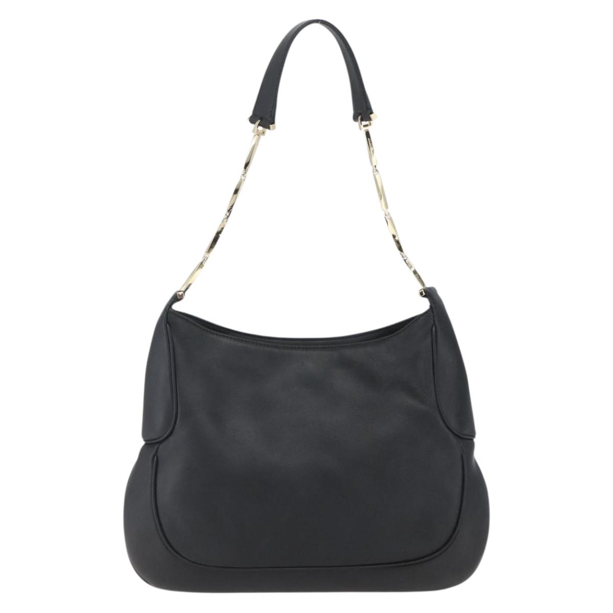 Salvatore Ferragamo Chain Shoulder Bag Leather Black Gold Auth 167918