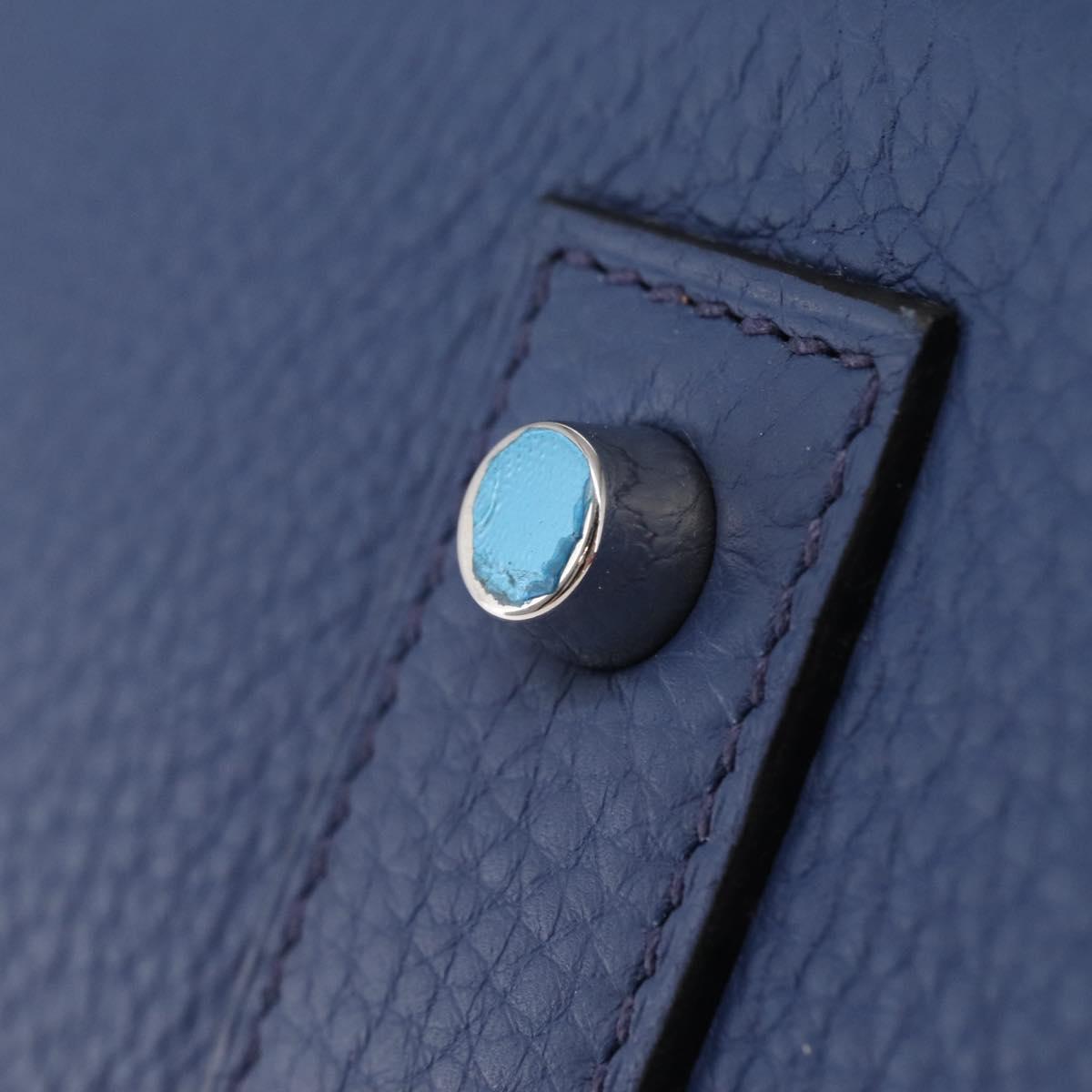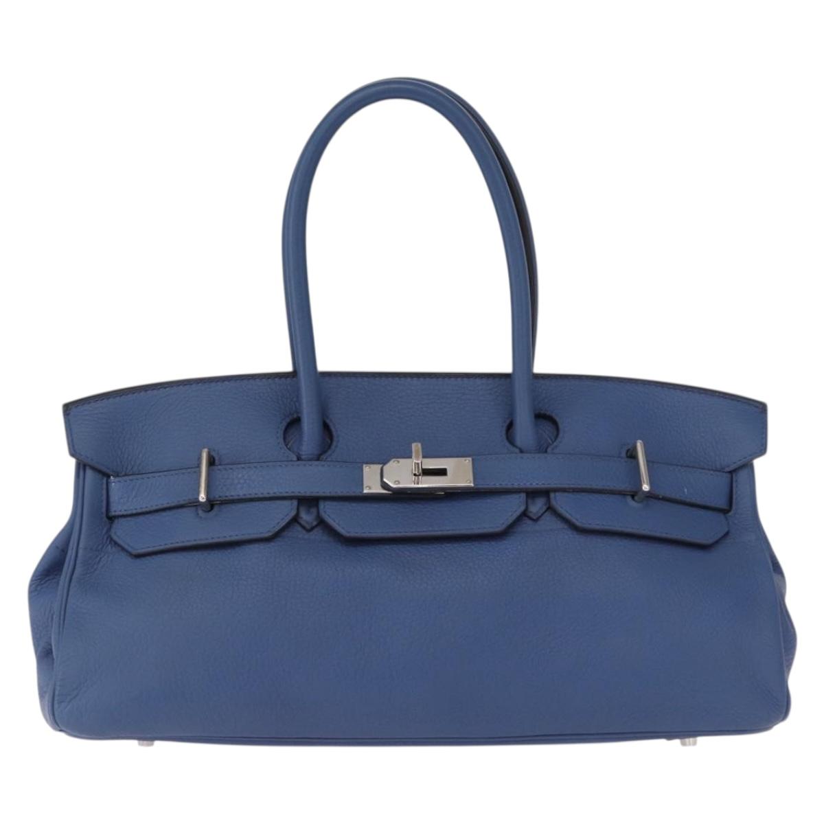 HERMES Shoulder Birkin Shoulder Bag Taurillon Clemence Blue Silver Auth 162913SM