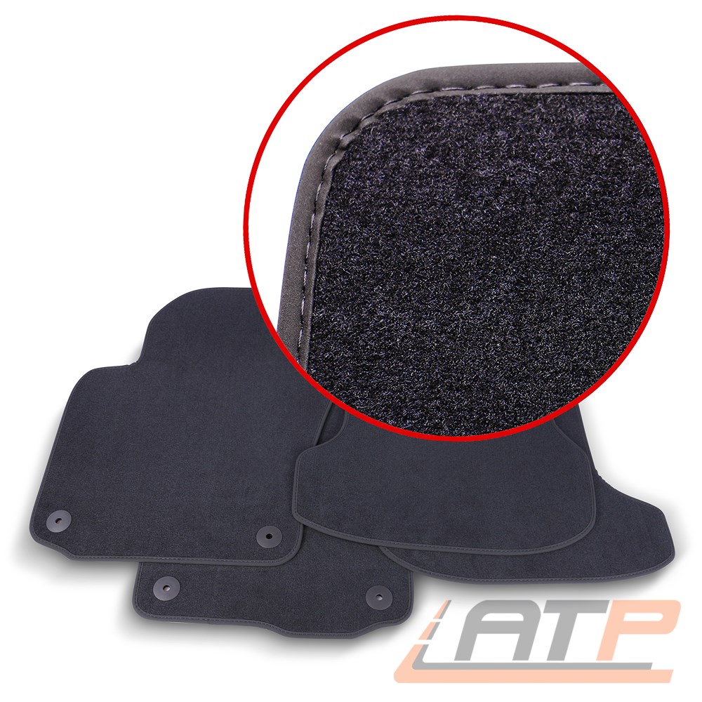Ihre neuen Fußmatten werden speziell für Ihr Fahrzeug gefertigt und besitzen deshalb eine optimale Passform. Zur Herstellung der Fußmatten wird eine sehr hochwertige Samtvelours Qualität in schwarz verwendet, welche mit einem Nubukband inklusive Ziernaht eingefasst werden - die Fahrzeugspezifischen Befestigungen werden mit in die entsprechenden Matten eingearbeitet. Um auch bei den Matten ohne Befestigung ein Verrutschen zu vermeiden ist die Rückseite mit einer Anti Rutsch Beschichtung versehen.