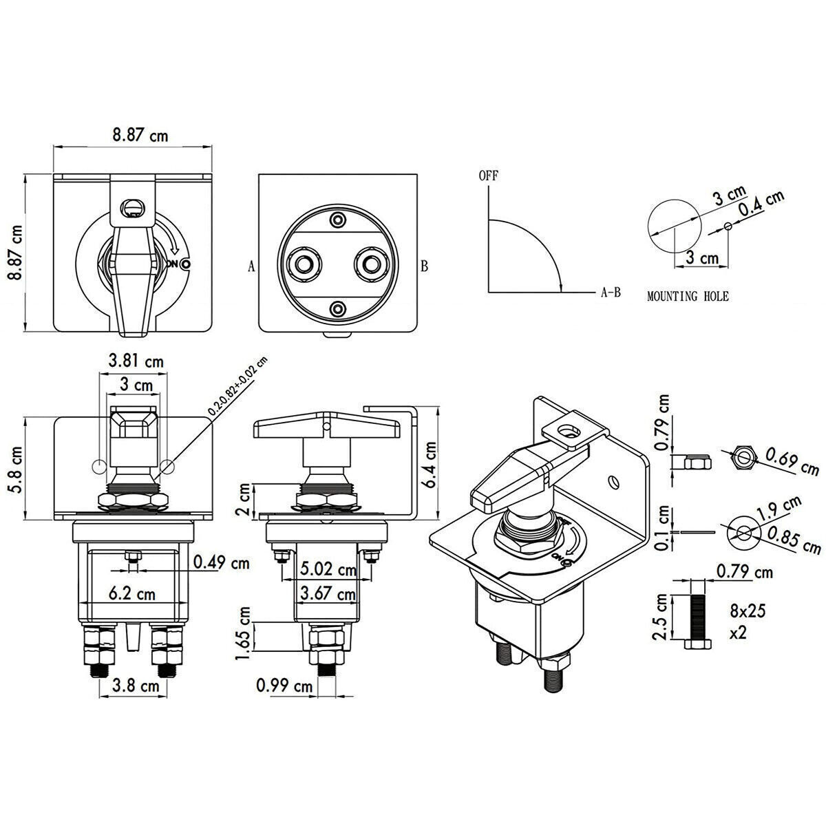 UNIVERSAL BATTERY DISCONNECT SWITCH - Which protects against electrical fires and theft when equipment is not in use and provides a reliable way to shutdown electrical power during maintenance and protect batteries from excessive battery drain. Disconnect the battery when you are not driving a Car / Boat / RV / Yachts / Vehicle / ATV / Trucks / Off-road / Tractors / Agricultural Equipment, etc. Keep you safe all the time.