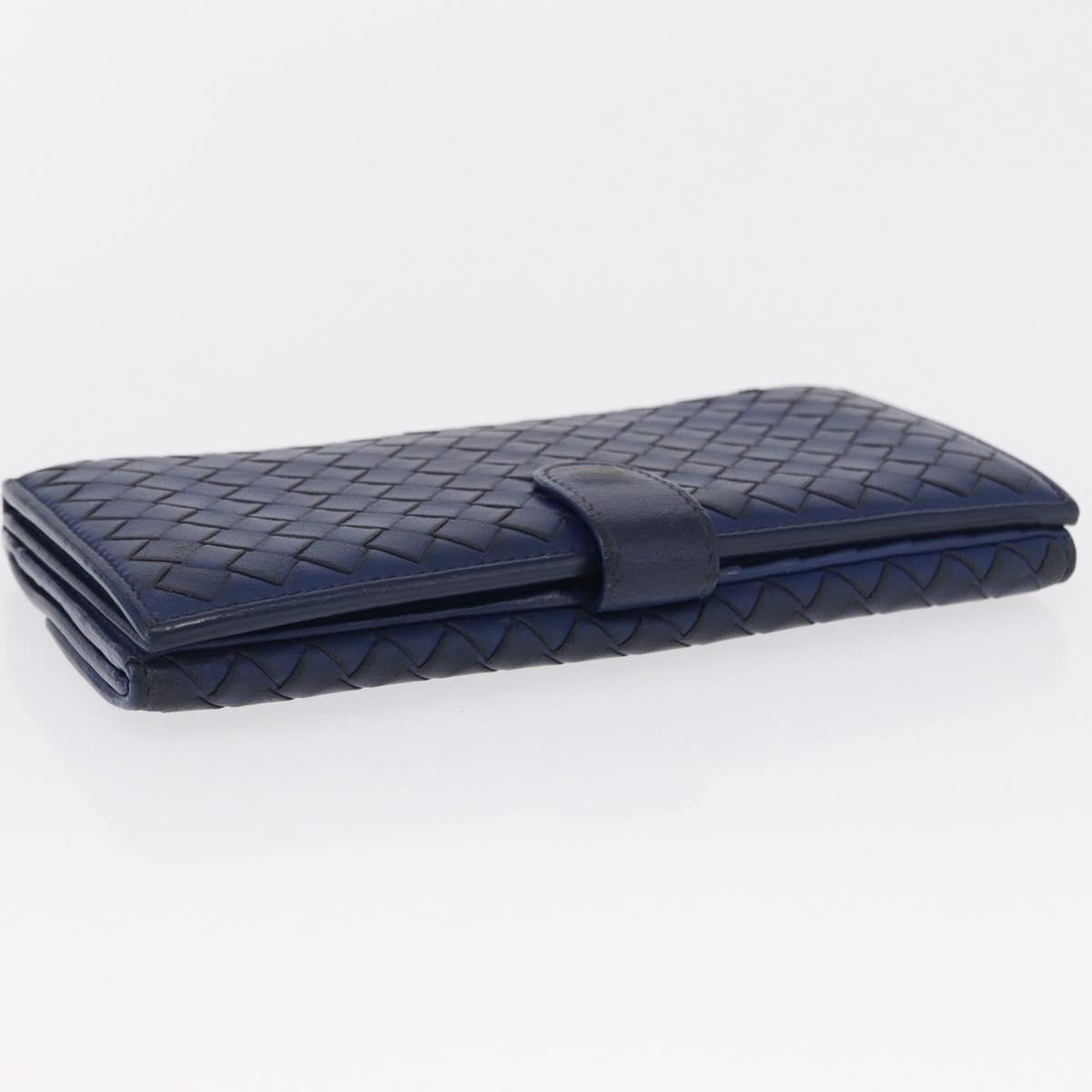 BOTTEGA VENETA INTRECCIATO Long Wallet Leather Blue Auth am10518