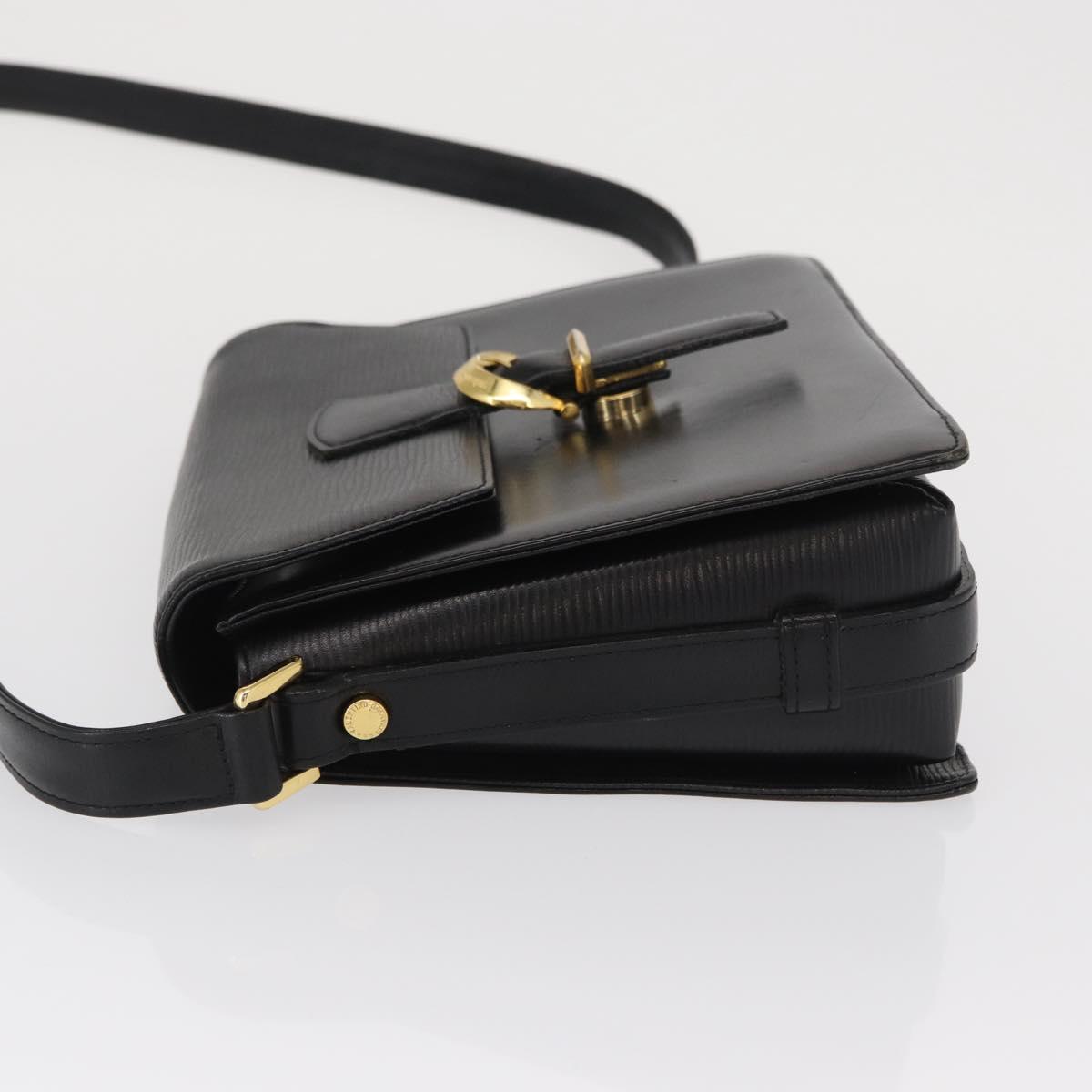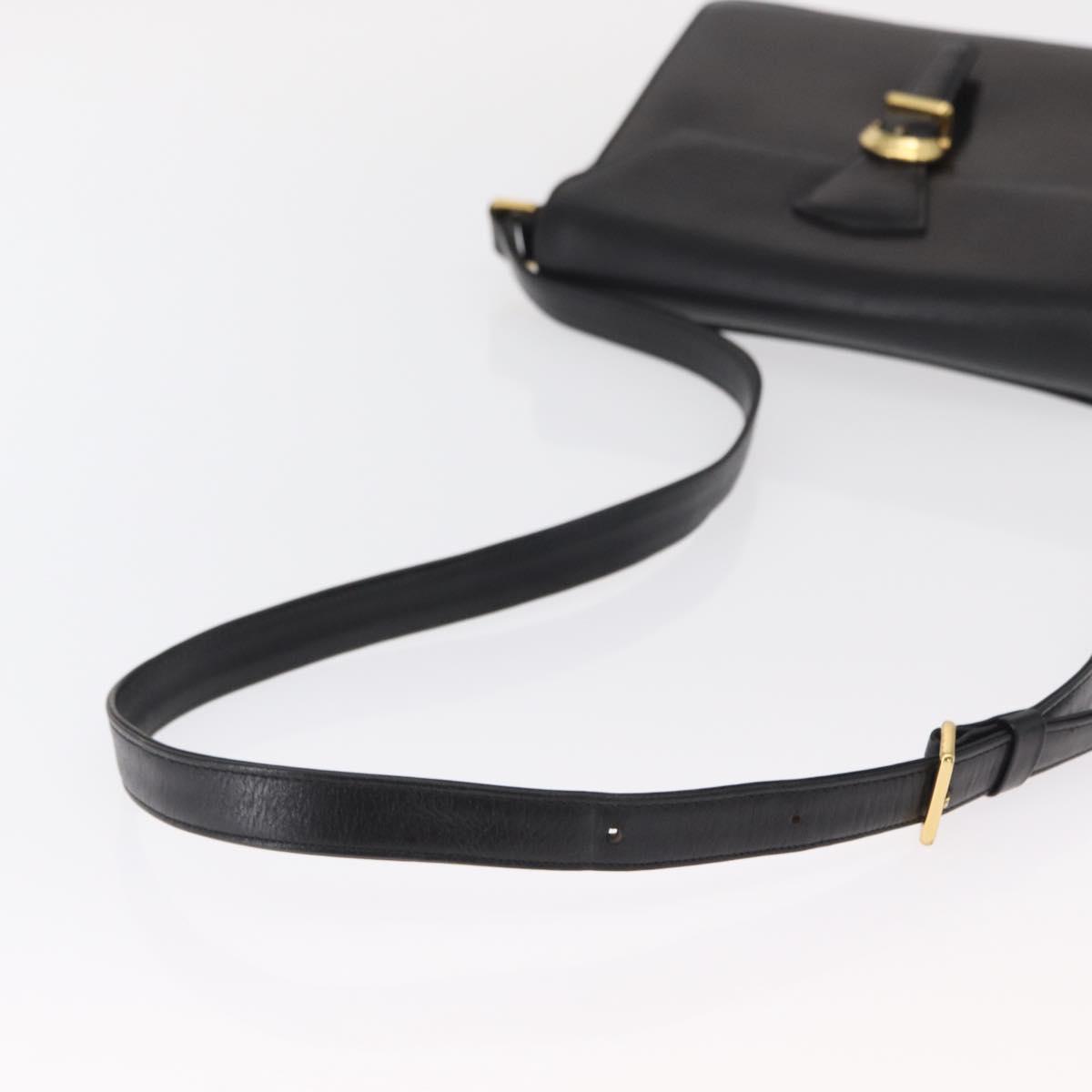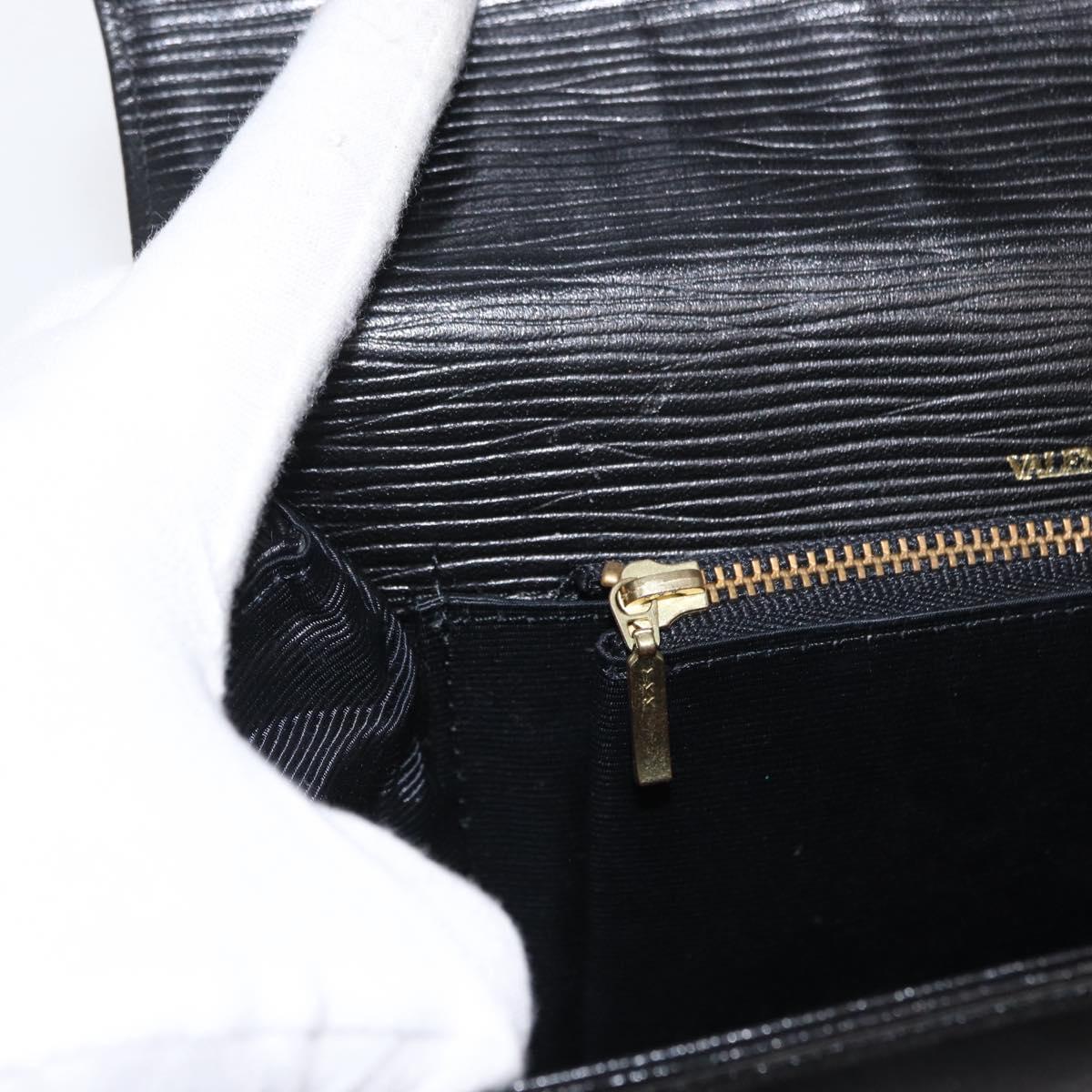 VALENTINO Shoulder Bag Leather Black Gold Auth bs32495