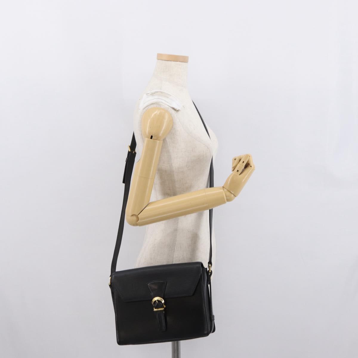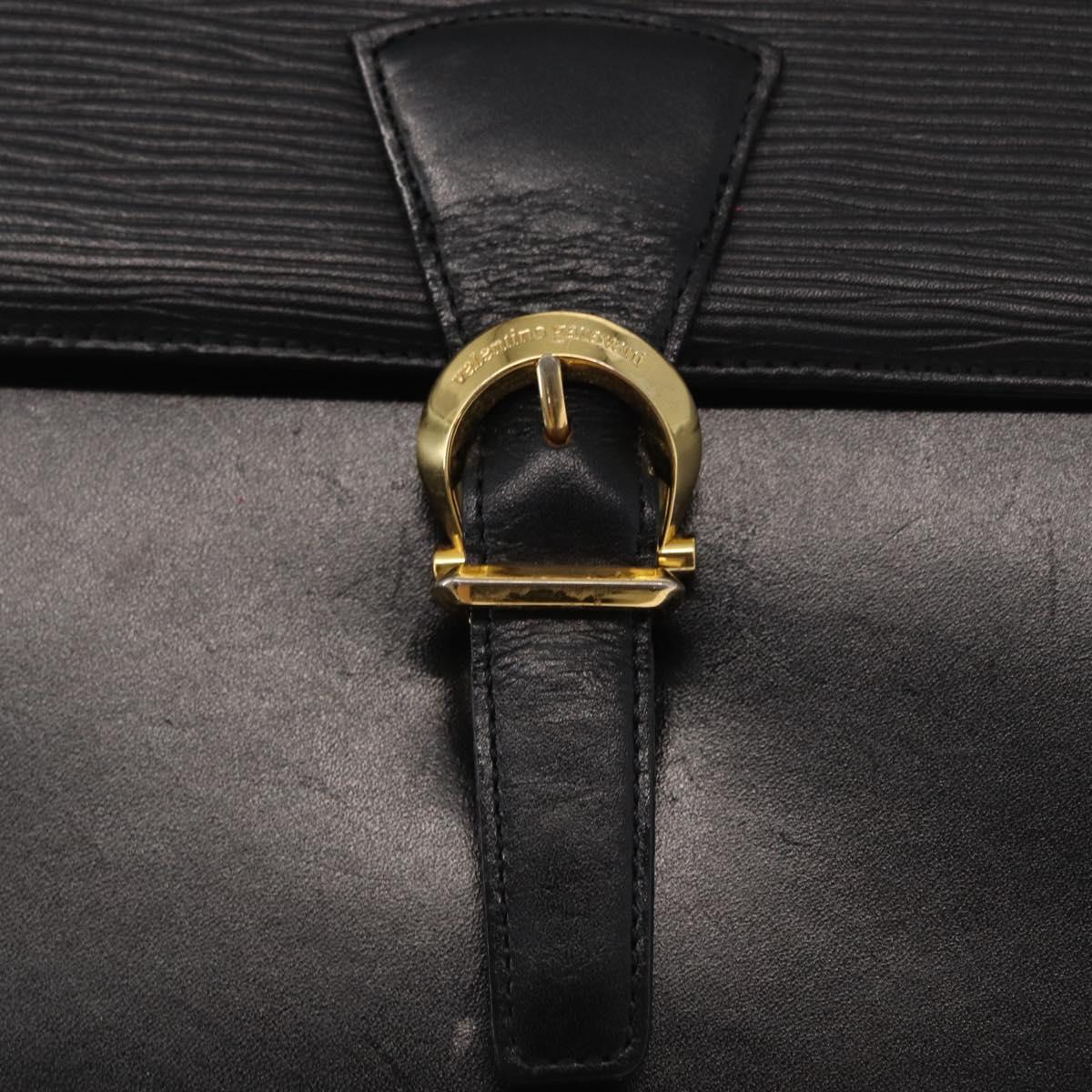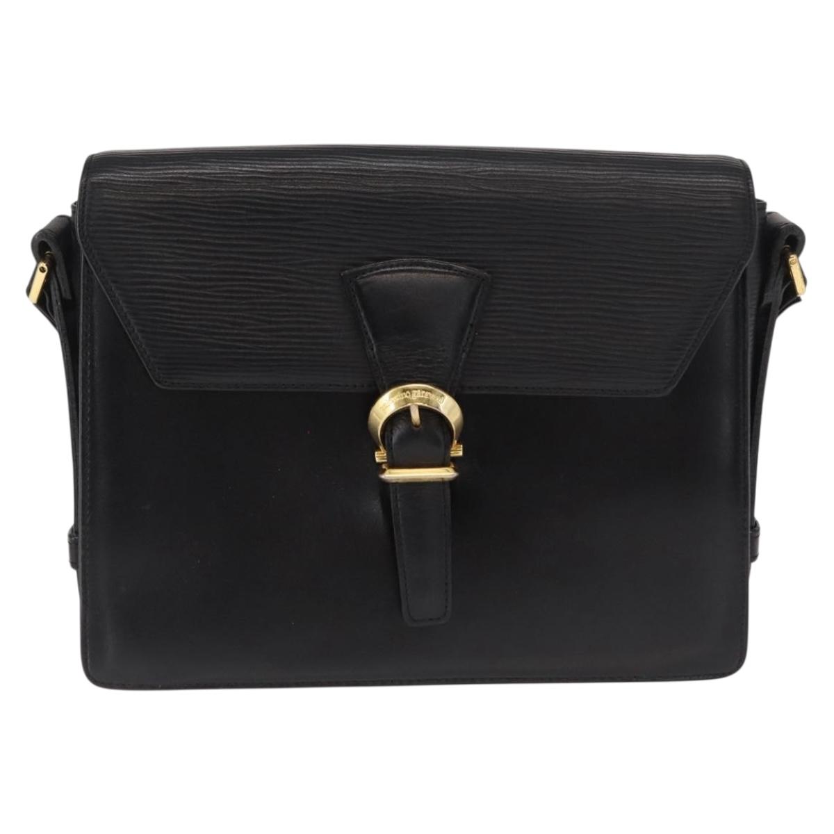 VALENTINO Shoulder Bag Leather Black Gold Auth bs32495