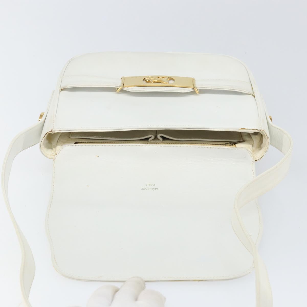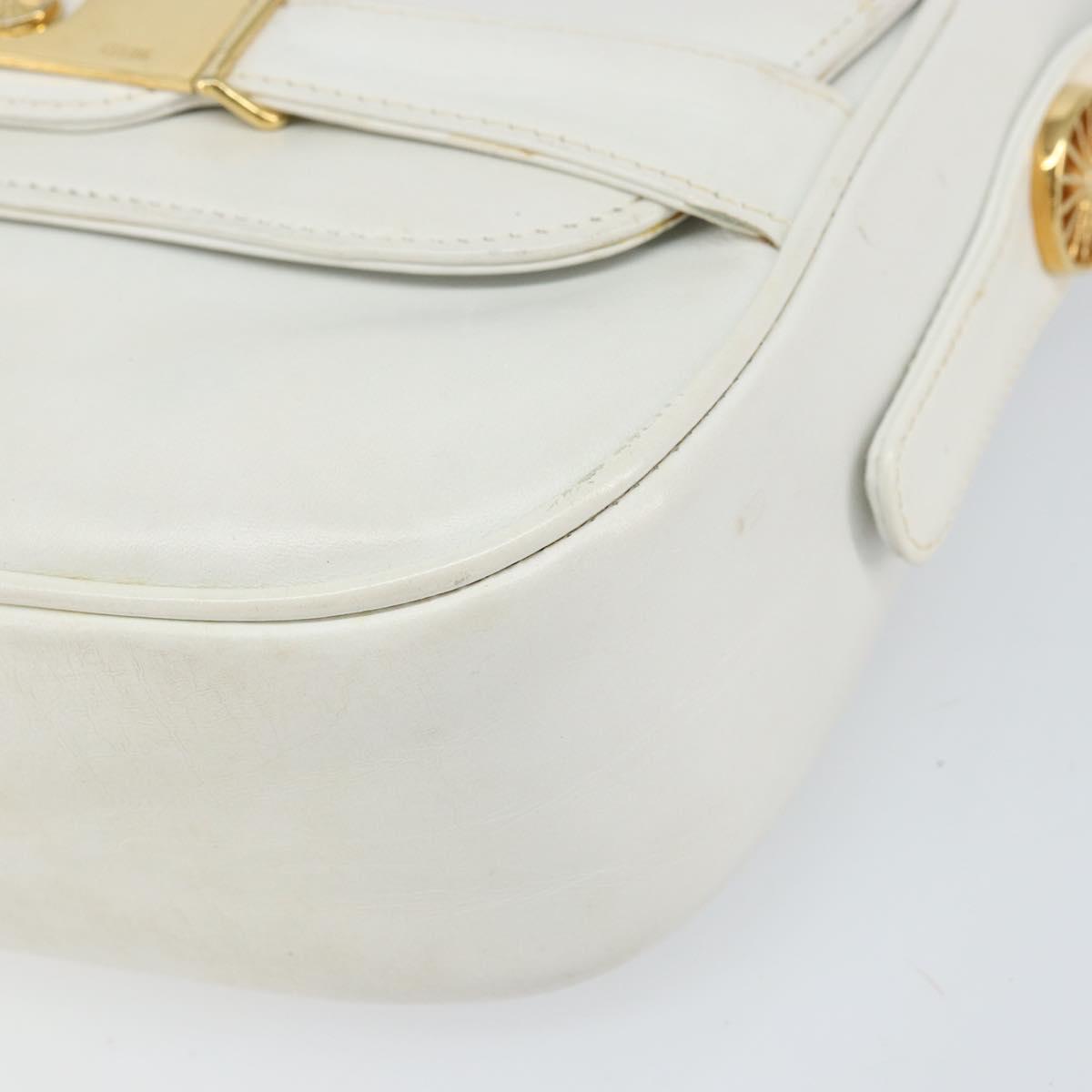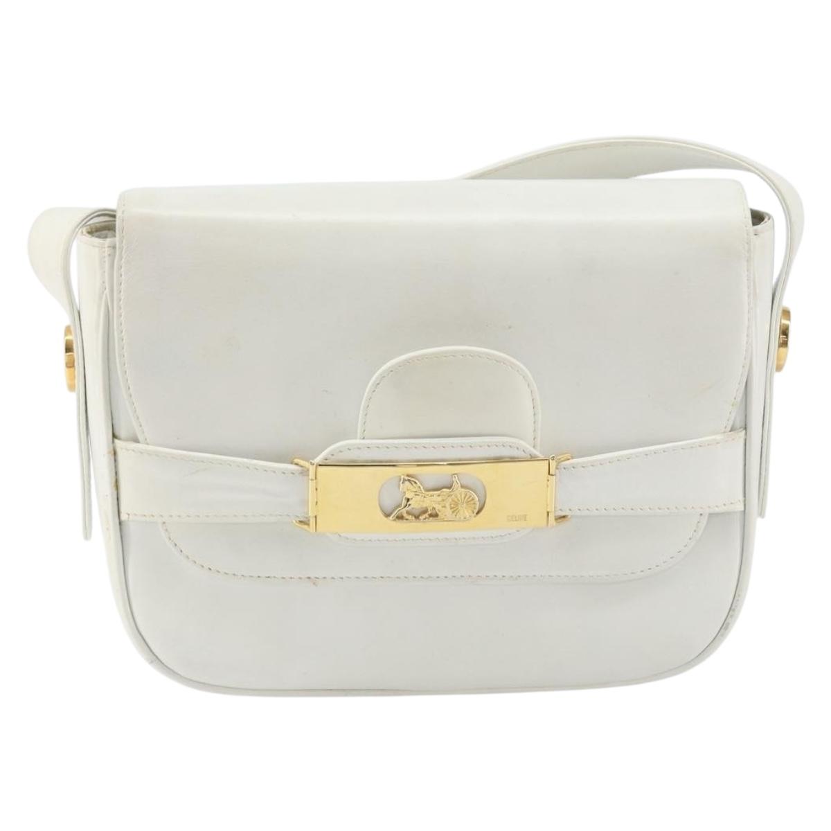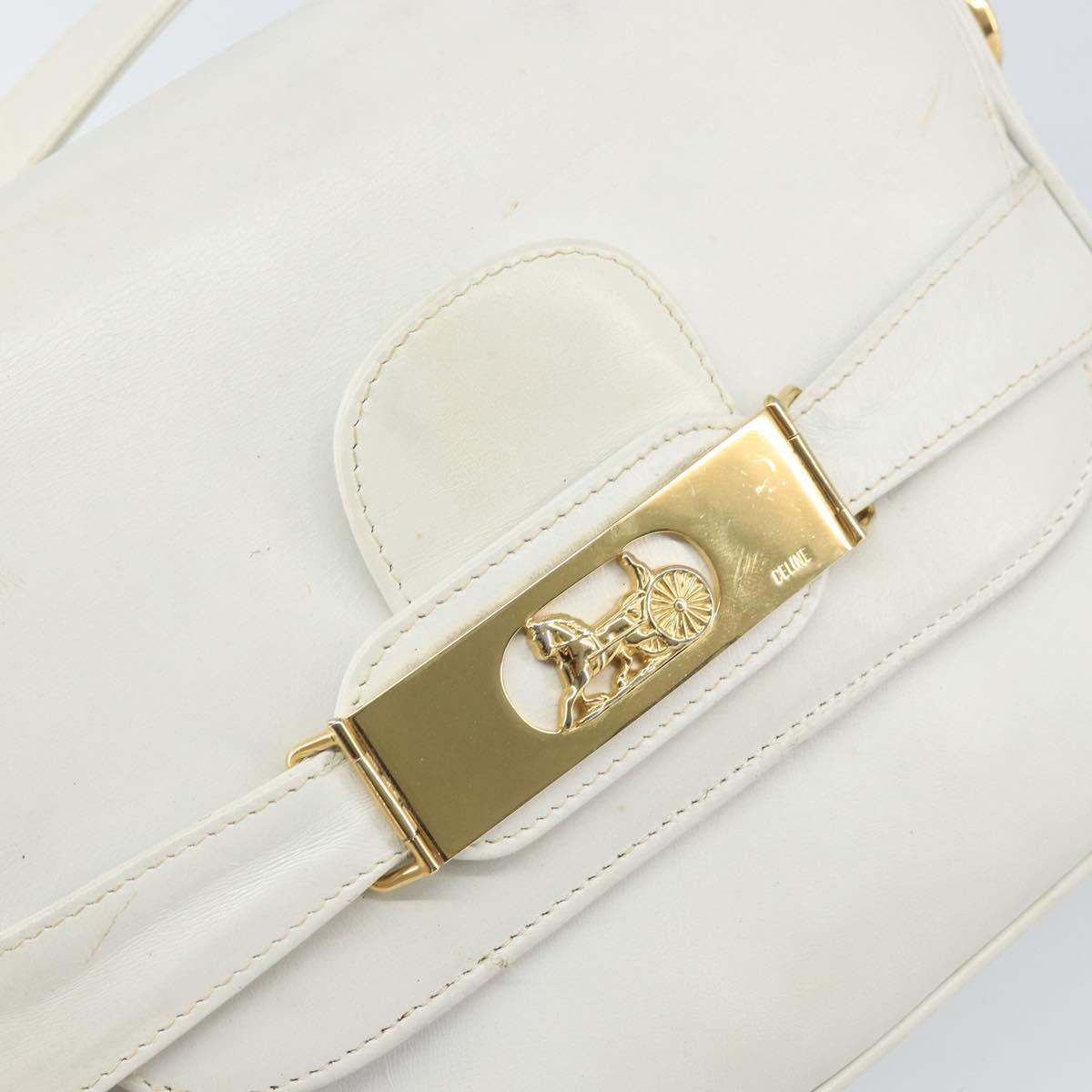 CELINE Horse Carriage Shoulder Bag Leather White Gold Auth 166400