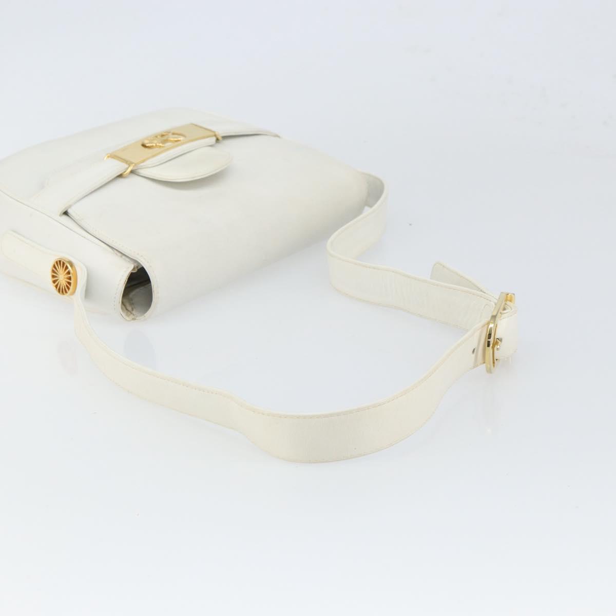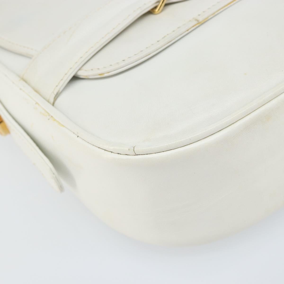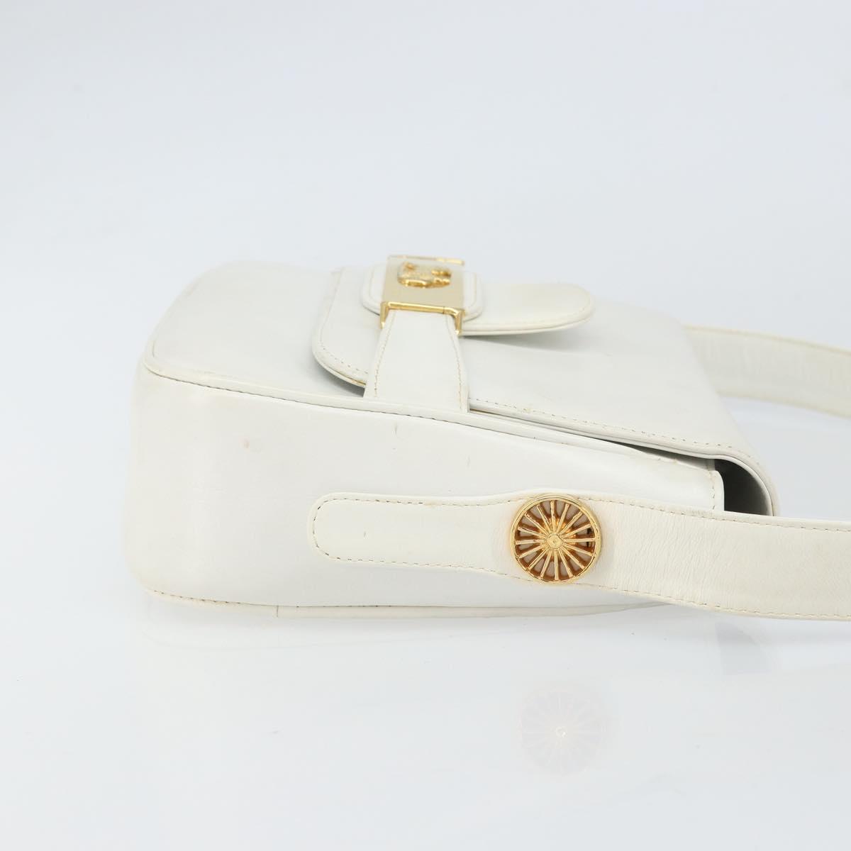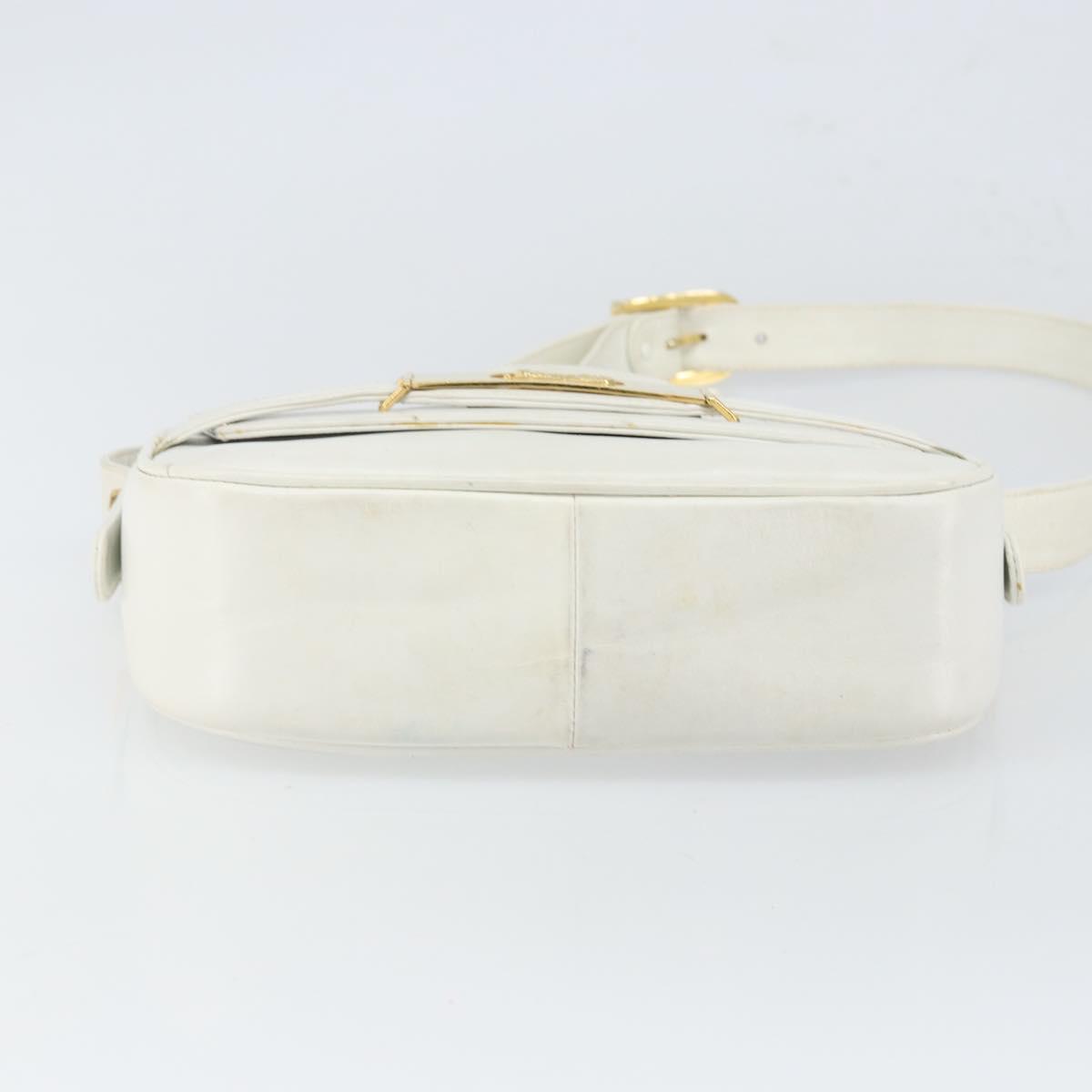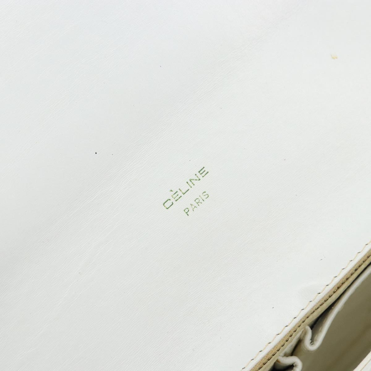 CELINE Horse Carriage Shoulder Bag Leather White Gold Auth 166400