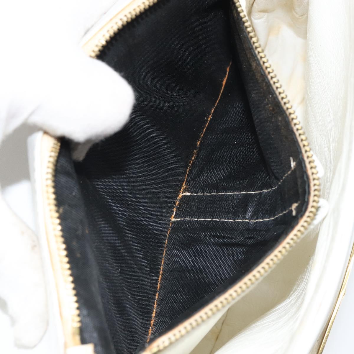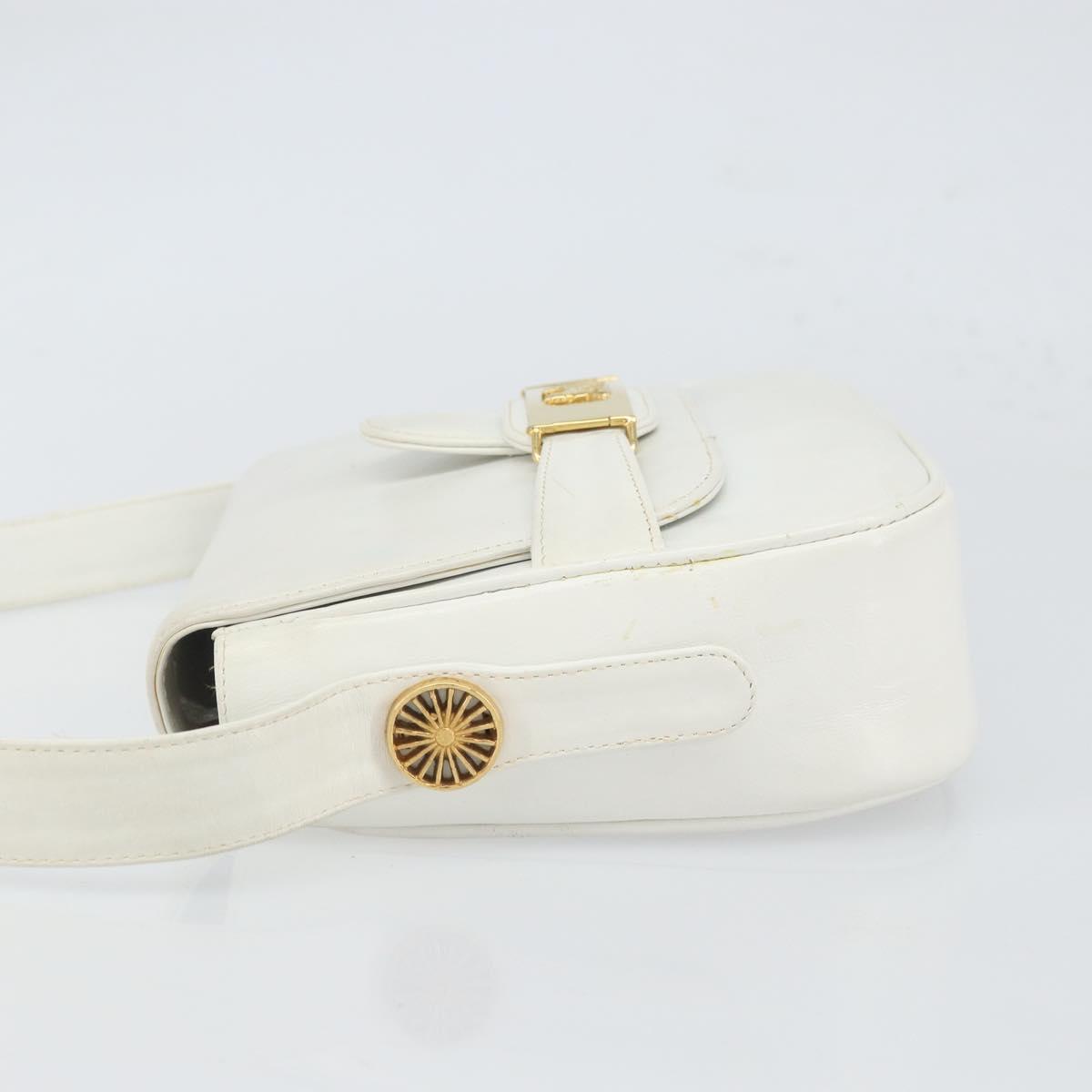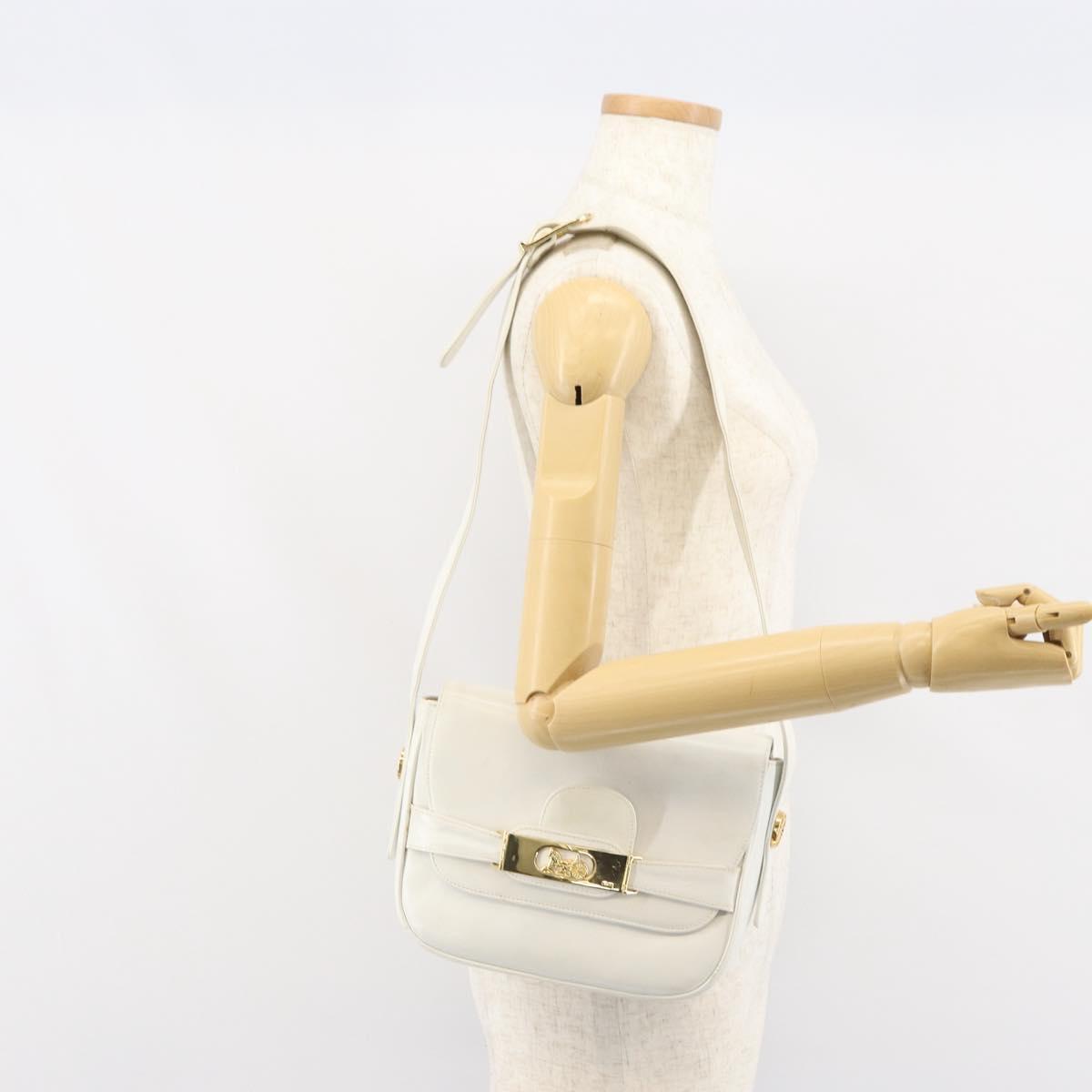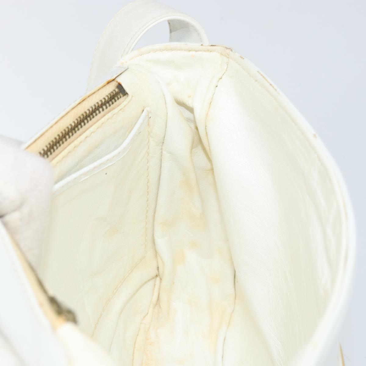 CELINE Horse Carriage Shoulder Bag Leather White Gold Auth 166400