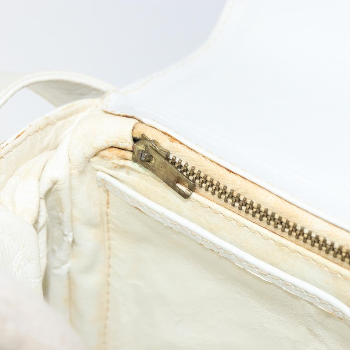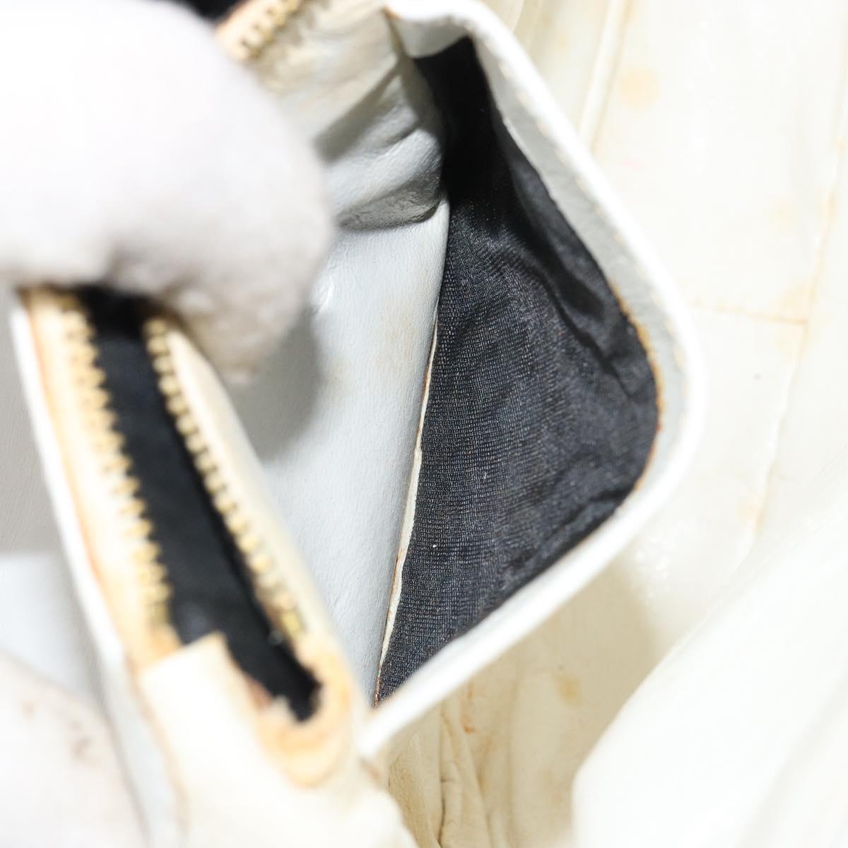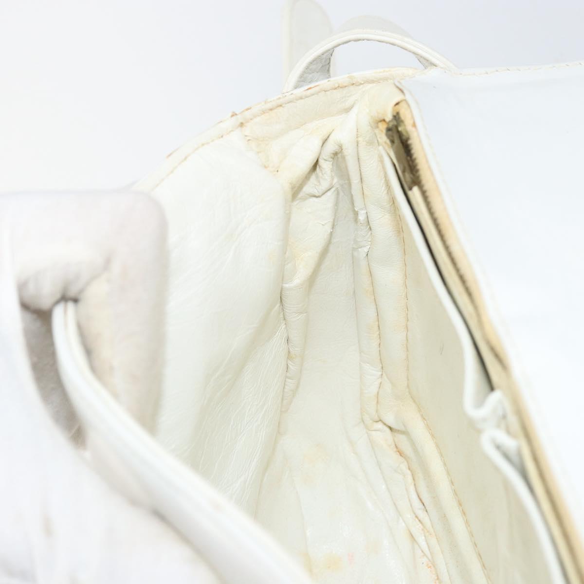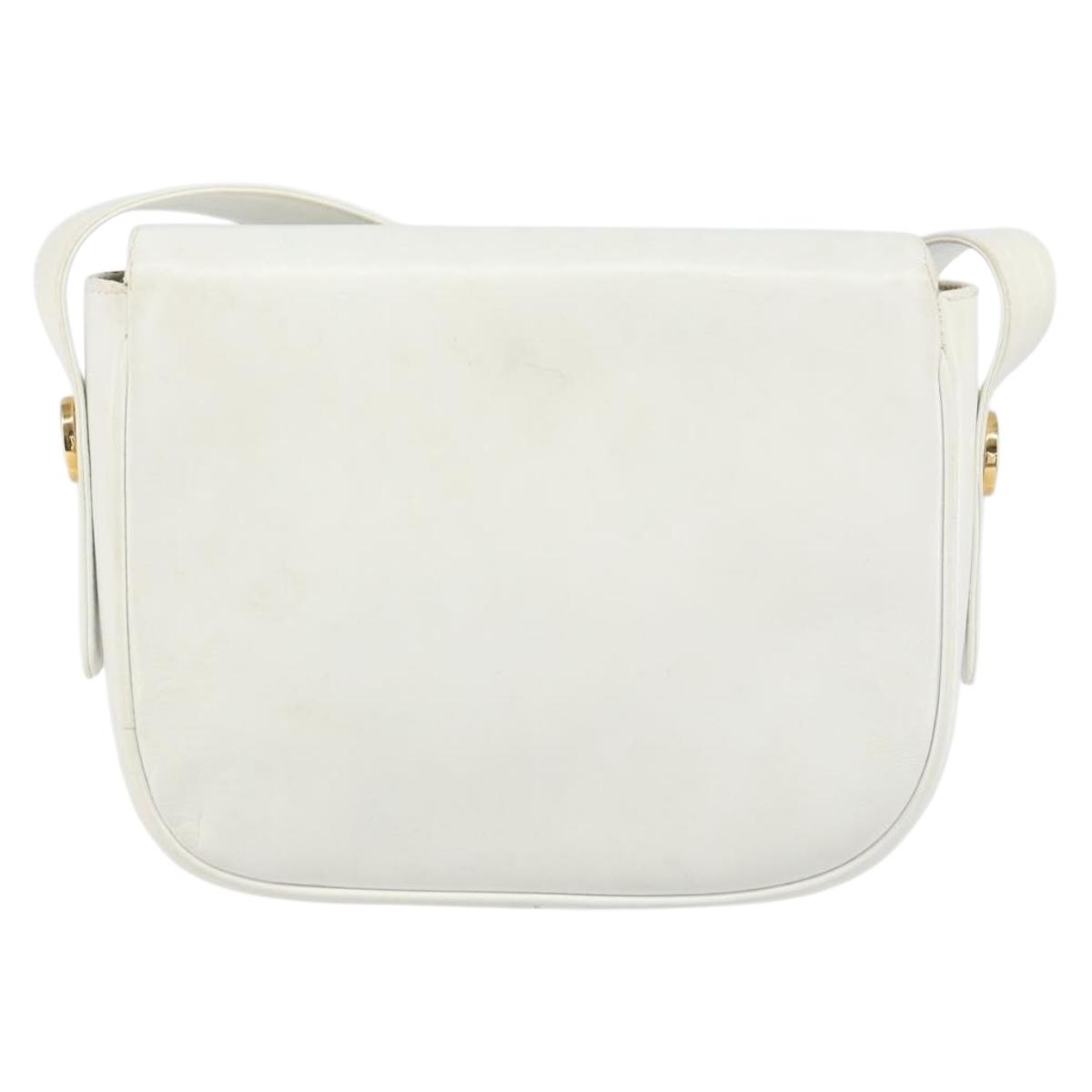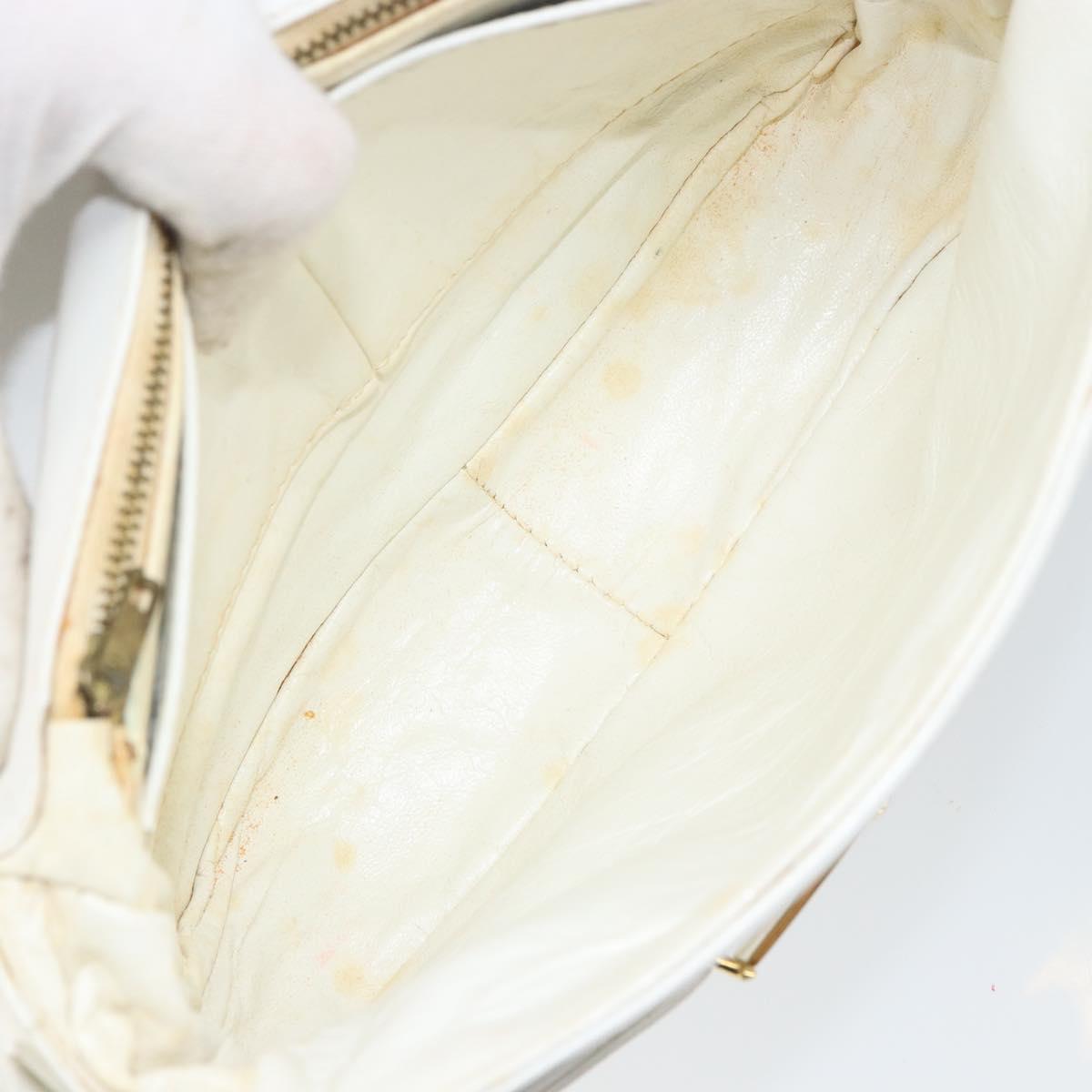 CELINE Horse Carriage Shoulder Bag Leather White Gold Auth 166400