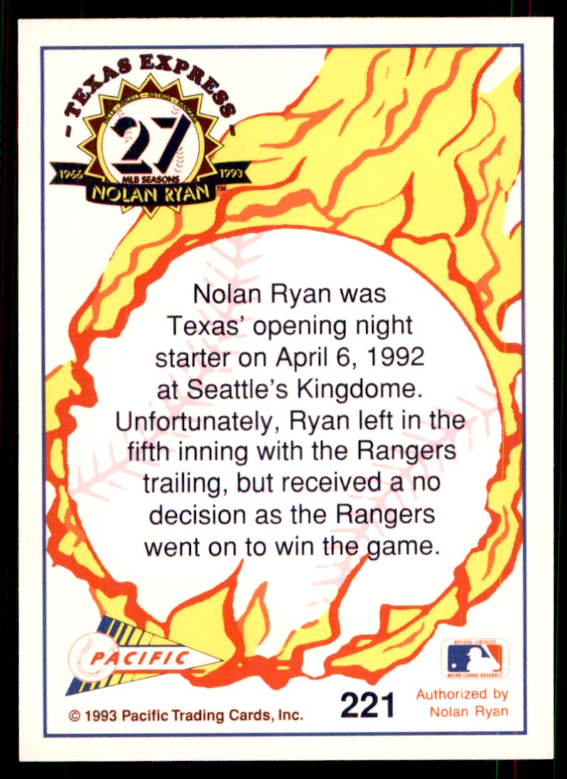 | 1993 Pacific Texas Express Rangers' Opening Night Pitcher A Baseball Cards #221 |