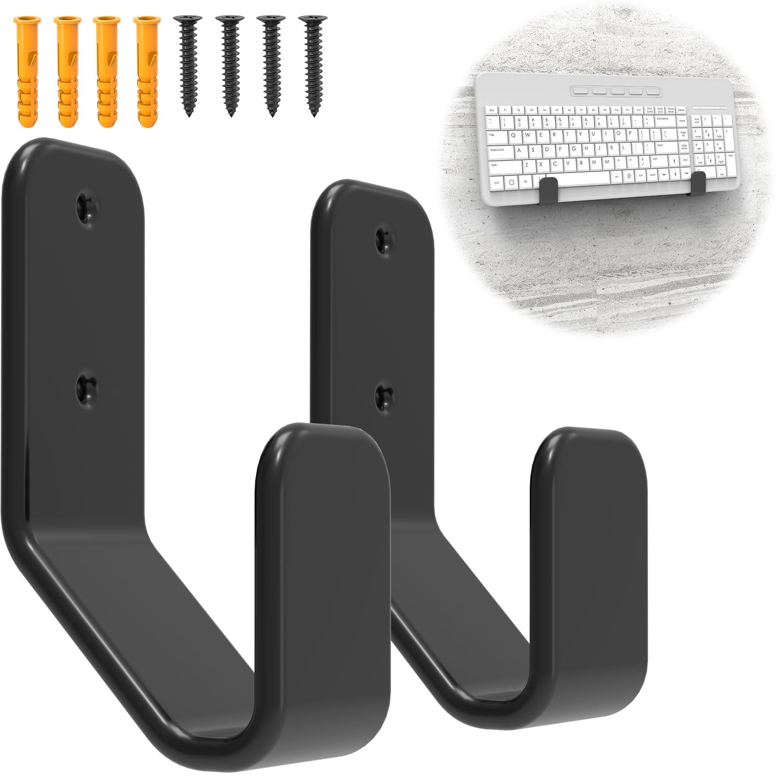 Application:The keyboard wall hanger for wall offers a convenient solution for hanging your mechanical keyboard on the wall, is suitable for full size keyboard, folding keybaord, game lap keyboard.Notice:suitable for keyboard that less than 3cm thick. Feature -Anti Scratch Design :The keyboard wall mount storage organizer tilt design at the bottom of the bracket, smooth bending angle, equipped with a arched rubber pad,protecting your keyboards surface from scratches. -Material : Metal Keyboard Wall Holder is made of metal, with a arched rubber pad.ensuring stable support and long-lasting use. -Easy to Install:Installtion with screw, it can also be installed by screws (included), stronger and more stable,can be installed on almost all vertical surfaces.