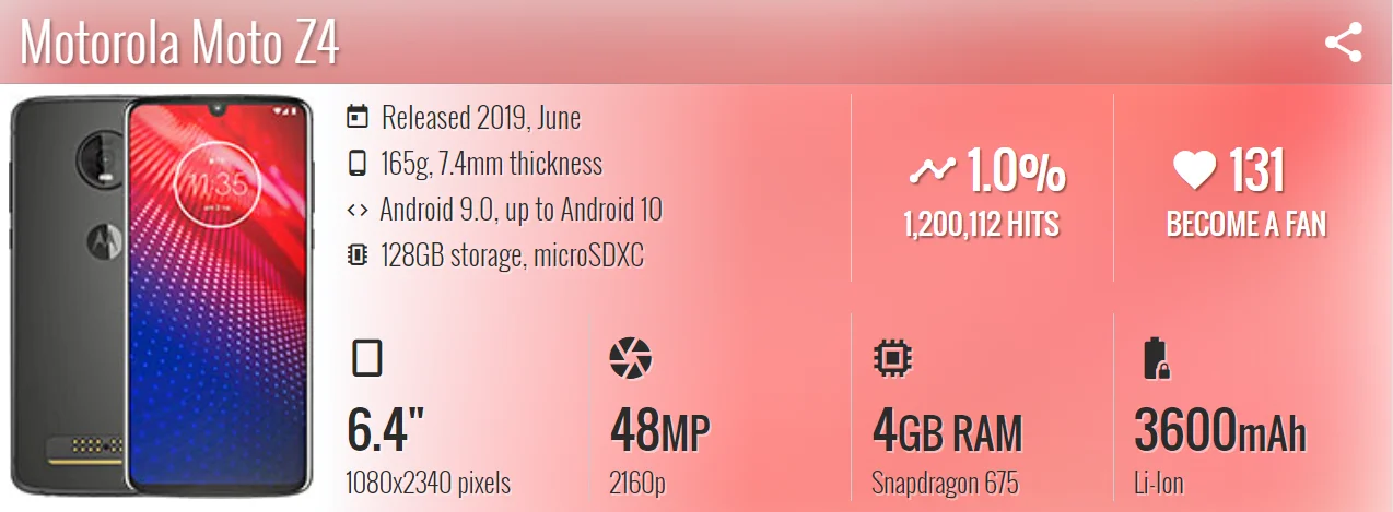 1* Motorola Moto Z4 XT1980-4 Verizon White Unlocked