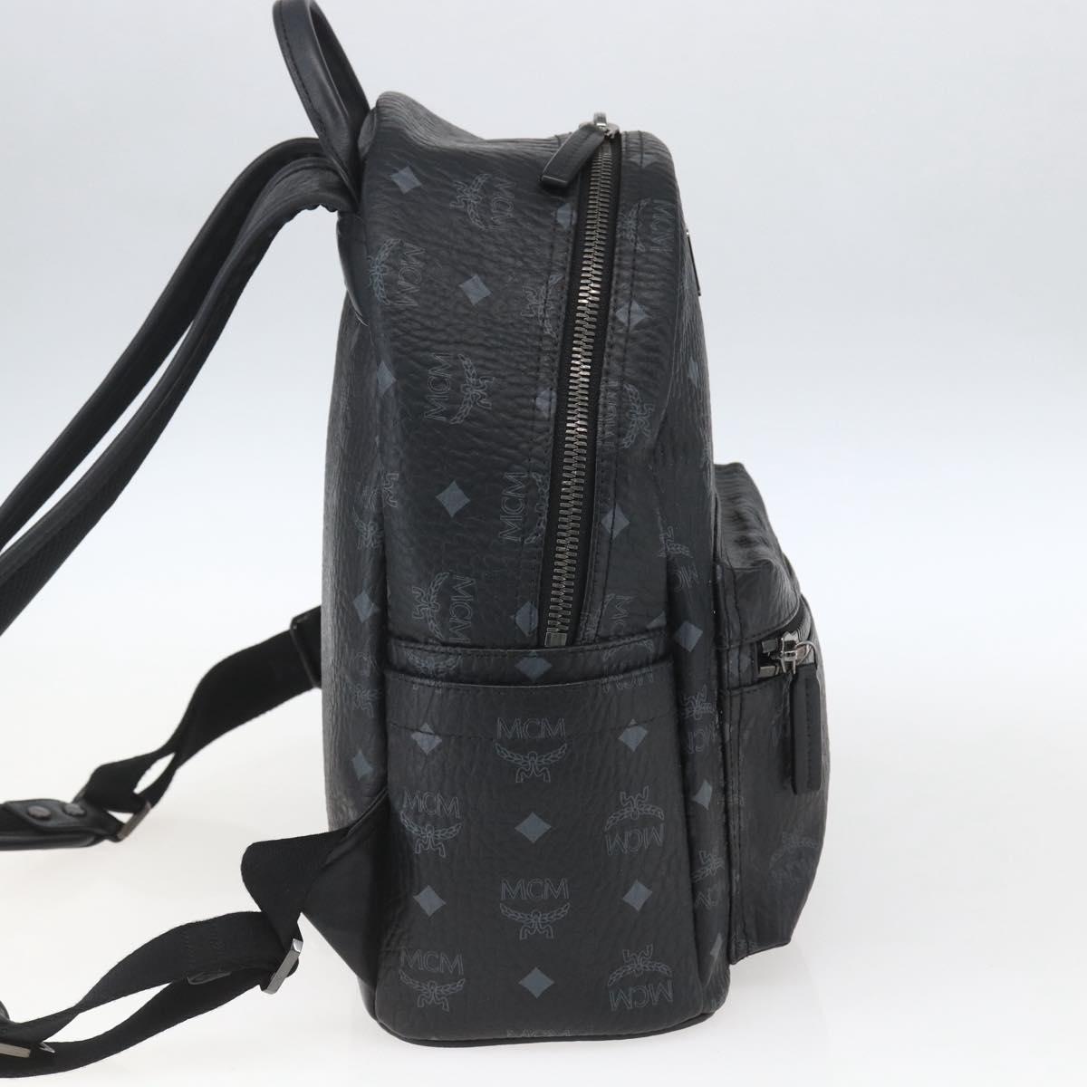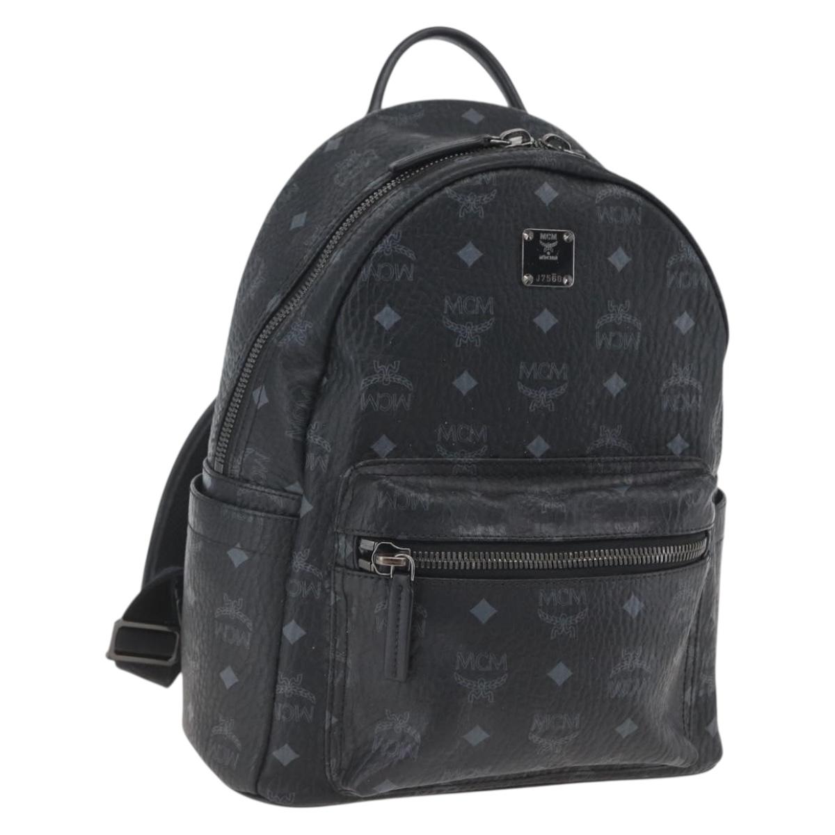MCM Vicetos Logogram Backpack PVC Black Silver Auth 162406