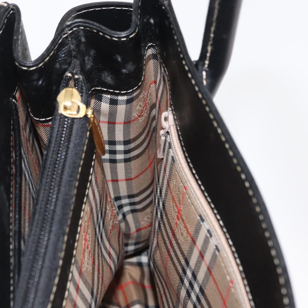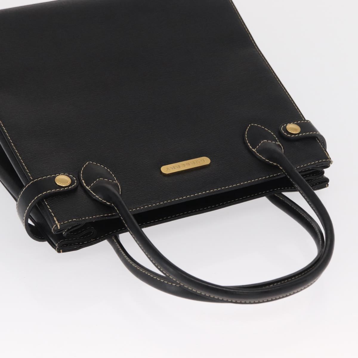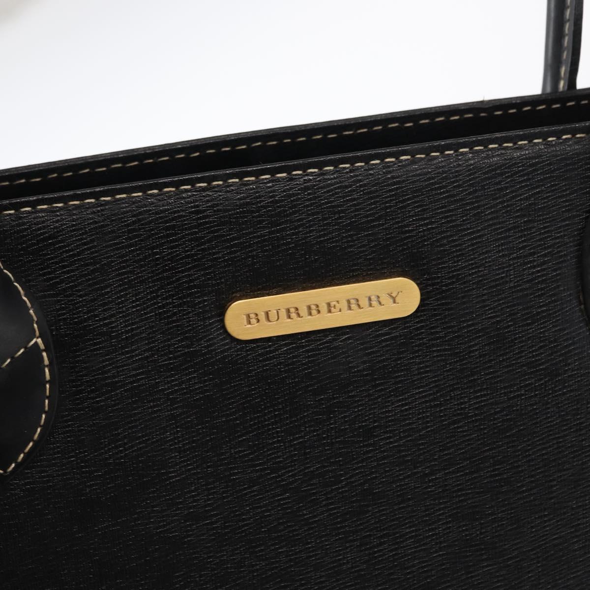 BURBERRY Hand Bag Leather Black Gold Auth 169412