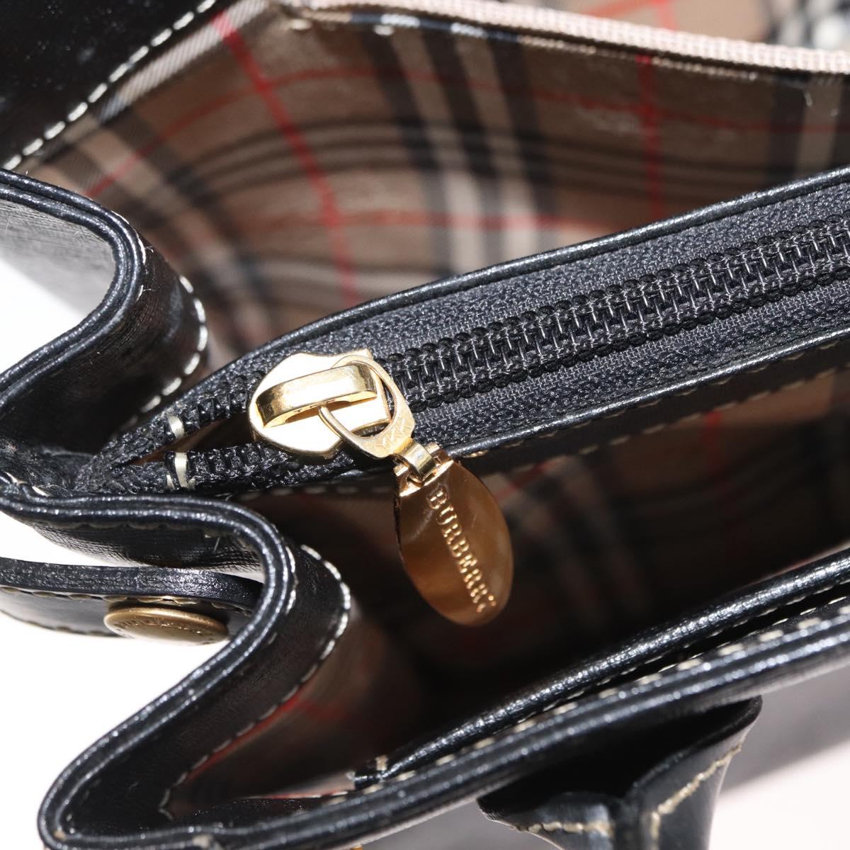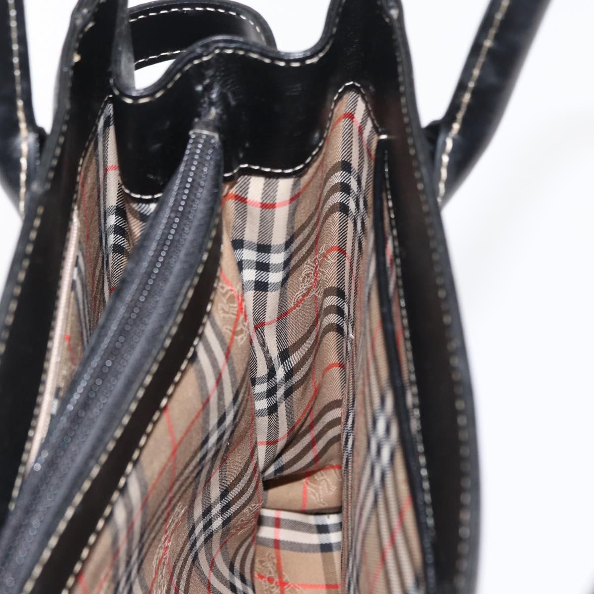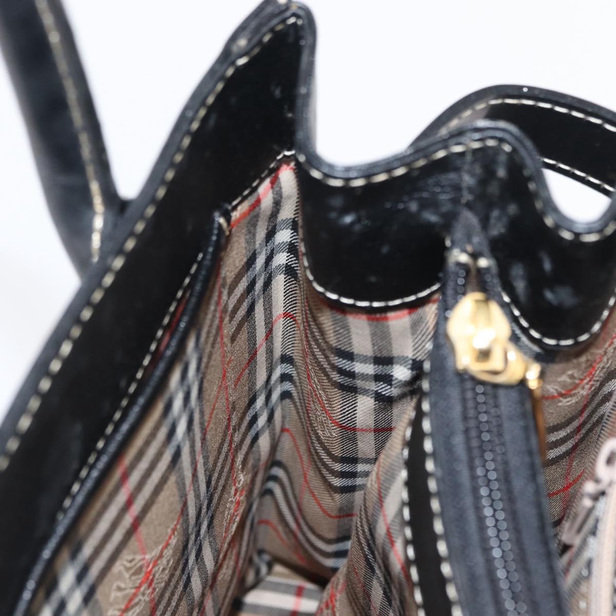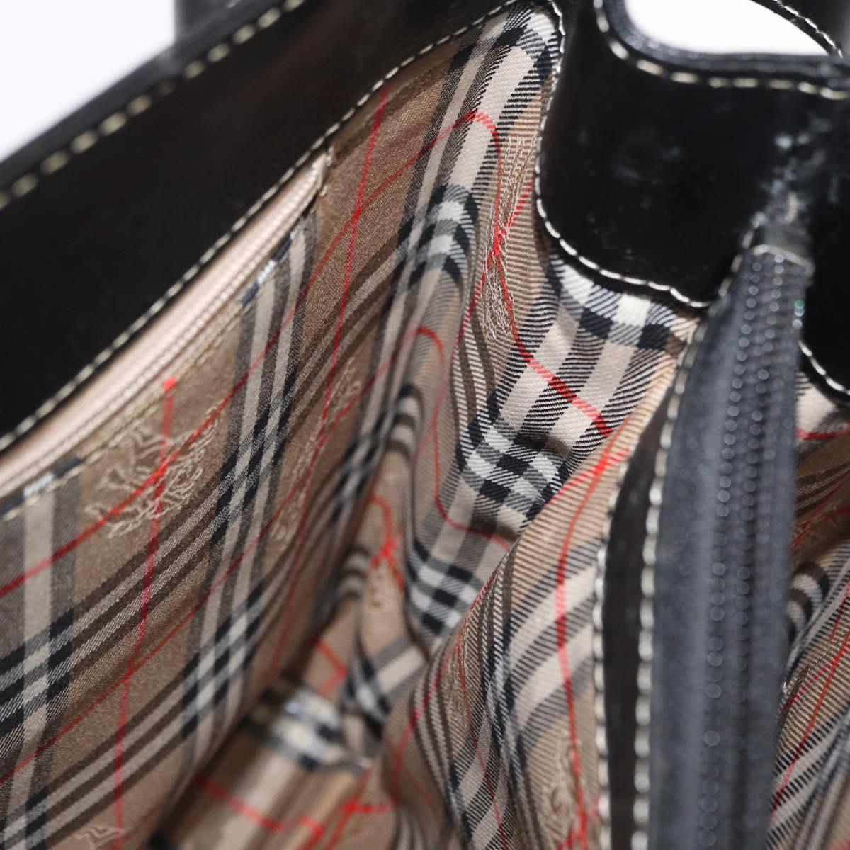 BURBERRY Hand Bag Leather Black Gold Auth 169412