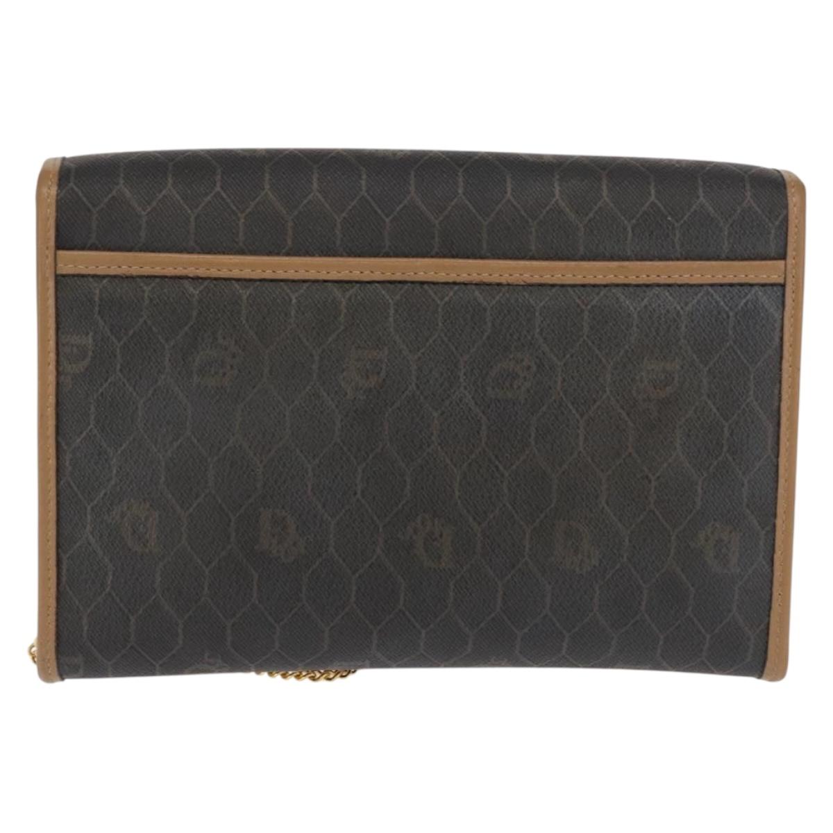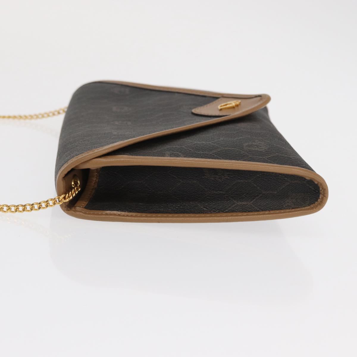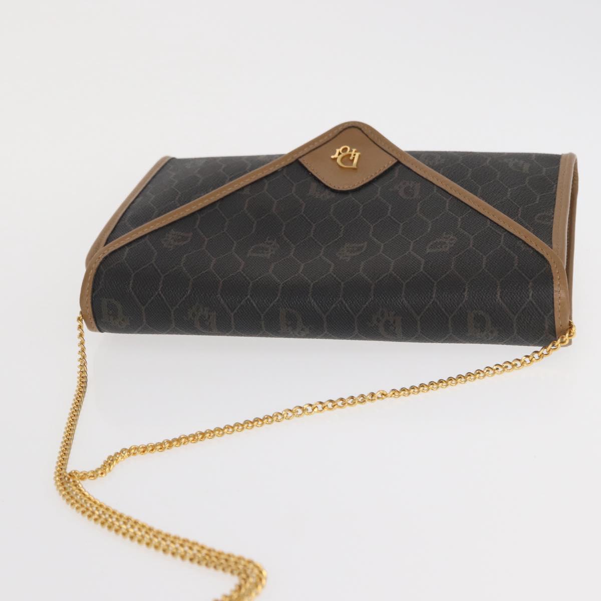 Christian Dior Honeycomb Canvas Chain Shoulder Bag PVC Black Gold Auth BA10086