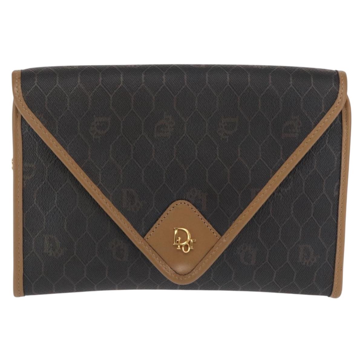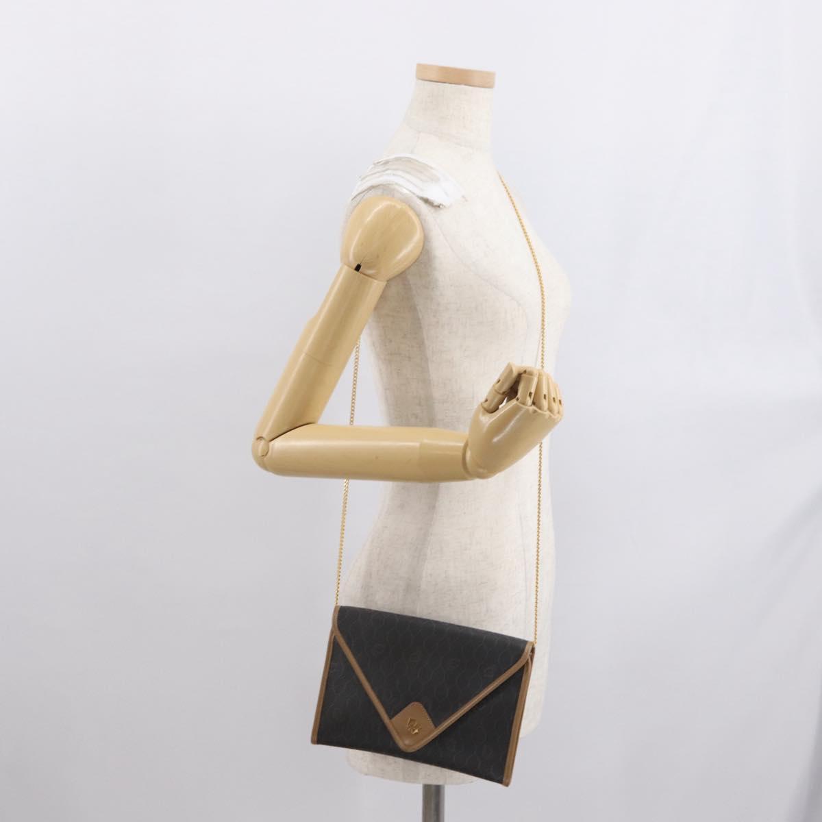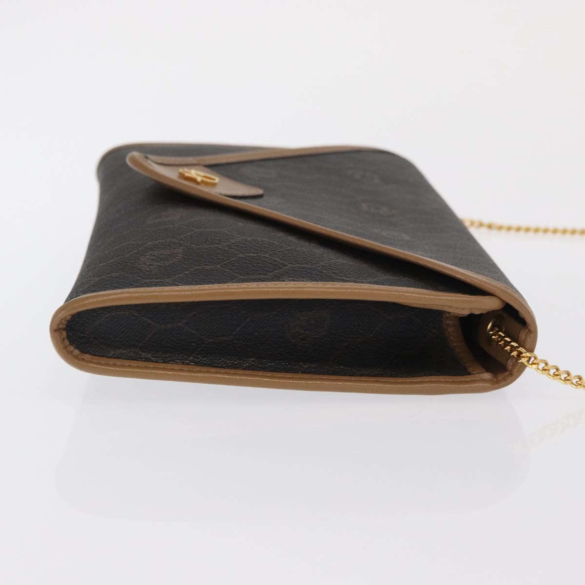 Christian Dior Honeycomb Canvas Chain Shoulder Bag PVC Black Gold Auth BA10086