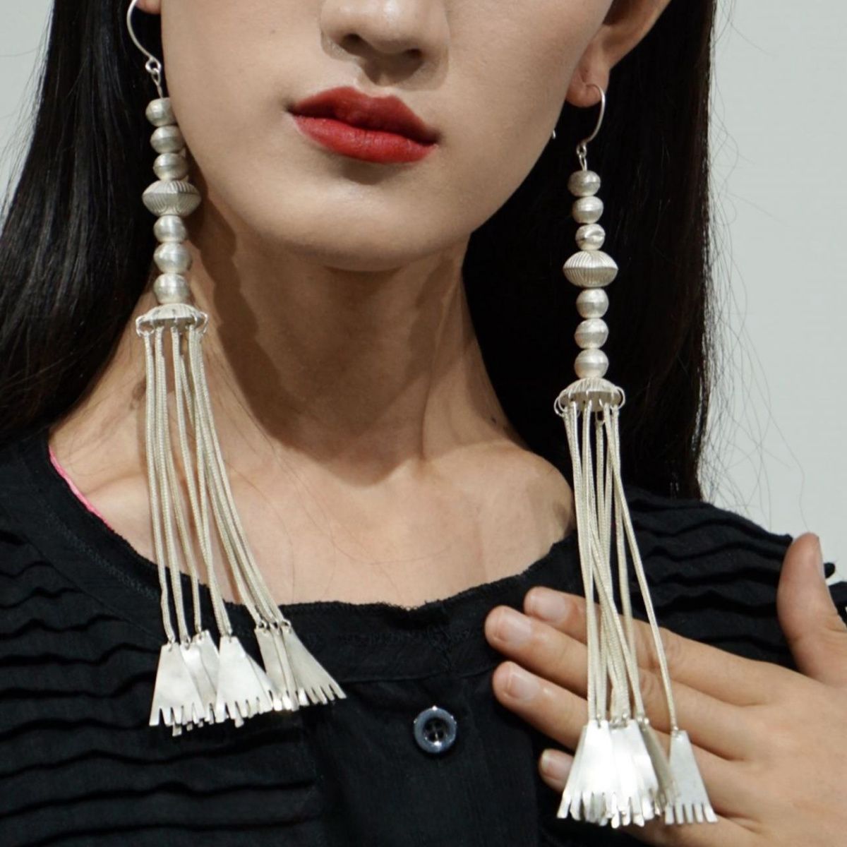 Ethnic Silver Plated Earrings Yi Style Handmade Dangle Jewelry Minimalist Gift