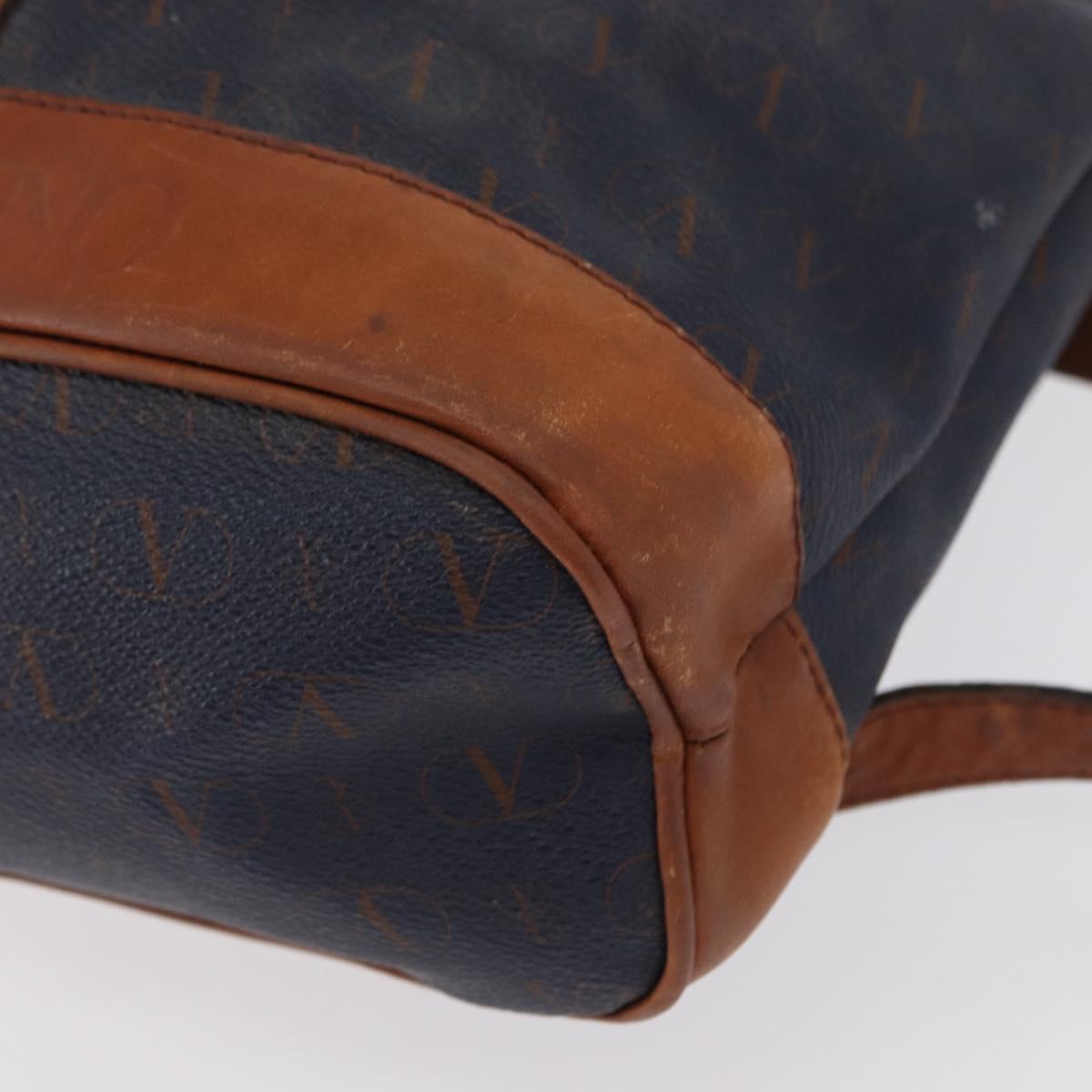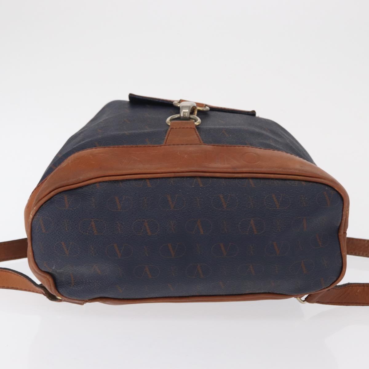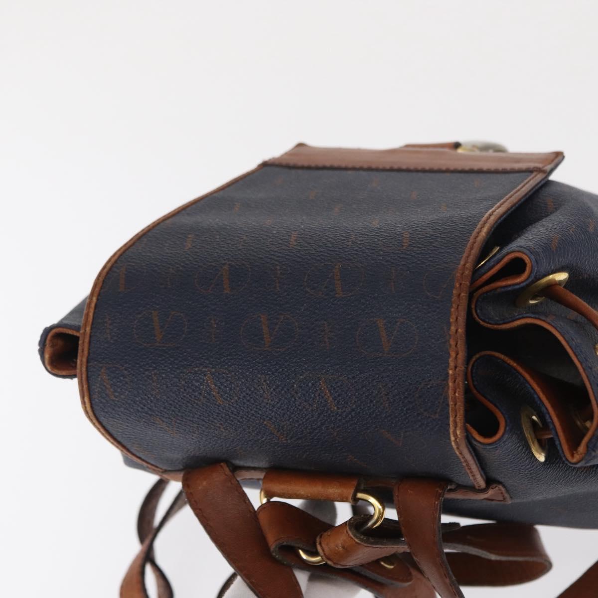 VALENTINO Backpack Leather Navy Gold Auth bs32249