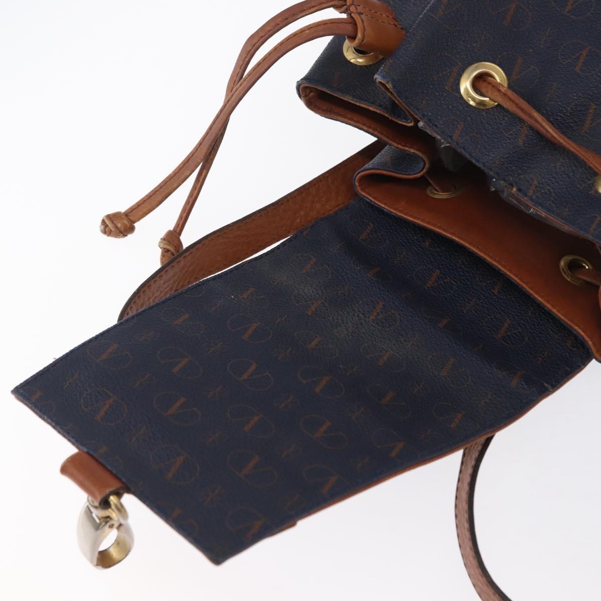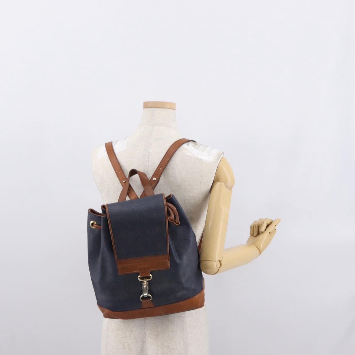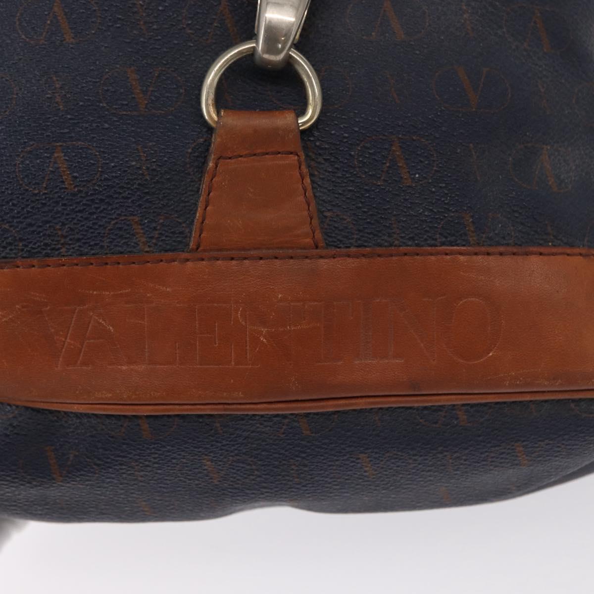 VALENTINO Backpack Leather Navy Gold Auth bs32249