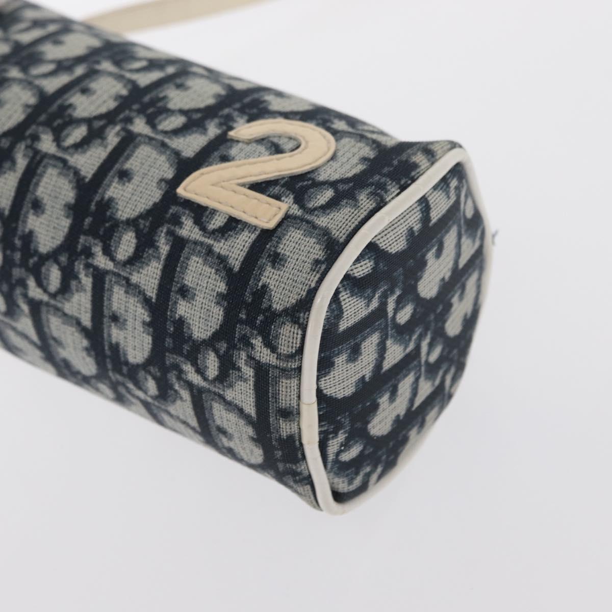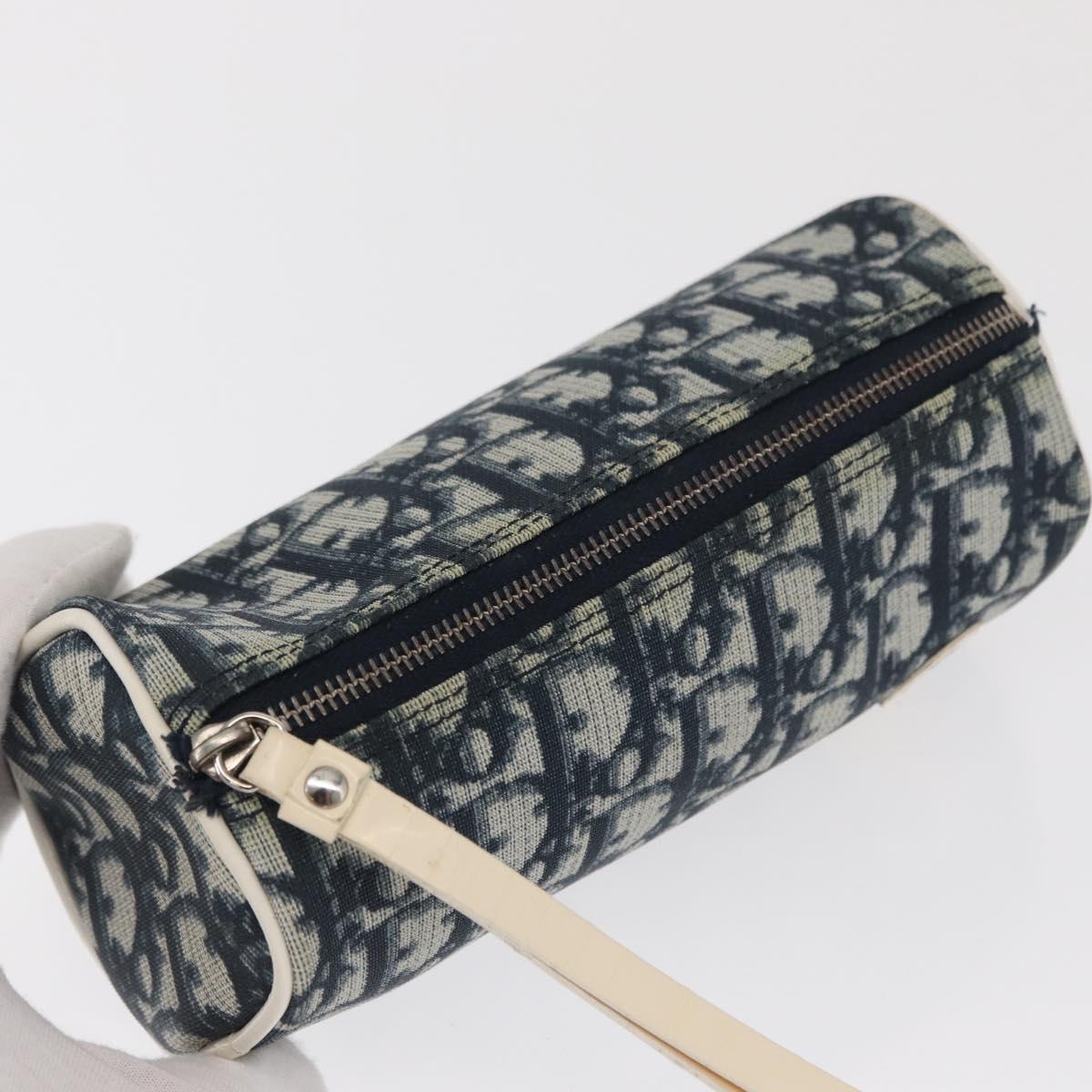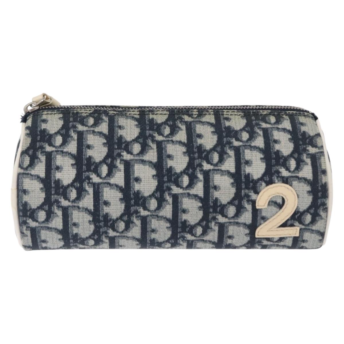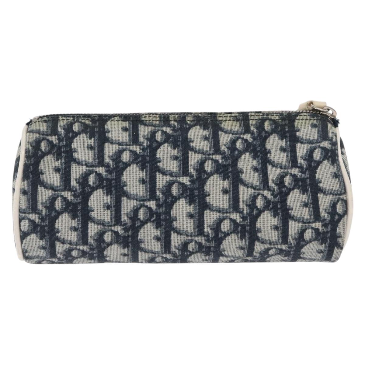 Christian Dior Trotter Canvas Pouch Navy Silver Auth ka1927