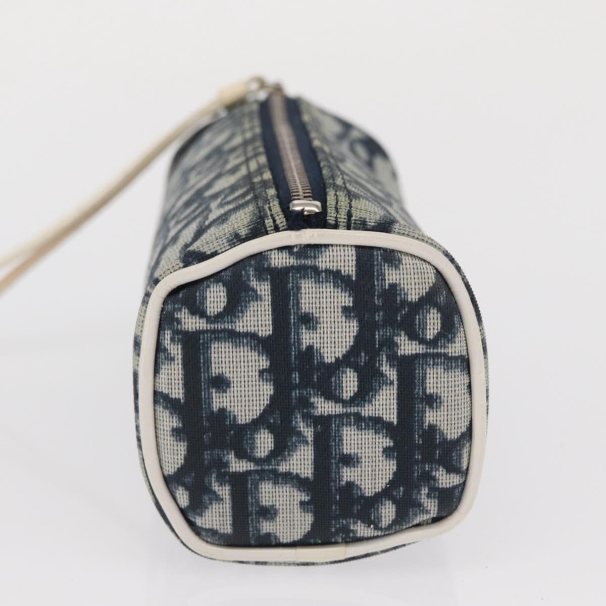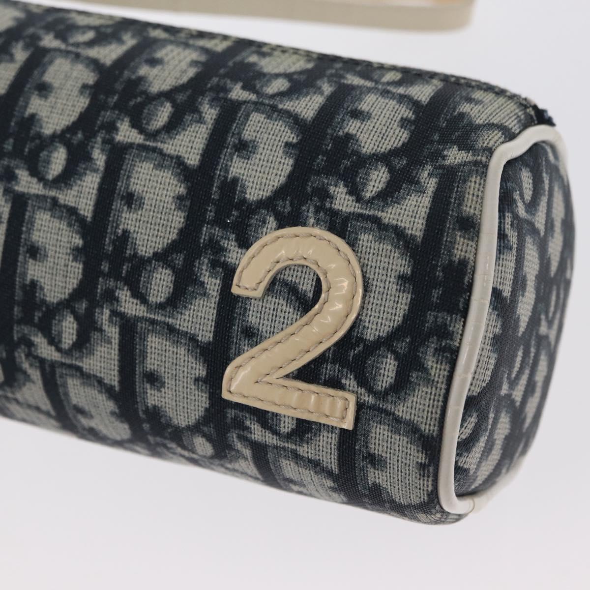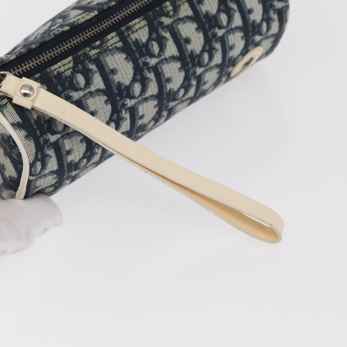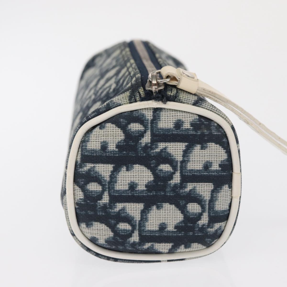Christian Dior Trotter Canvas Pouch Navy Silver Auth ka1927