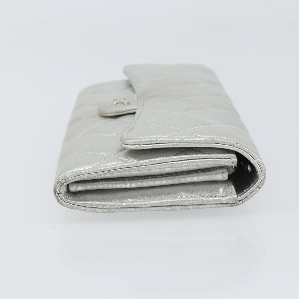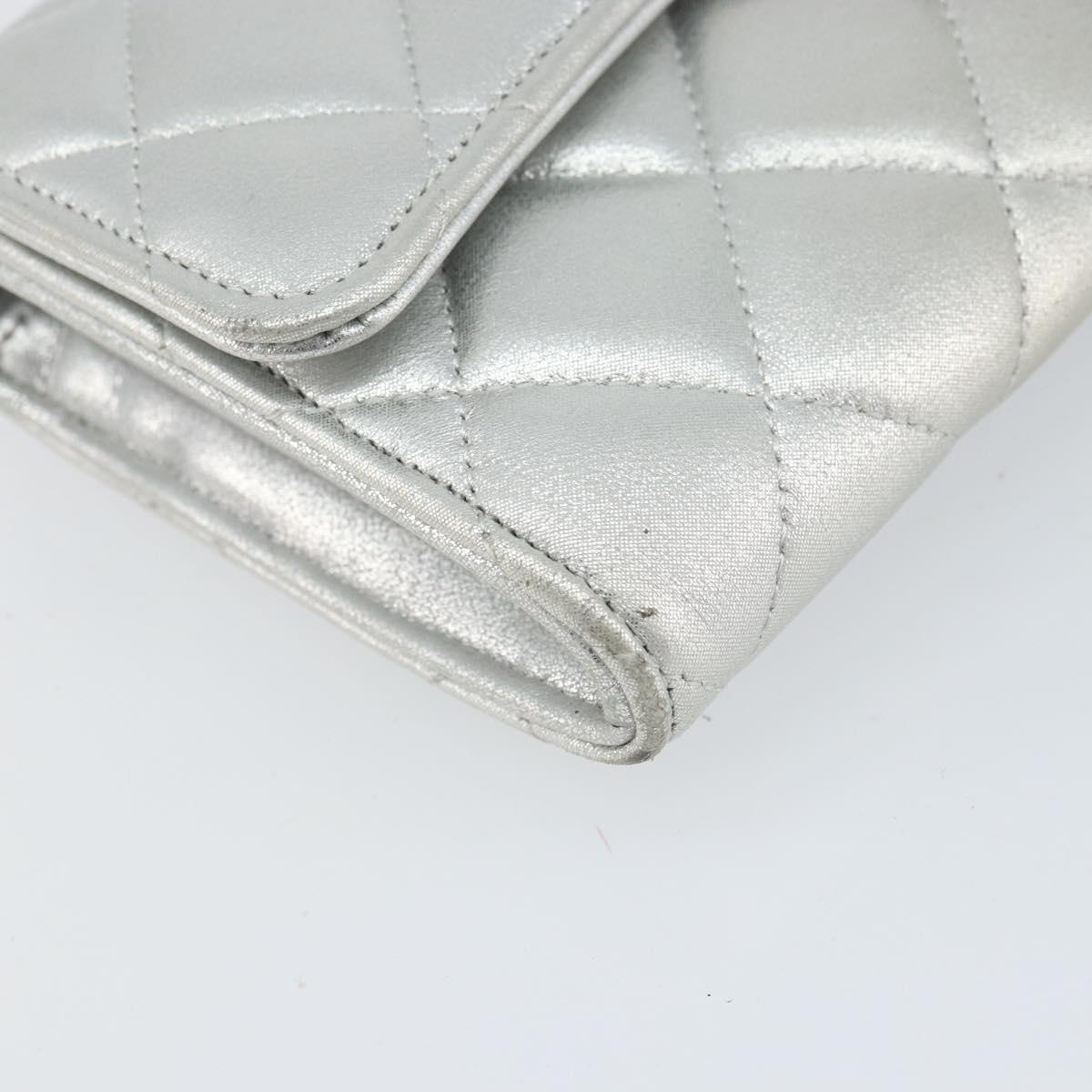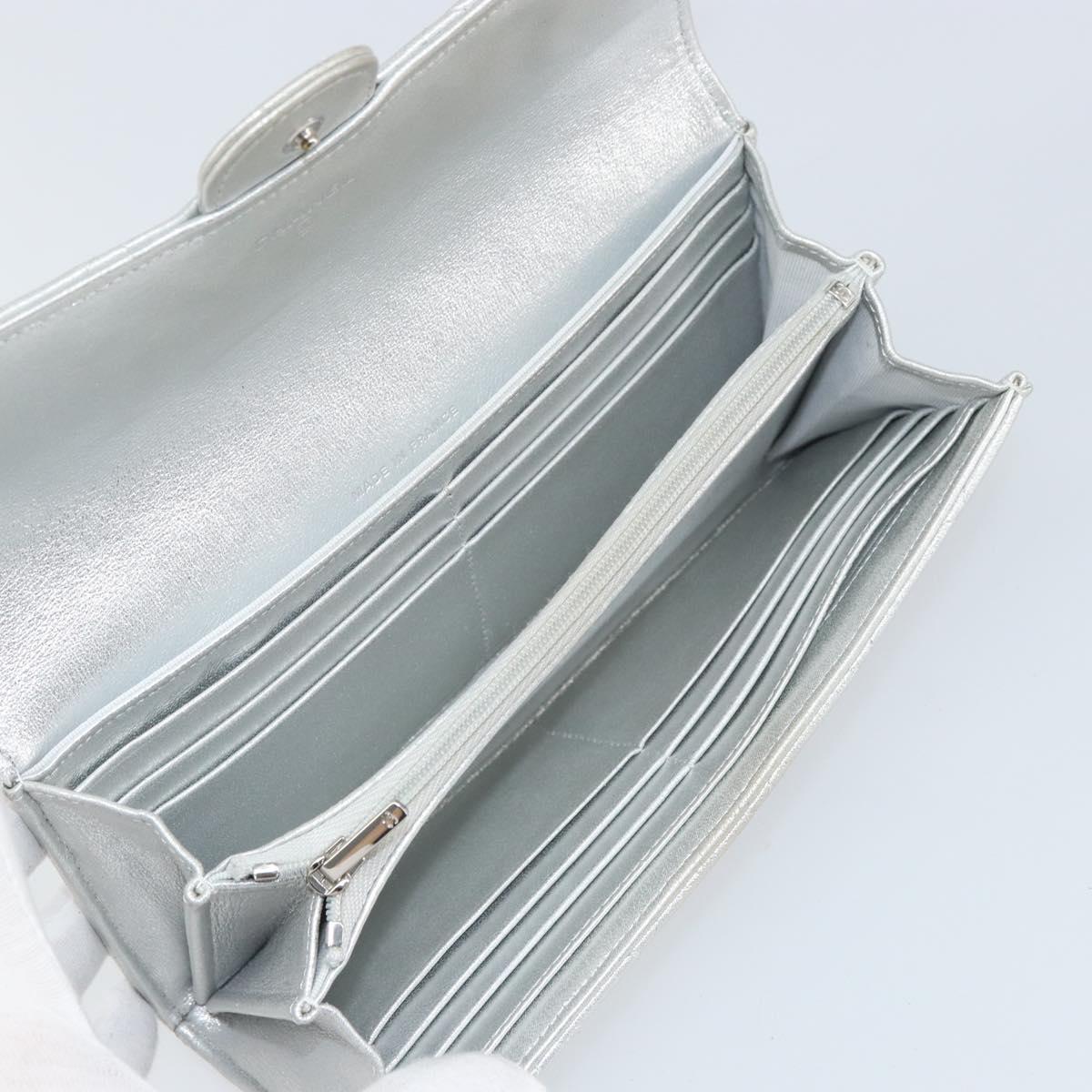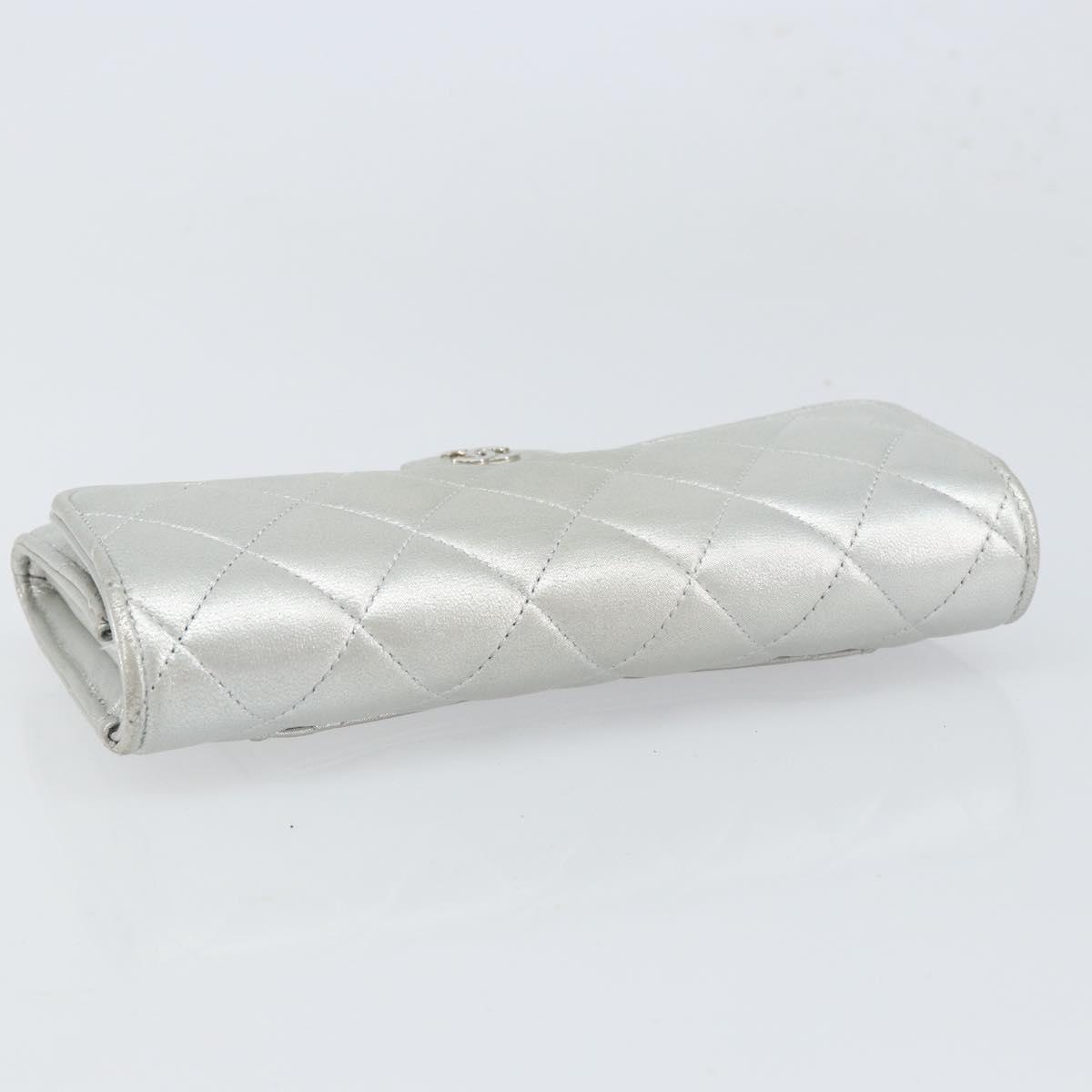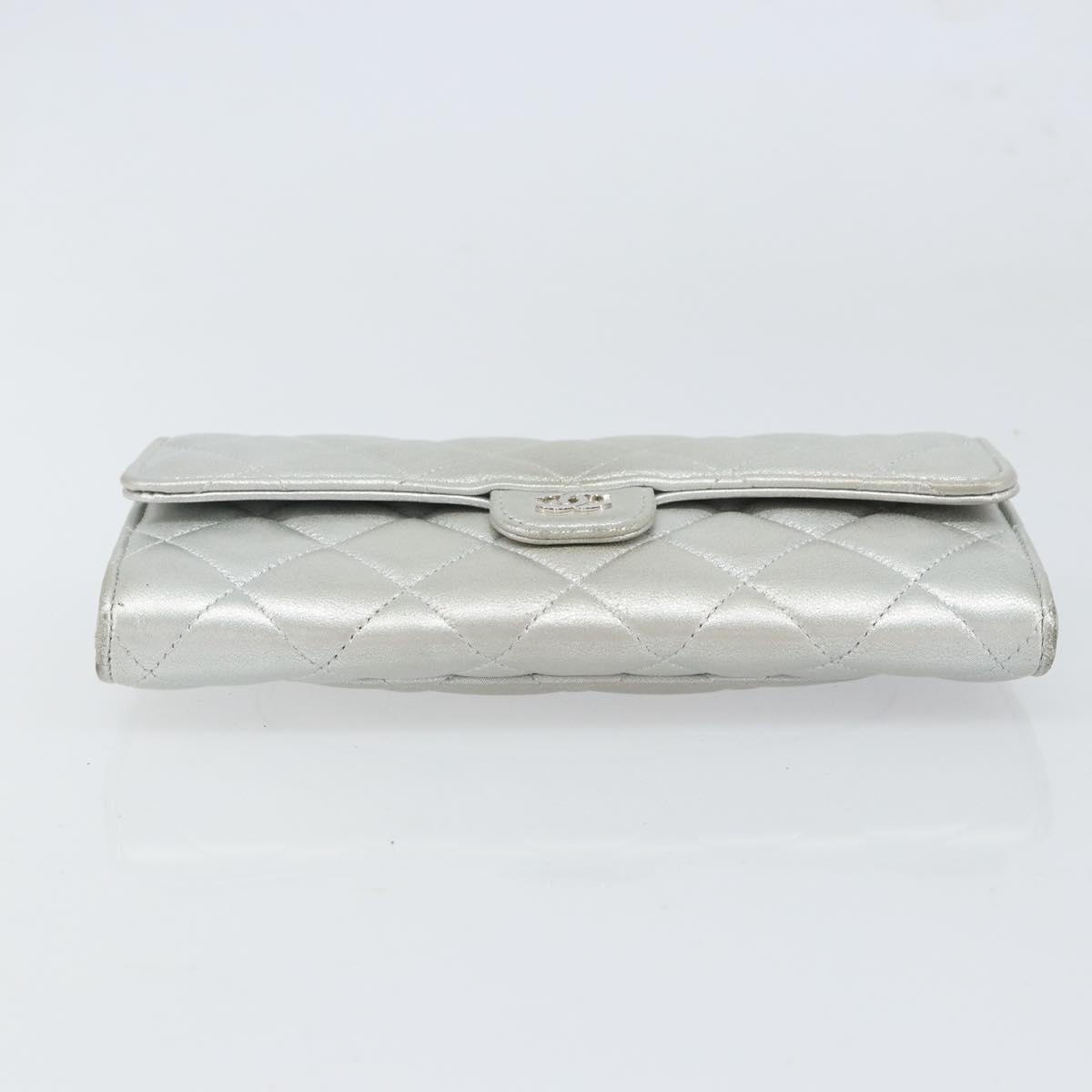 CHANEL Matelasse Long Wallet Lamb Skin Silver CC Auth 168754