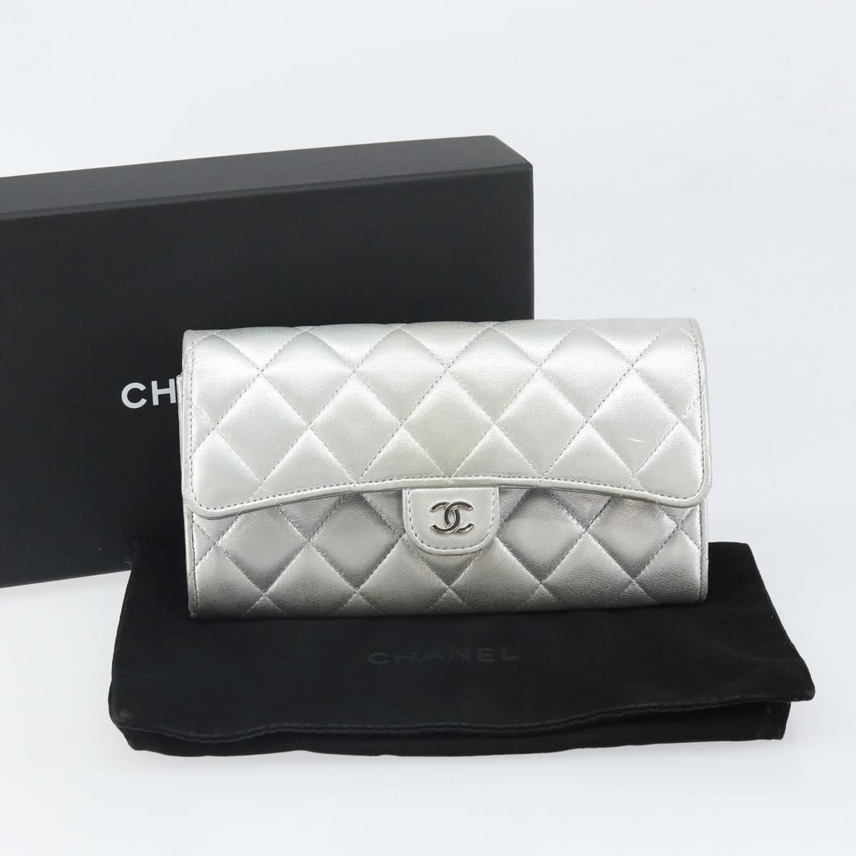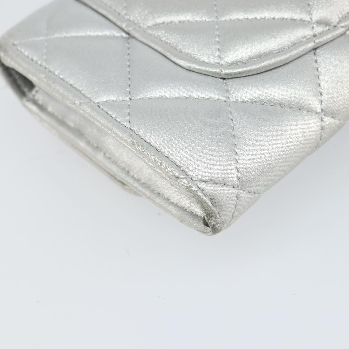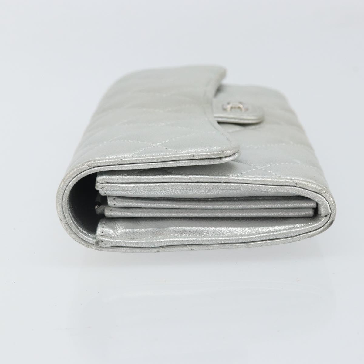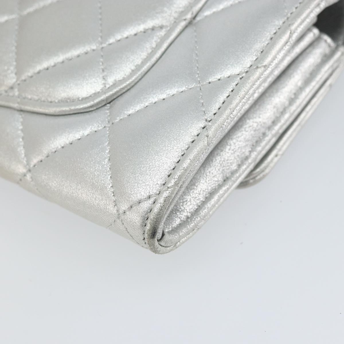 CHANEL Matelasse Long Wallet Lamb Skin Silver CC Auth 168754
