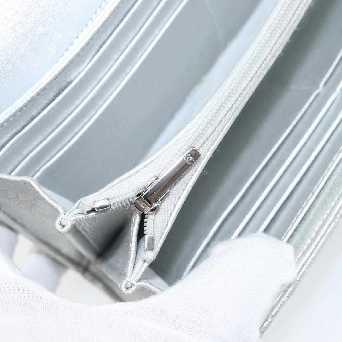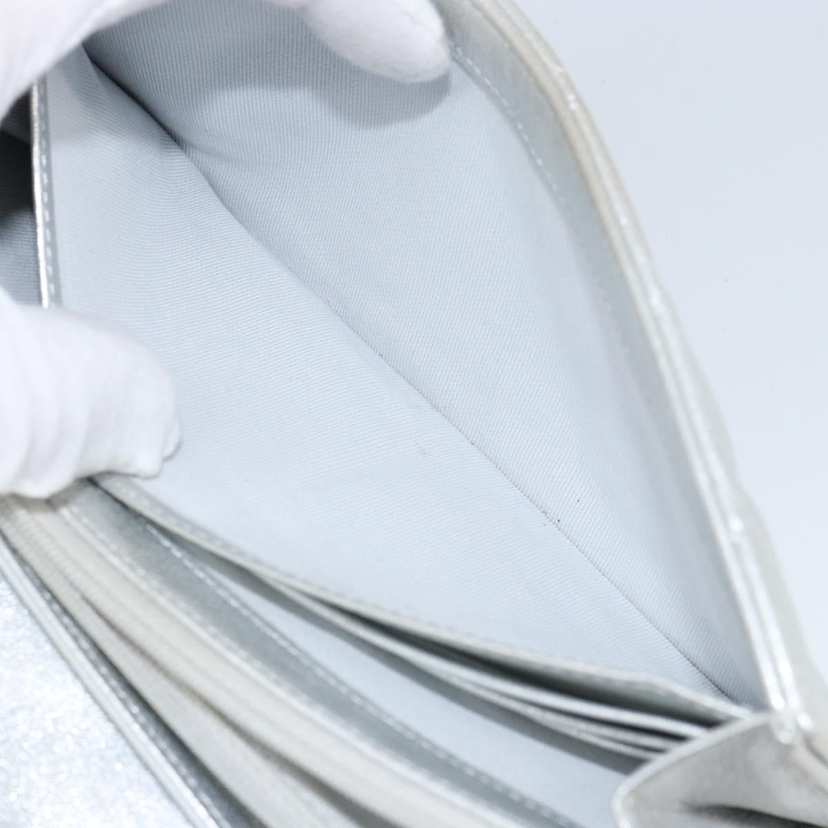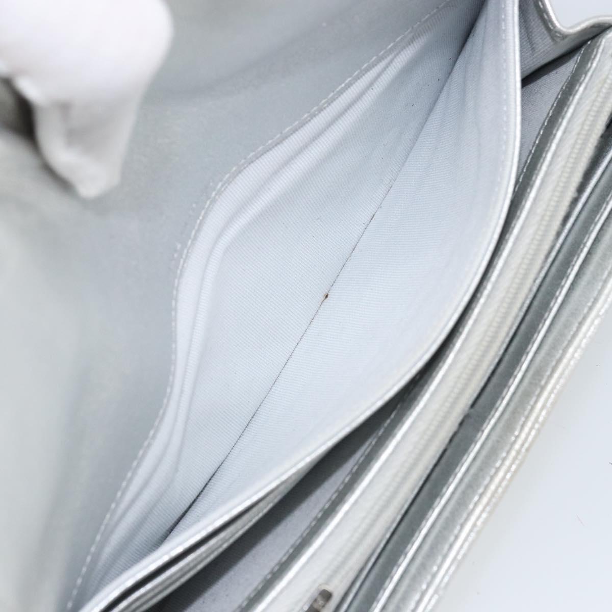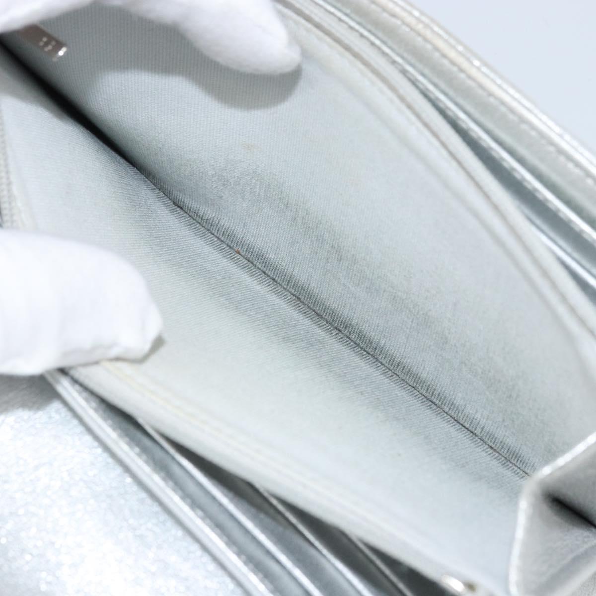 CHANEL Matelasse Long Wallet Lamb Skin Silver CC Auth 168754