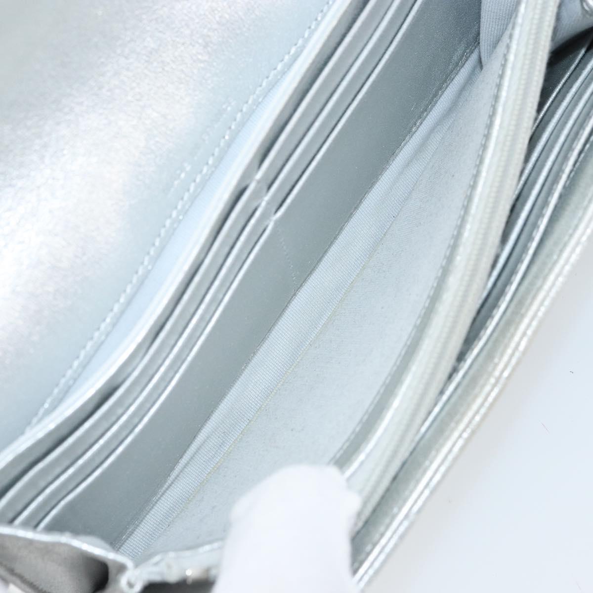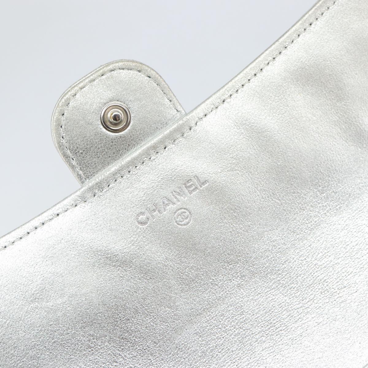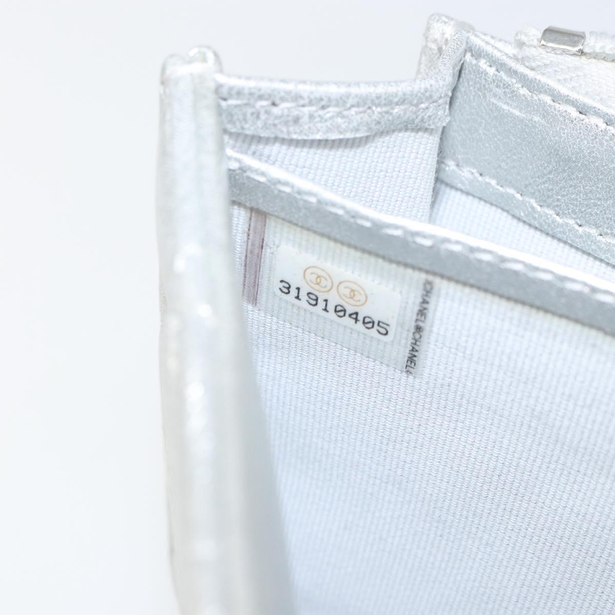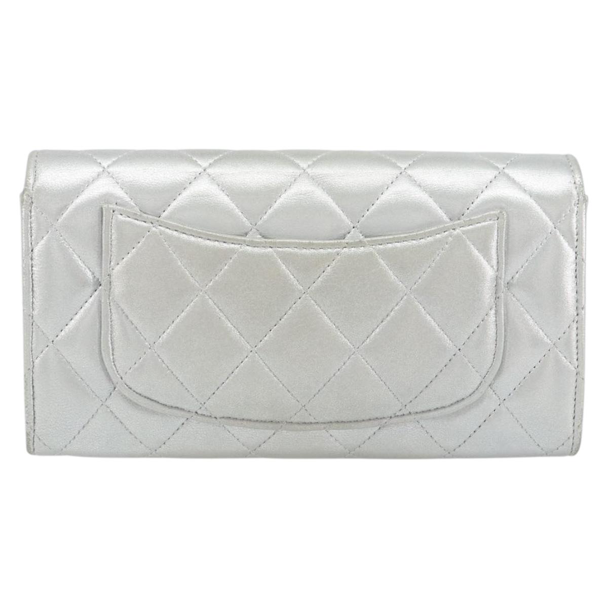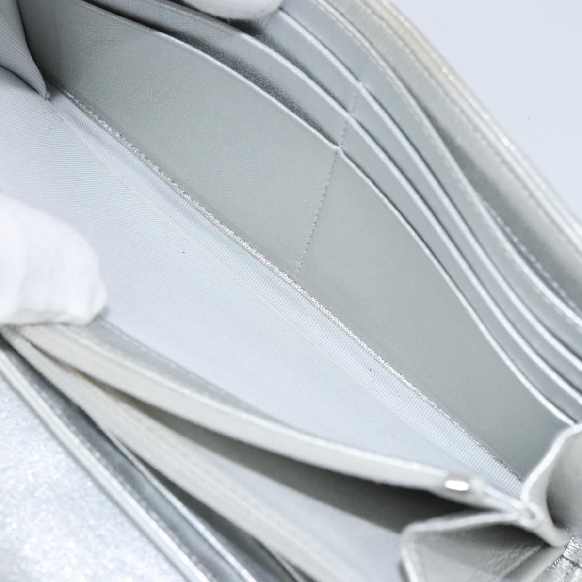 CHANEL Matelasse Long Wallet Lamb Skin Silver CC Auth 168754