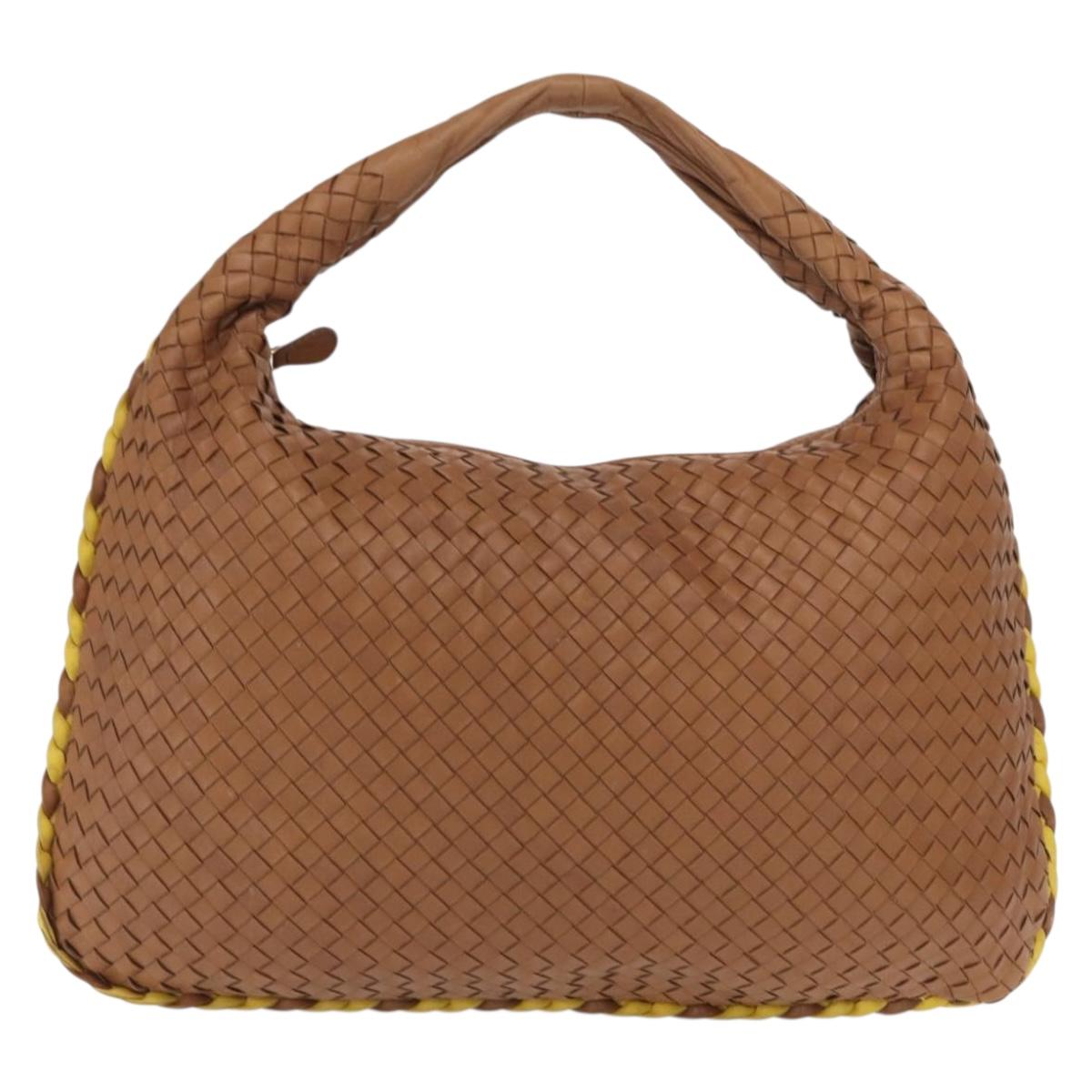 BOTTEGAVENETA INTRECCIATO Shoulder Bag Leather Beige Gold 115654 Auth ka1891SAV
