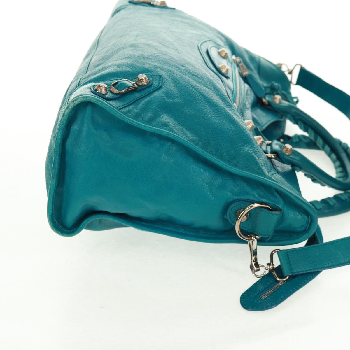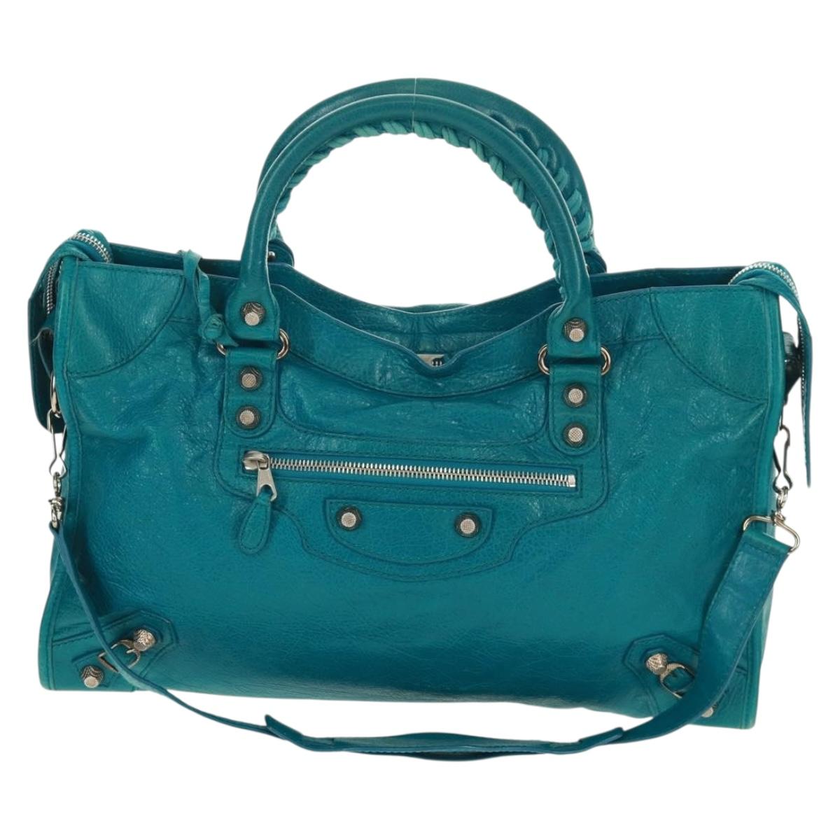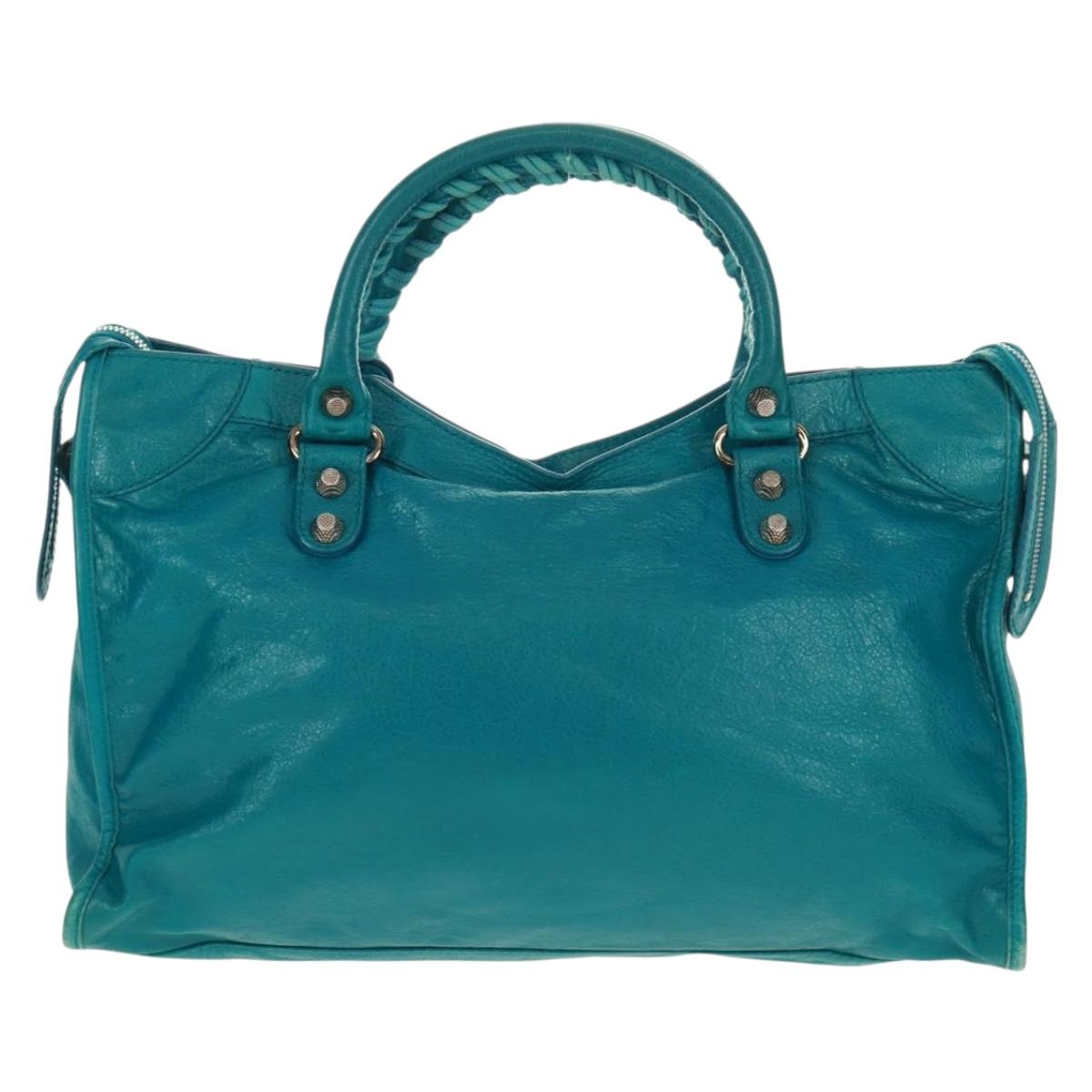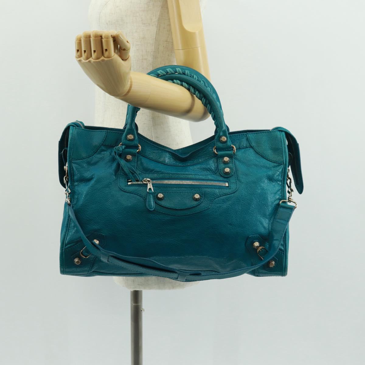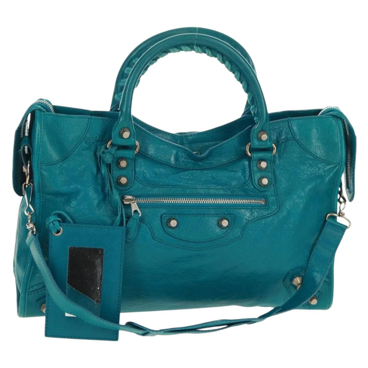 BALENCIAGA The City Hand Bag Leather 2way Blue Silver 281770 Auth 165213SAV