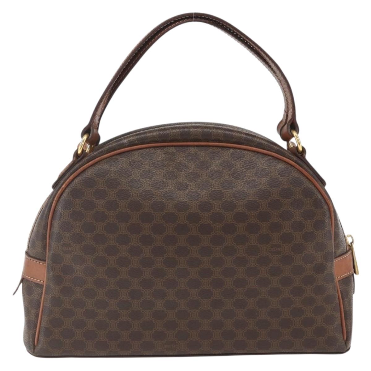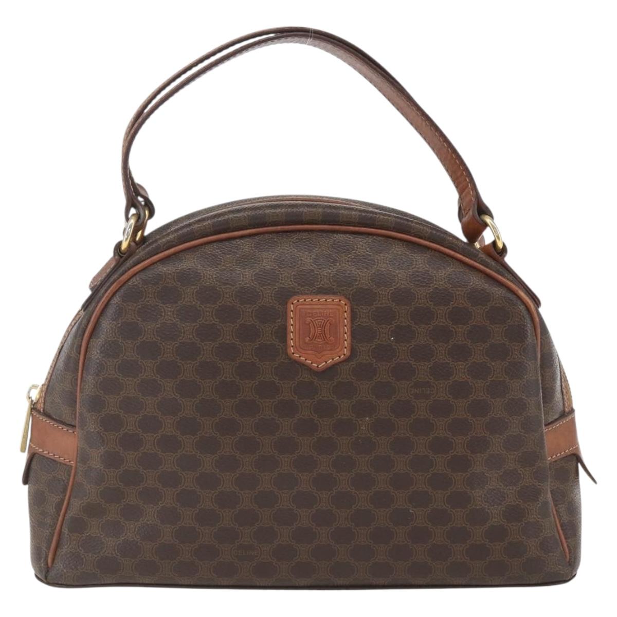 CELINE Macadam Canvas Hand Bag PVC Leather Brown Gold Auth ki6413