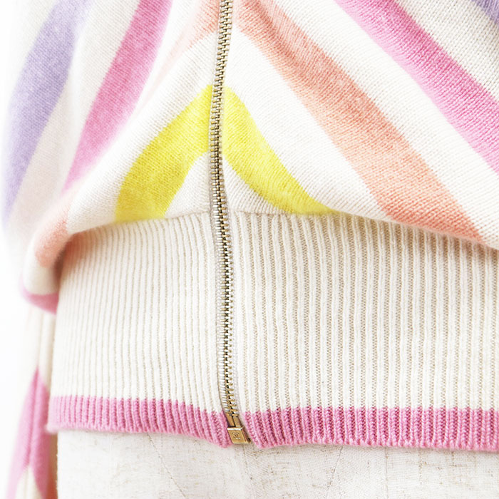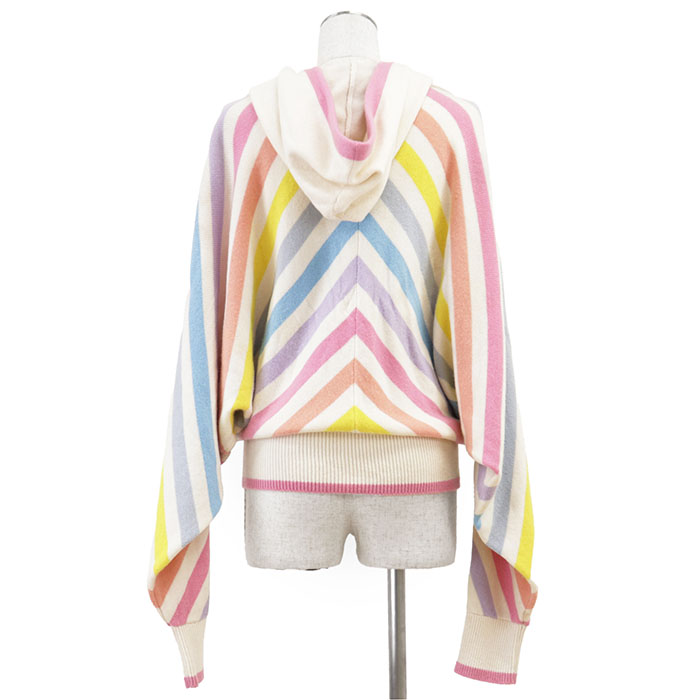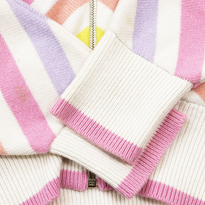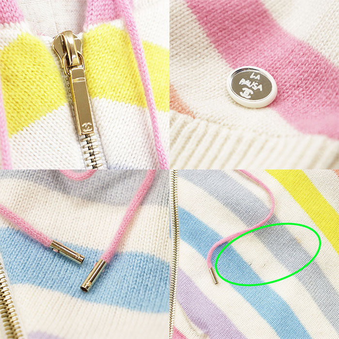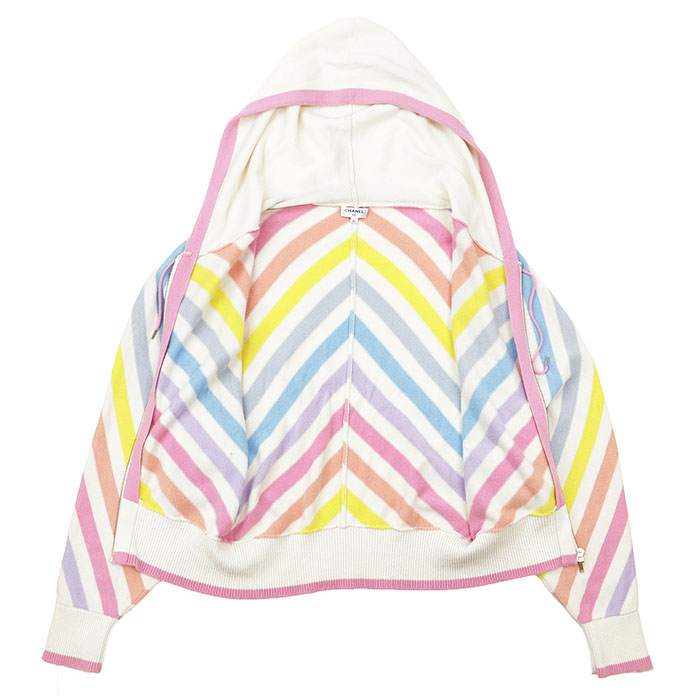 | Item | Chanel Homme Multicolor Border Stripe Zip-Up Hoodie, 100% Cashmere, Dolman Sleeve, Unisex, Men's Knit |