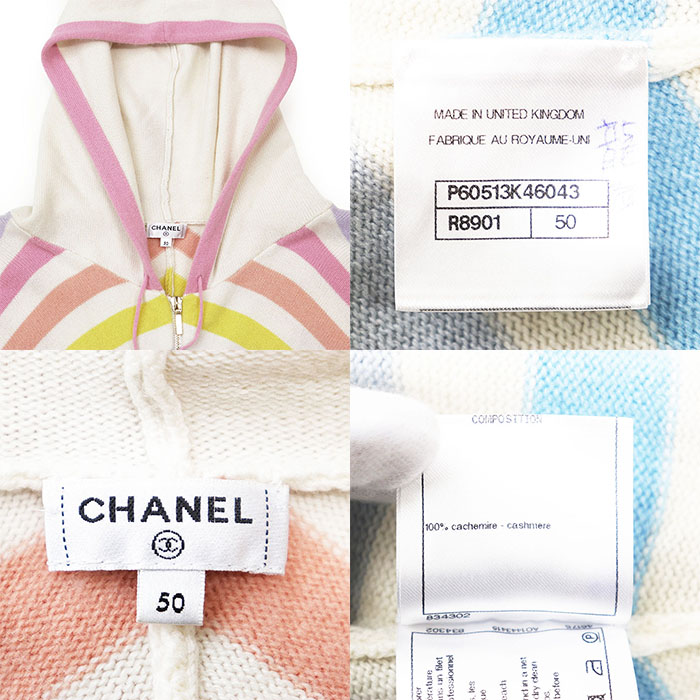 | Series | CHANEL Homme Zip-Up Hoodie, Knit, 100% Cashmere, P60513 50 CC LA PAUSA Logo, Multicolor, Dolman Sleeves, Made in England |