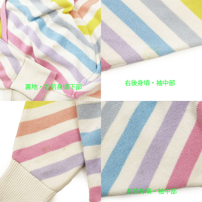 | Condition Details | Although there are signs of heavy wear throughout, it is still wearable. There is fluffing and slight pilling throughout, multiple stains mainly on the upper front, both sleeves, and the lower inside of the right front, and multiple frayed repair marks at the base of the hood. We recommend this item to those who understand and accept the condition of a used item. |