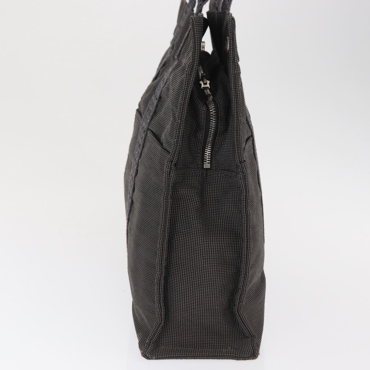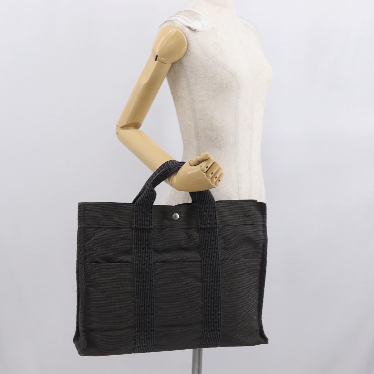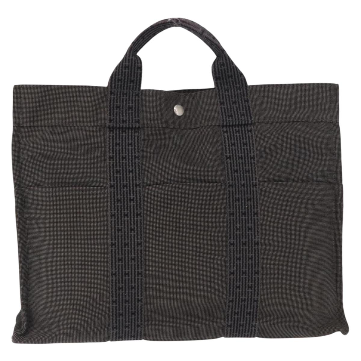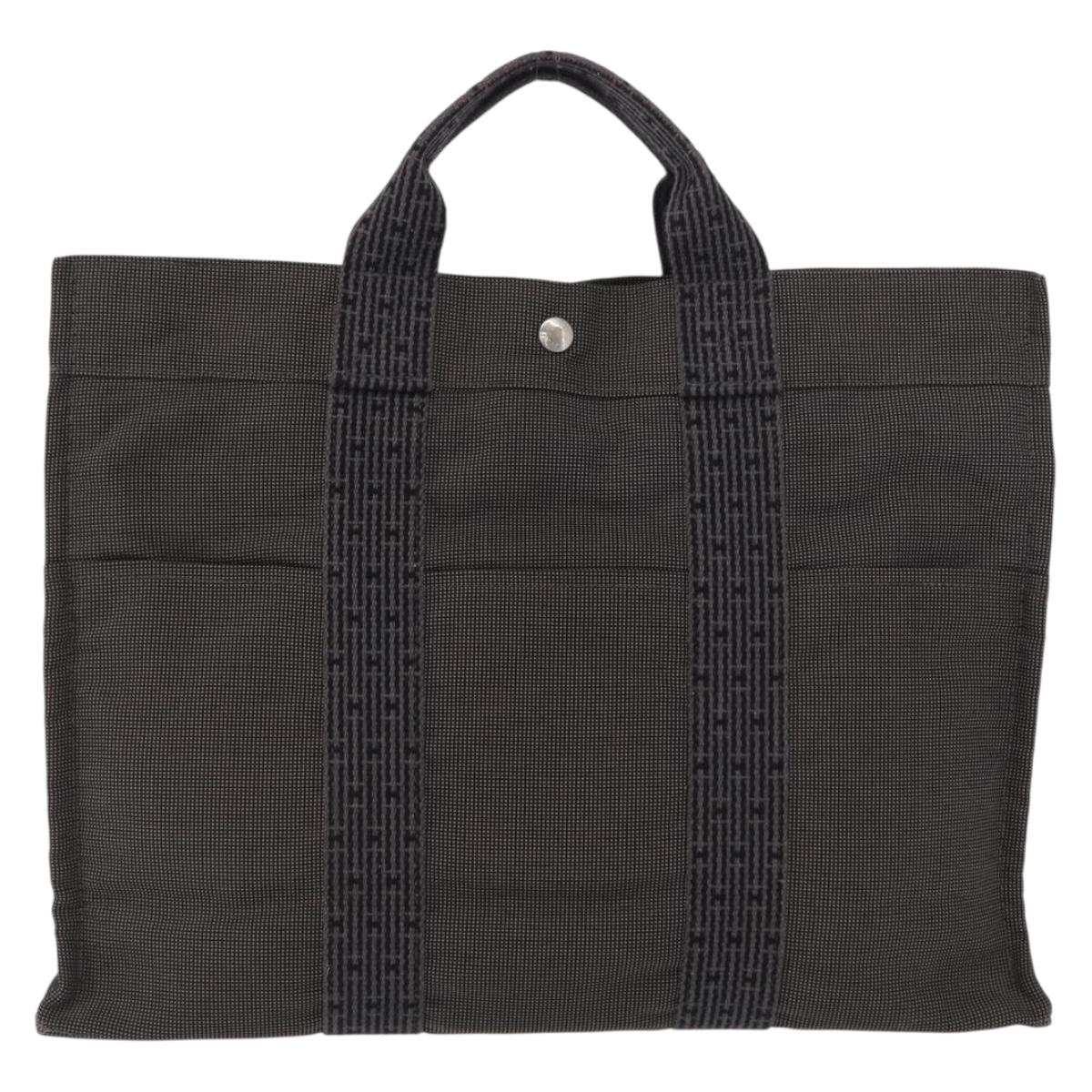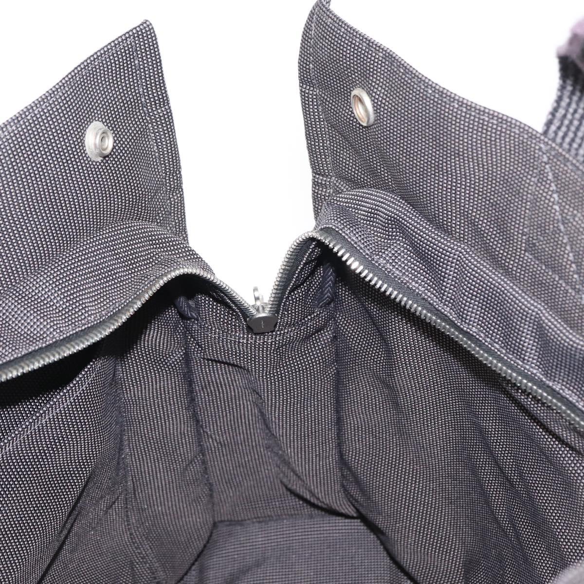 HERMES Her Line MM Hand Bag Canvas Gray Silver Auth 168679