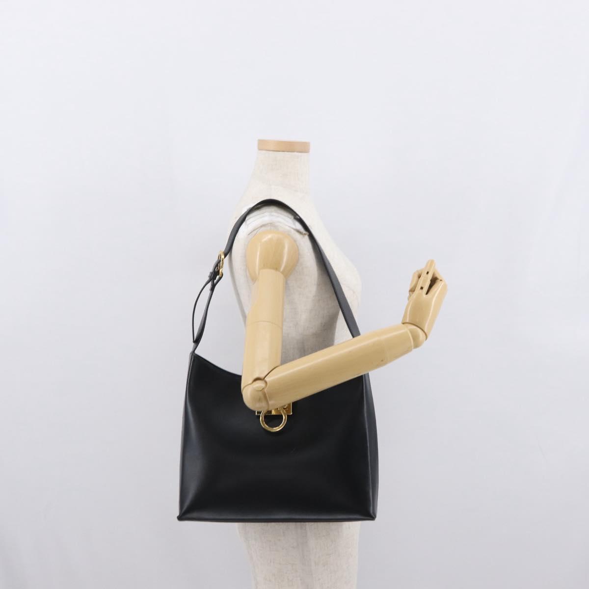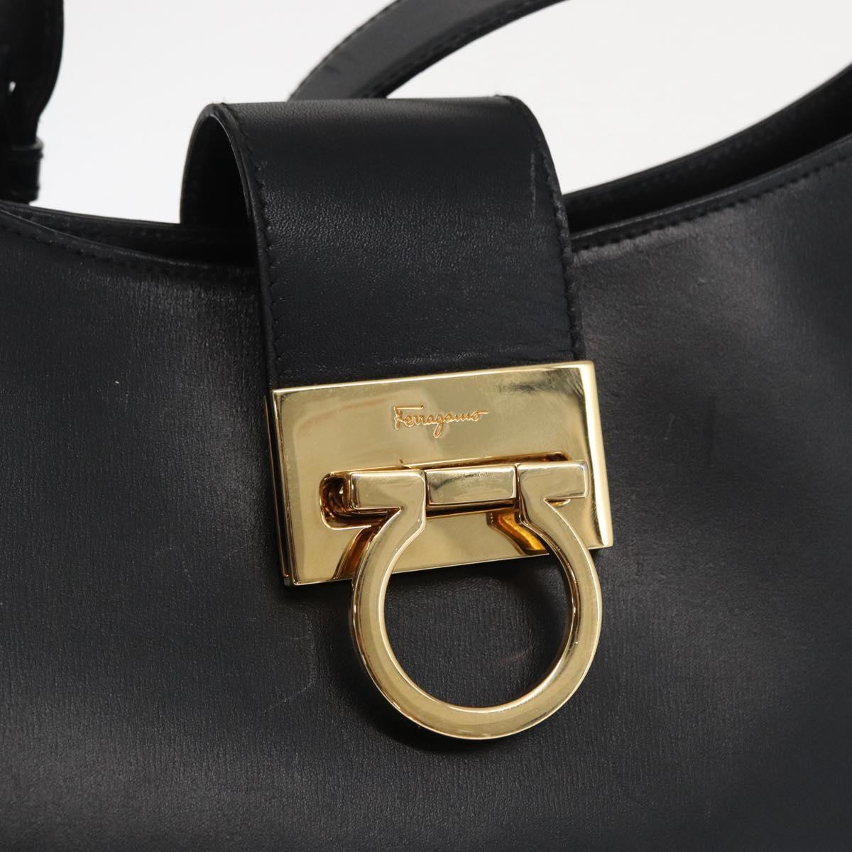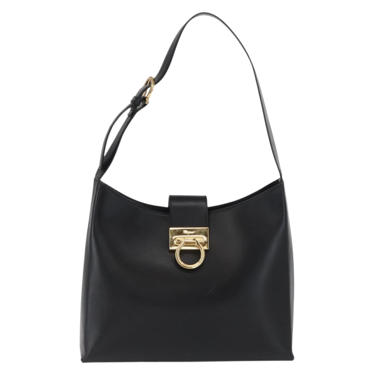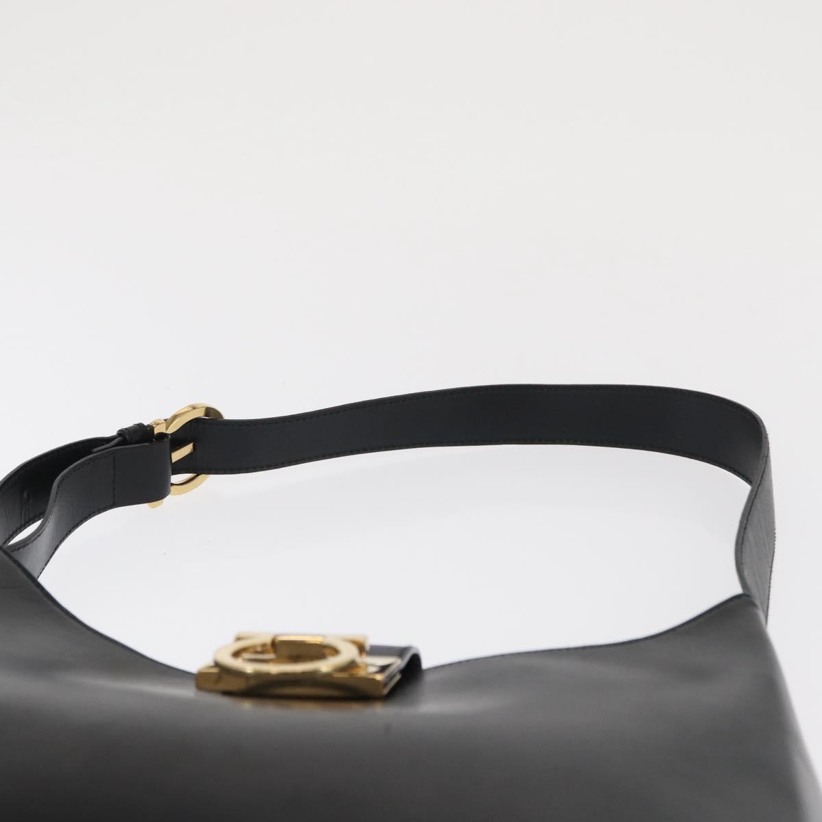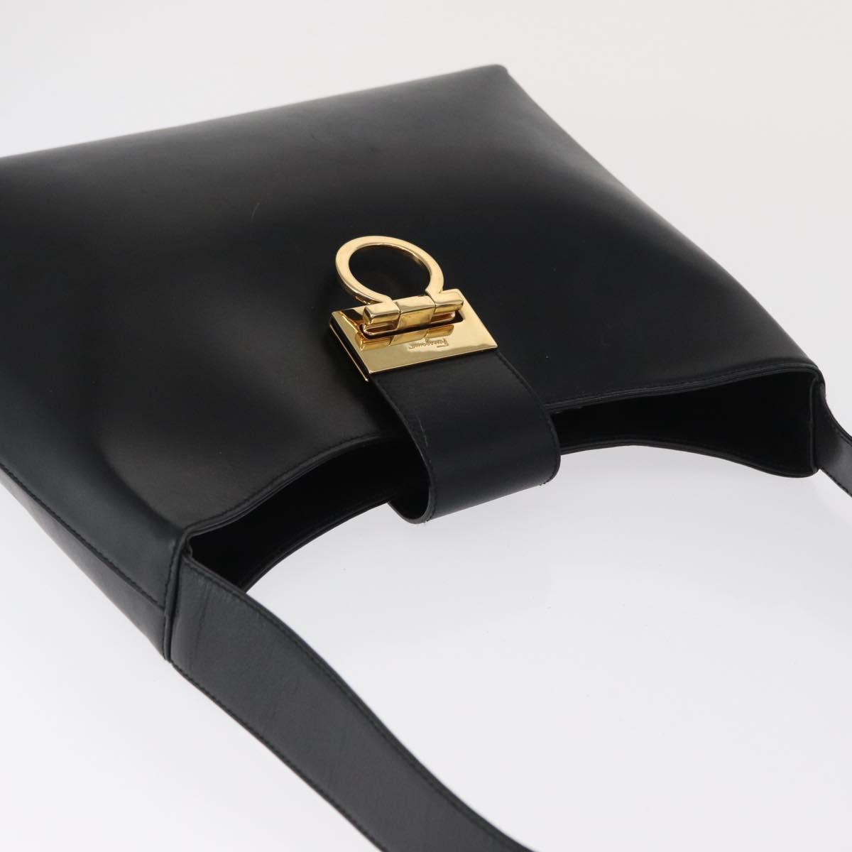 Salvatore Ferragamo Gancini Shoulder Bag Leather Black Gold Auth 169413