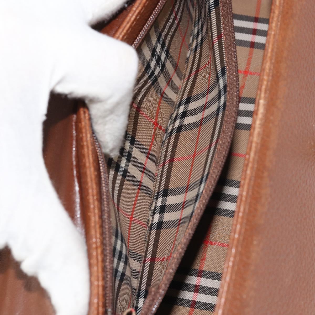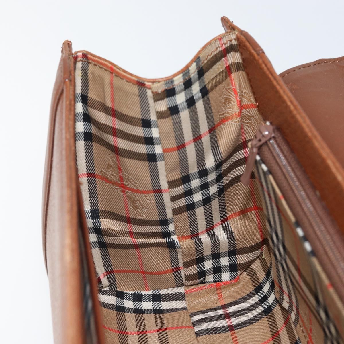 Burberrys Hand Bag Leather Brown Silver Auth 170335