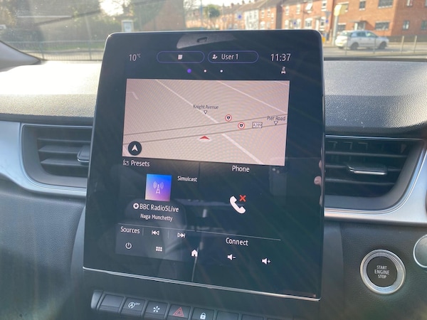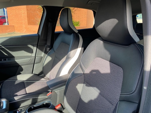 ..Blind spot warning, Cruise control + speed limiter, eCall emergency call system, Eco mode, Front and rear parking sensors with rear view camera, Gear change indicator, Lane departure warning system, Lane keep assist, Multisense system - Ambient lighting and Driving mode selector, Renault automatic emergency assist, Traffic sign recognition, Trip computer, Variable assistance power steering, Wireless Mobile Phone Charger, EasyLink Nav 9.3'' touchscreen, 4x20W amp, FM DAB, sound auditorium, 2xUSB, 1xJack, Bluetooth, smartphone integration plus, Apple carplay/Android auto, Auto dimming rear view mirror, Automatic front wipers with rain sensors, Automatic headlights, Automatic high beam - AHB, Body colour door handles, Body coloured bumpers, Body coloured door mirrors, Electric adjustable/heated/folding door mirrors, Electric front windows + one touch + anti-pinch, Electric rear windows, Extra tinted glass in rear windows and tailgate, Full C-shape LED front and rear signature lighting with daytime running lights at the front and at the rear, Gloss black side door protection with chrome effect, LED front fog lights, Rear fog lights, Rear wiper, Roof bars, Shark fin antenna, Variable speed on front windscreen wipers, 12V Accessory socket, 3 rear headrests, 5.2L front glovebox, 60/40 split folding rear seat bench, Automatic climate control with one touch demist function, Centre console storage tray, Front head restraints, Heating system with pollen filter, Height adjustable driver's seat, Height/reach adjust steering wheel, ISOFIX child seat fixing points on rear outermost seats, Leather steering wheel, Middle console with armrest and storage, Rear air vents, 3 rear seatbelts, ABS+EBA, AEBS, Distance warning alert, Driver and front passenger, side, head and curtain airbags, Driver height adjustable seat belt, Electric parking brake with auto hold function, Electronic stability control, Front and rear no seatbelt warning sound, Front dash warning indicator in case of heavy braking, Front driver and passenger side airbag deactivation, Hill start assist, Rear door and window child locking function for rear door, Tyre pressure warning light, Anti drill door locks and locking fuel cap, Deadlocking system, Hands free keycard with push button and start/stop function, RAID (Renault Anti-Intruder Device) automatic door locking, Remote central locking with thatcham approved immobiliser, Black soft touch dashboard with black gloss air vent surrounds