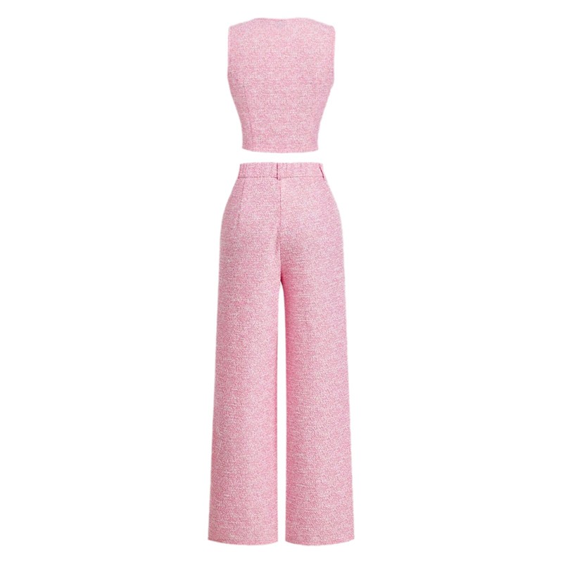The wide-leg pants provide a trendy and comfortable look, offering a modern take on traditional office wear and are suitable for various body types.