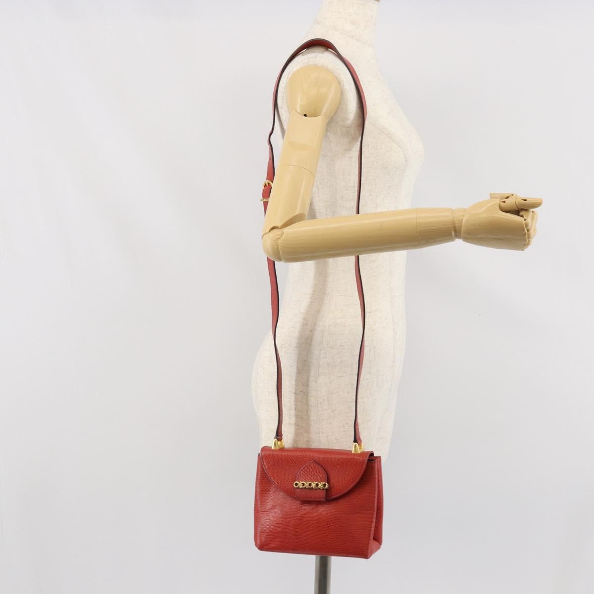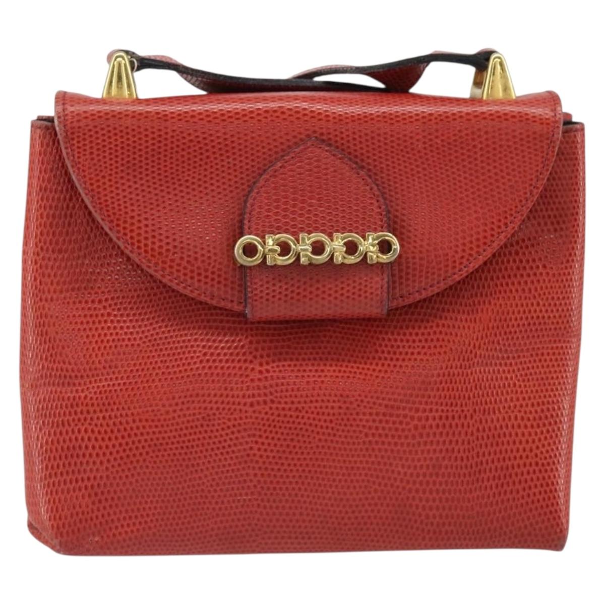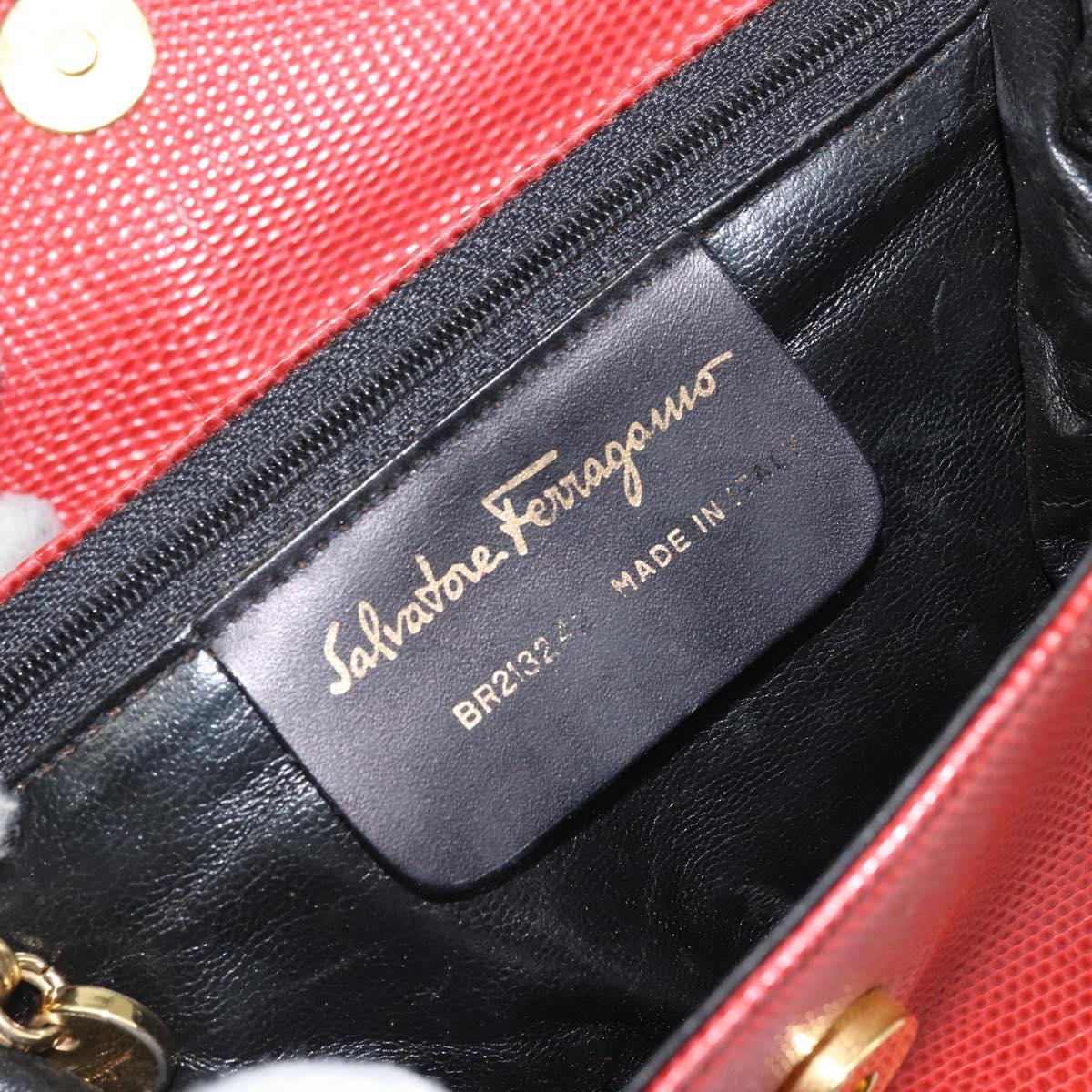 Salvatore Ferragamo Gancini Shoulder Bag Leather Red Gold Auth 159844