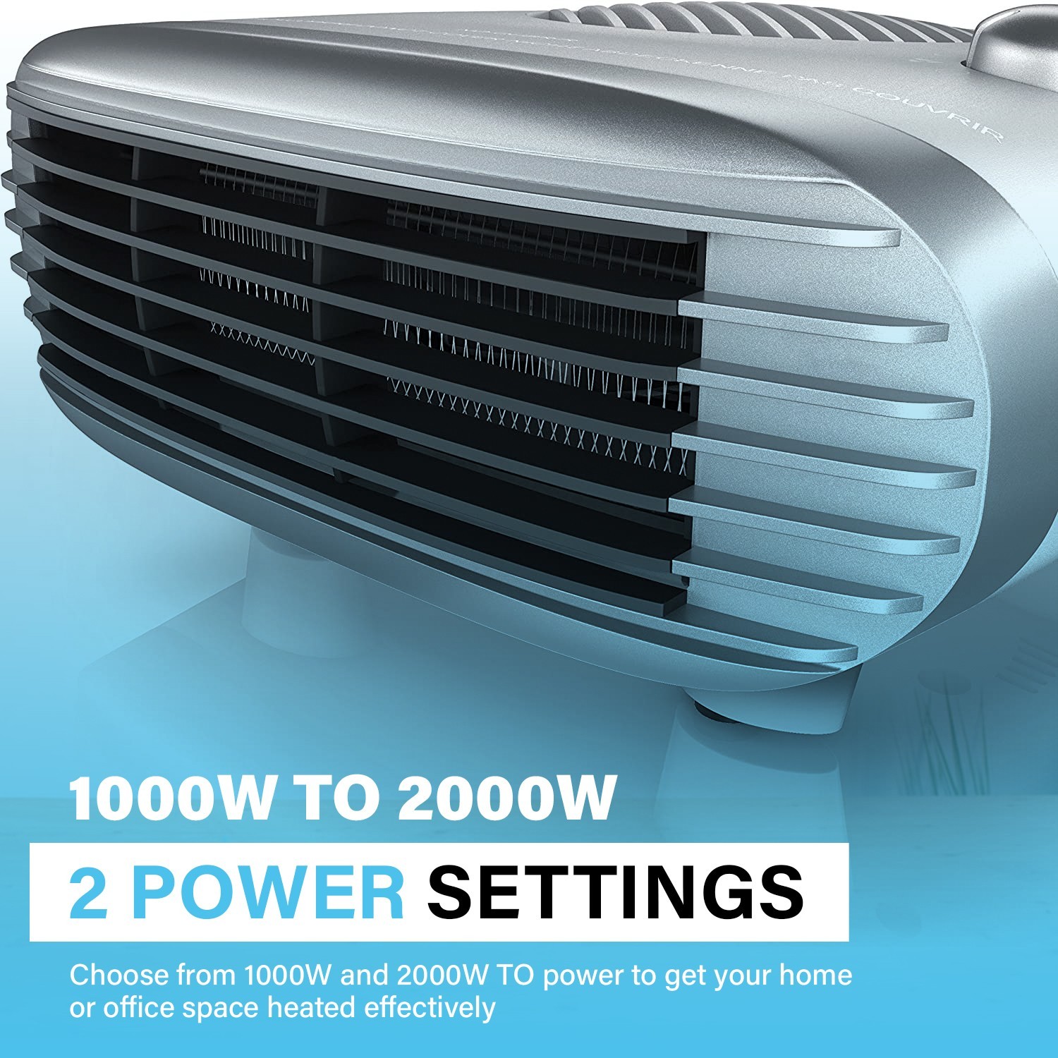 Select between 1000W and 2000W heating levels to suit your comfort needs.