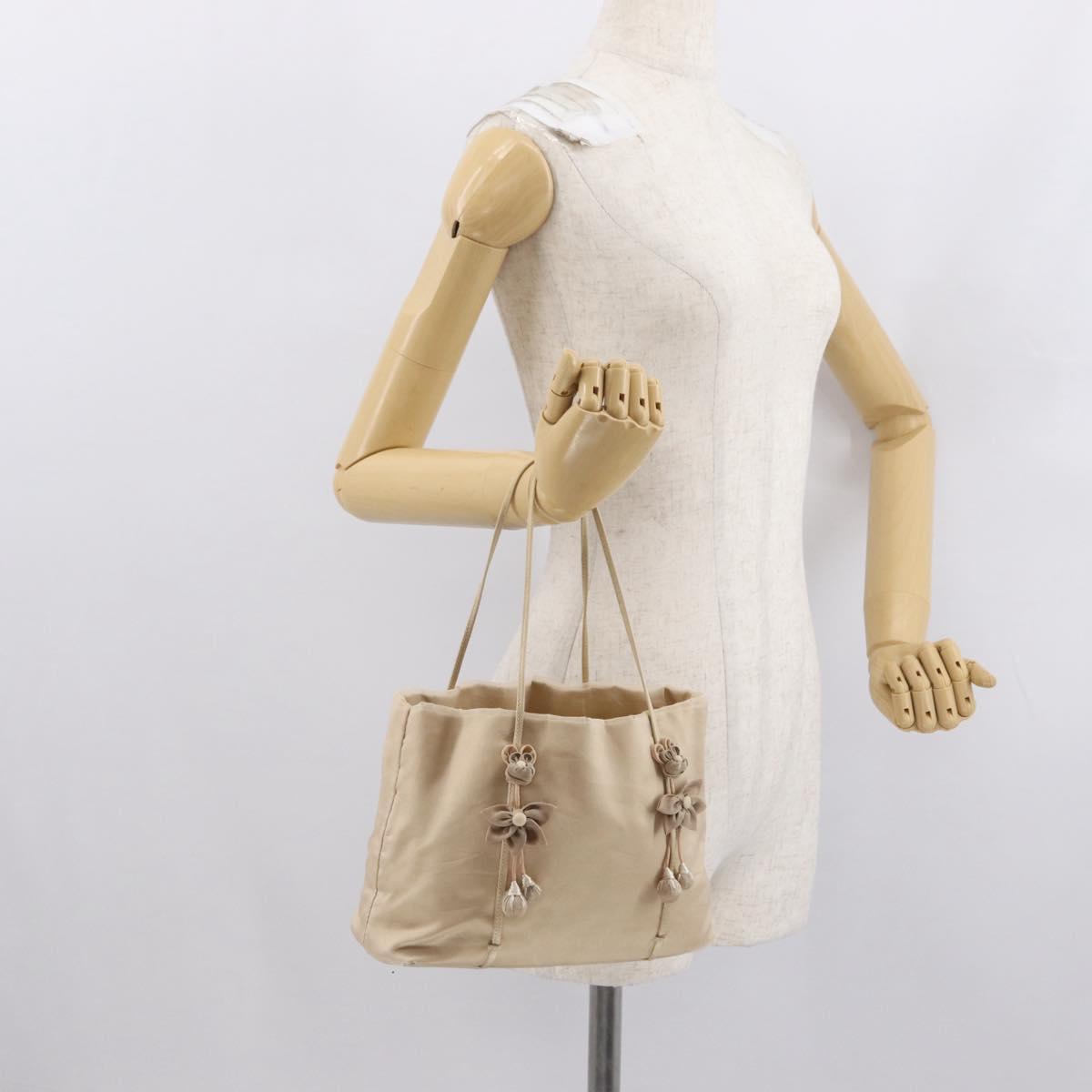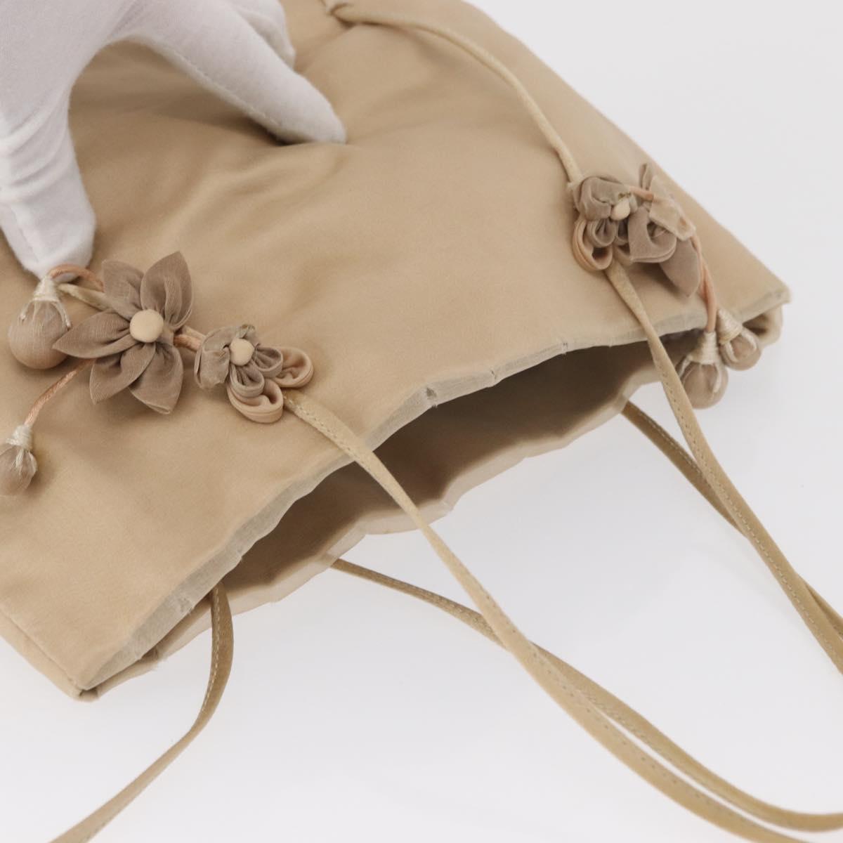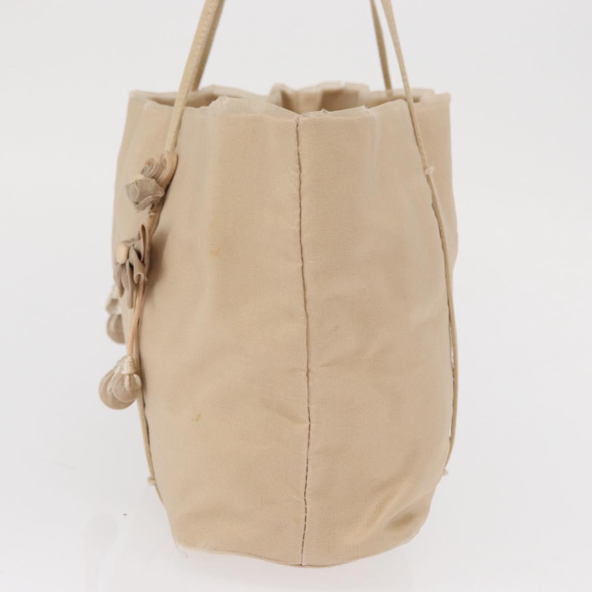 PRADA Hand Bag Satin Beige Auth 166753